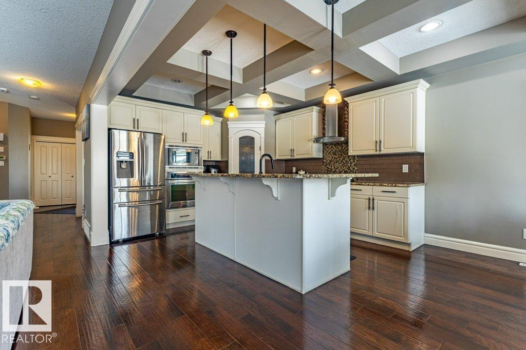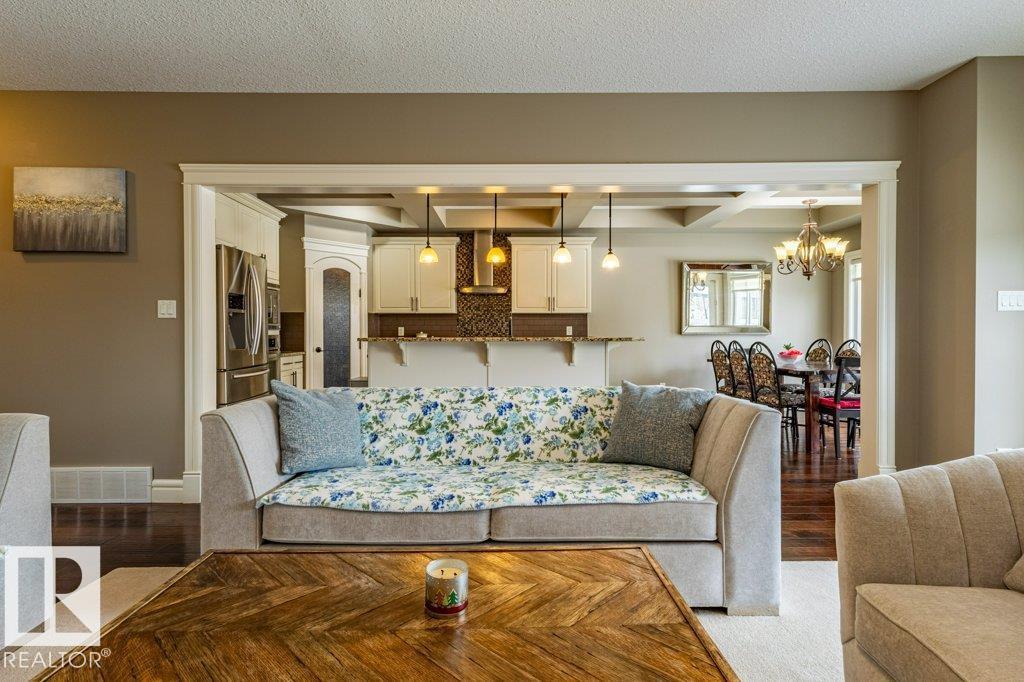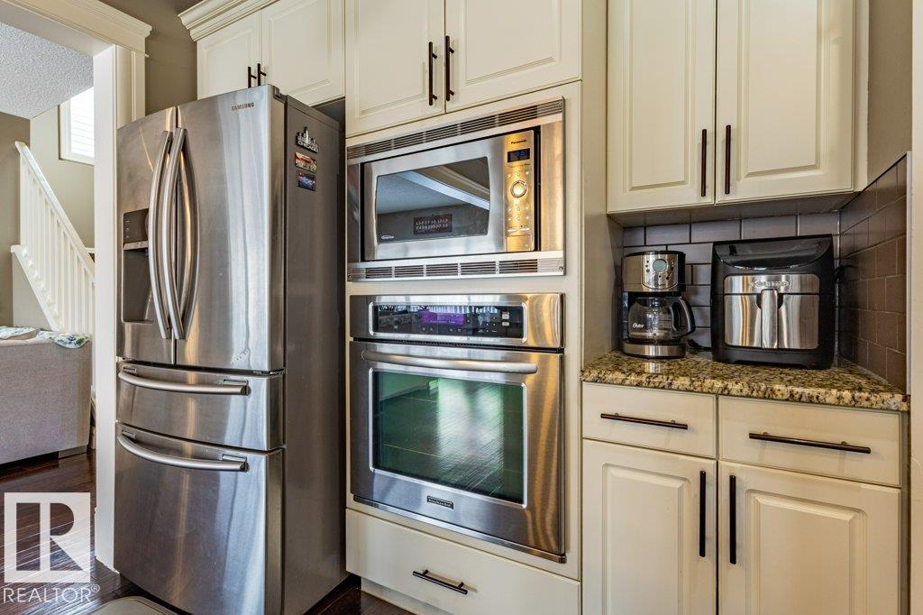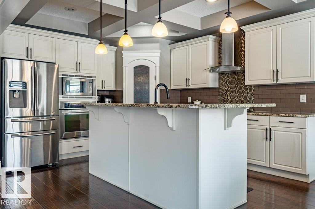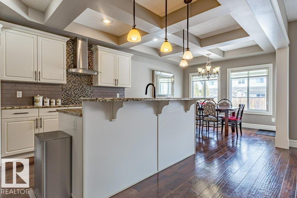 Beautifully located in the desirable community of Rutherford, this 2,363 sqft two-storey home offers a bright, open layout perfect for modern family living. The gourmet kitchen is the centerpiece of the main floor, highlighted by a stunning coffered ceiling, built-in stove and micro-wave, a chimney-style hood fan, and a spacious granite countertop. A formal dining room provides excellent flexibility and can easily serve as a home office, while the cozy breakfast nook offers the ideal spot for casual meals. Upstairs, the expansive primary bedroom is large enough to create a private sitting area, offering a serene retreat. Generous secondary bed-rooms, a versatile bonus room, and a convenient laundry room complete the upper level. Walking distance to Monsignor Fee Otterson School (K–9), minutes to Johnny Bright School and Heritage Shopping Centre, with quick access to Anthony Henday Drive and Calgary Trail. The airport is only 15 minutes away, delivering exceptional convenience and lifestyle. (id:63190)