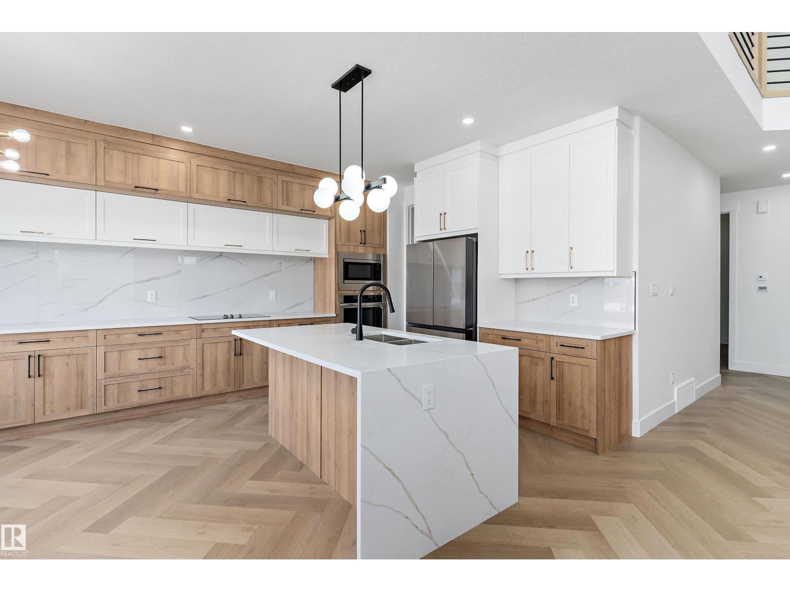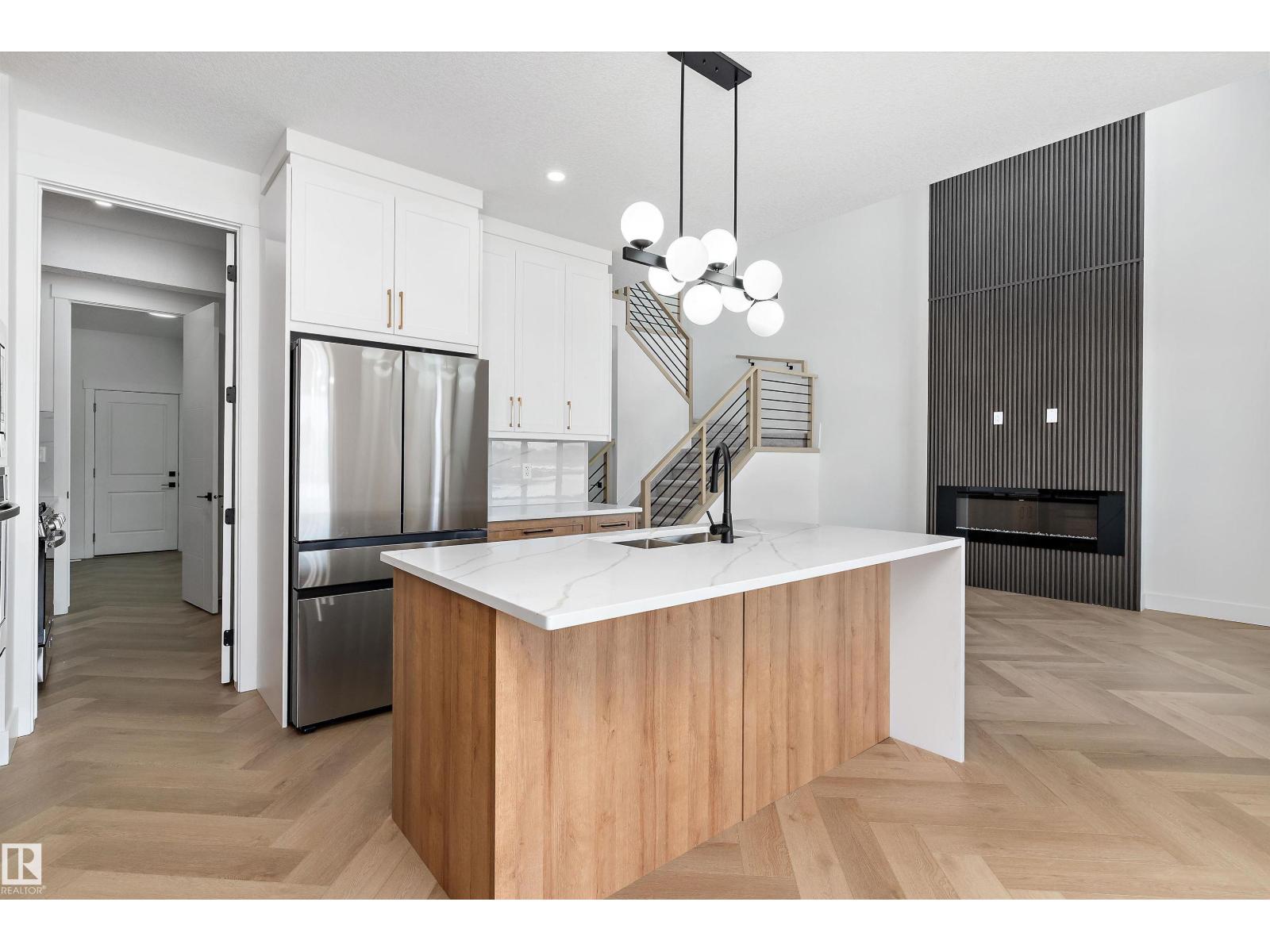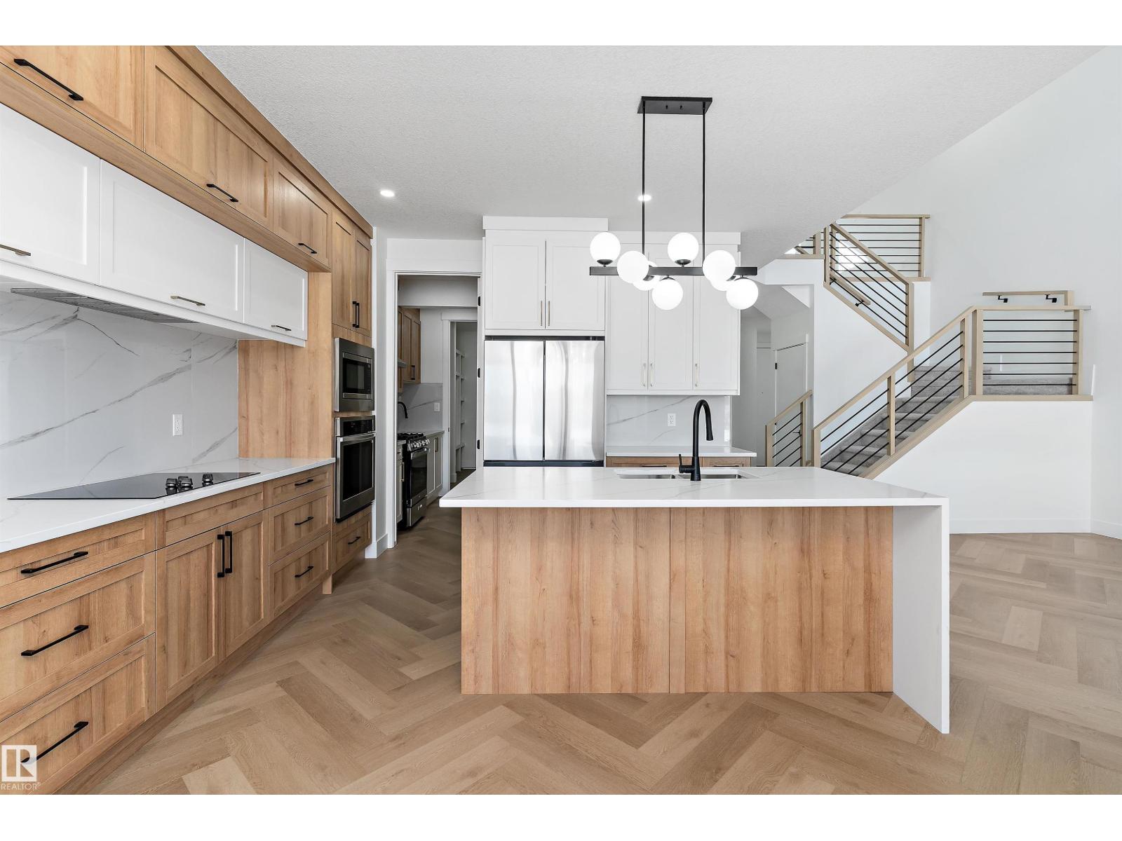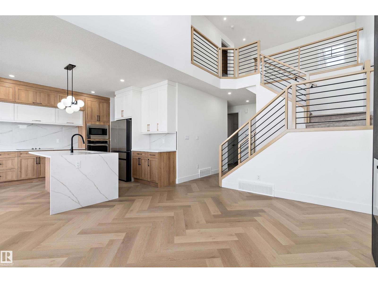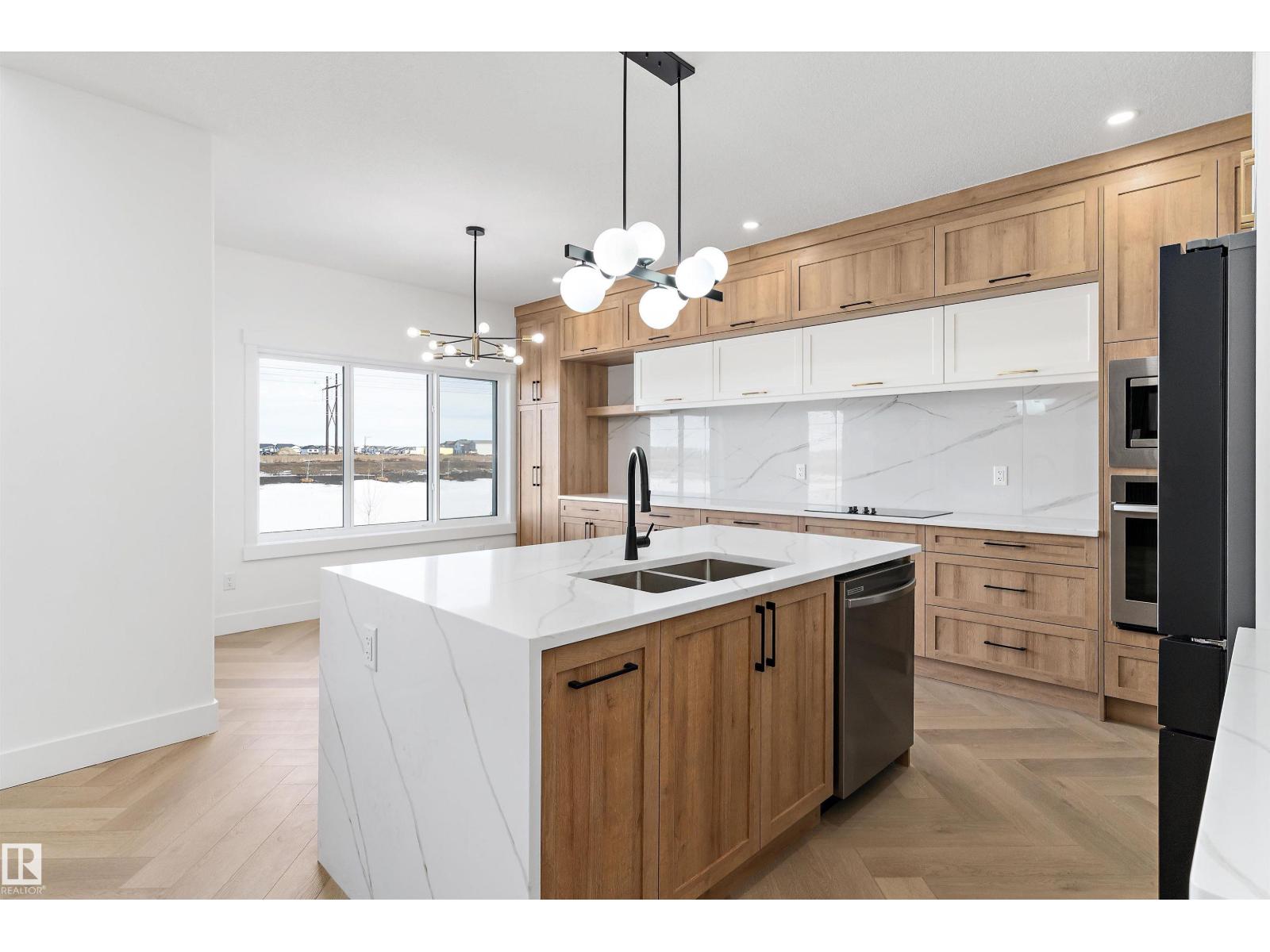 STUNNING DRY POND-BACKING HOME on a conventional lot in Woodhaven at Edgemont! This executive home boasts a grand open-to-below design, high-end finishes, and elegant spindle railing. The gourmet extended kitchen includes premium appliances plus a spice kitchen. Features a sought-after main floor bedroom and full bath. Upstairs, discover a beautiful master suite with a luxurious ensuite, 3 more bedrooms (4 total up), a large bonus room, and laundry. Includes a separate side entrance for future basement development potential. Experience modern luxury in West Edmonton’s premier ravine community. Exceptional value in a prime location! (id:63190)