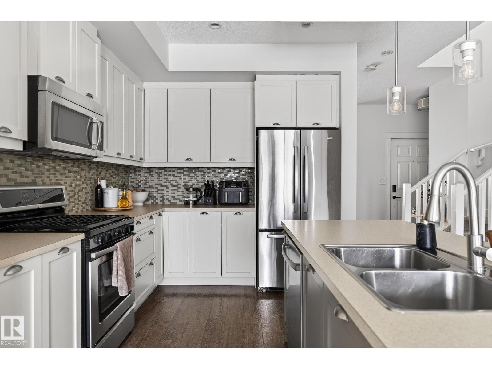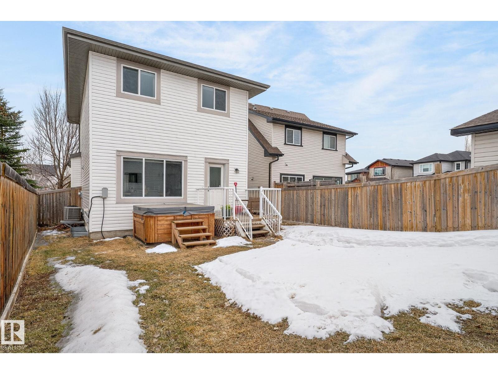 Nestled in the family-friendly community of Secord, this beautifully maintained home offers 3 bedrooms, 2.5 bathrooms, and a thoughtfully designed living space where style meets everyday comfort. The open main floor showcases soaring ceilings, a spacious dining area, and a well-appointed kitchen with ample prep space and cabinetry. The living room, anchored by a sleek gas fireplace, is bathed in natural light, creating a warm and inviting atmosphere perfect for relaxing or entertaining. Upstairs, three generous bedrooms share a full bath, while the lower level provides a cozy family room, flexible space, ample storage, and laundry facilities. Step outside to a private backyard and enjoy the oversized double garage. Ideally located near scenic trails, parks, schools, and quick access to the Henday, this home offers a perfect combination of charm, functionality, and west-end convenience. (id:63190)