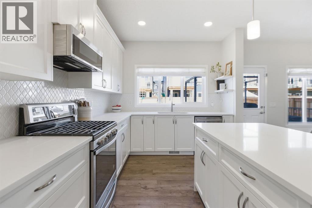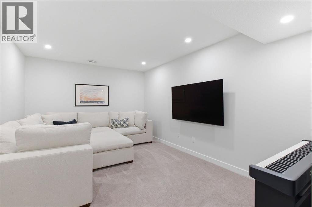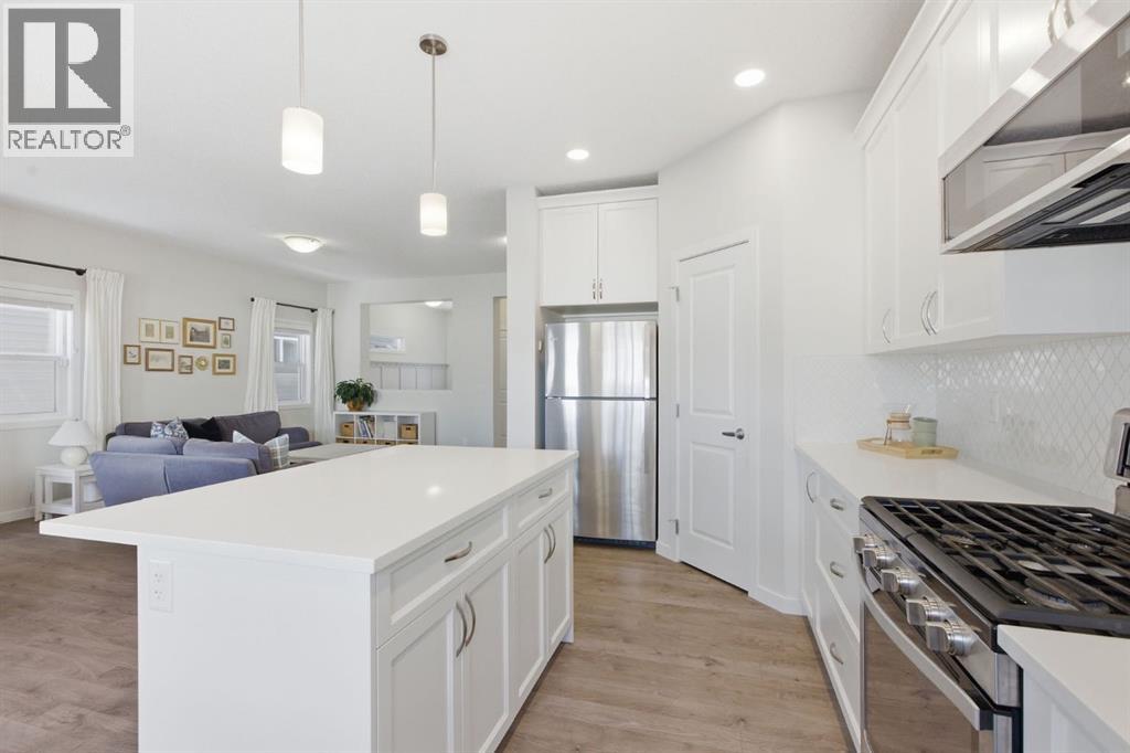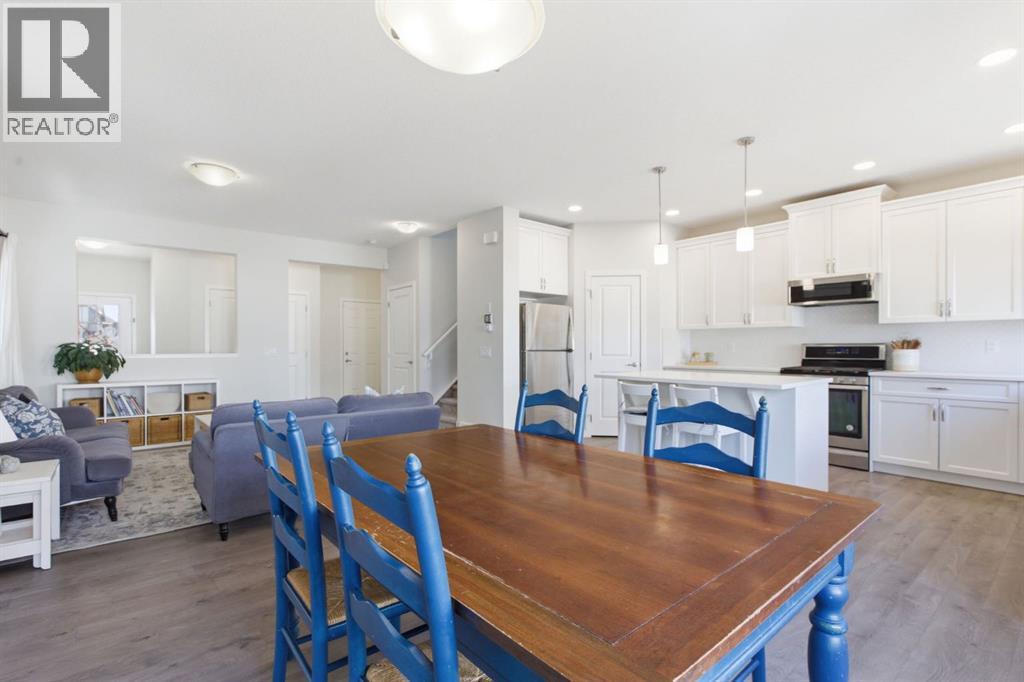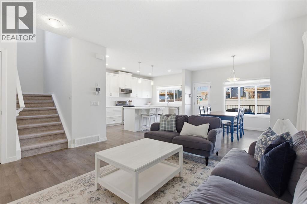 Welcome to this beautifully maintained two-storey home offering over 2,800 sq ft of thoughtfully designed living space in a quiet, family-friendly area of Cochrane. With a functional layout, modern finishes, and a fully developed basement, this home perfectly blends comfort and everyday practicality.Step inside to a bright and inviting main floor featuring large windows that fill the space with natural light and durable flooring throughout. The open-concept design seamlessly connects the living, dining, and kitchen areas—ideal for both entertaining and daily living. The kitchen is well-appointed with stainless steel appliances, a central island, a corner pantry, and plenty of cabinetry, creating a space that is both stylish and highly functional. The dining area is enhanced by beautiful built-in cabinetry, adding character and valuable storage.Upstairs, you’ll find a spacious and sun-filled bonus room—perfect for a family lounge, playroom, or home office. The upper level also offers three generously sized bedrooms, including a comfortable primary retreat complete with a walk-in closet and private ensuite. Convenient upper-floor laundry adds to the thoughtful layout.The fully finished basement extends your living space with a large family/recreation room, an additional bedroom, and a full bathroom—ideal for guests, teens, or extended family.Step outside to enjoy the private, fully fenced backyard featuring a large deck with a pergola and custom shades on both the top and west side—ideal for summer BBQs and outdoor entertaining.Additional highlights include a double attached garage, quiet street location, and close proximity to parks, schools, and scenic walking paths.This is a fantastic opportunity to own a well-cared-for home in one of Cochrane’s most desirable family-oriented communities. (id:63190)