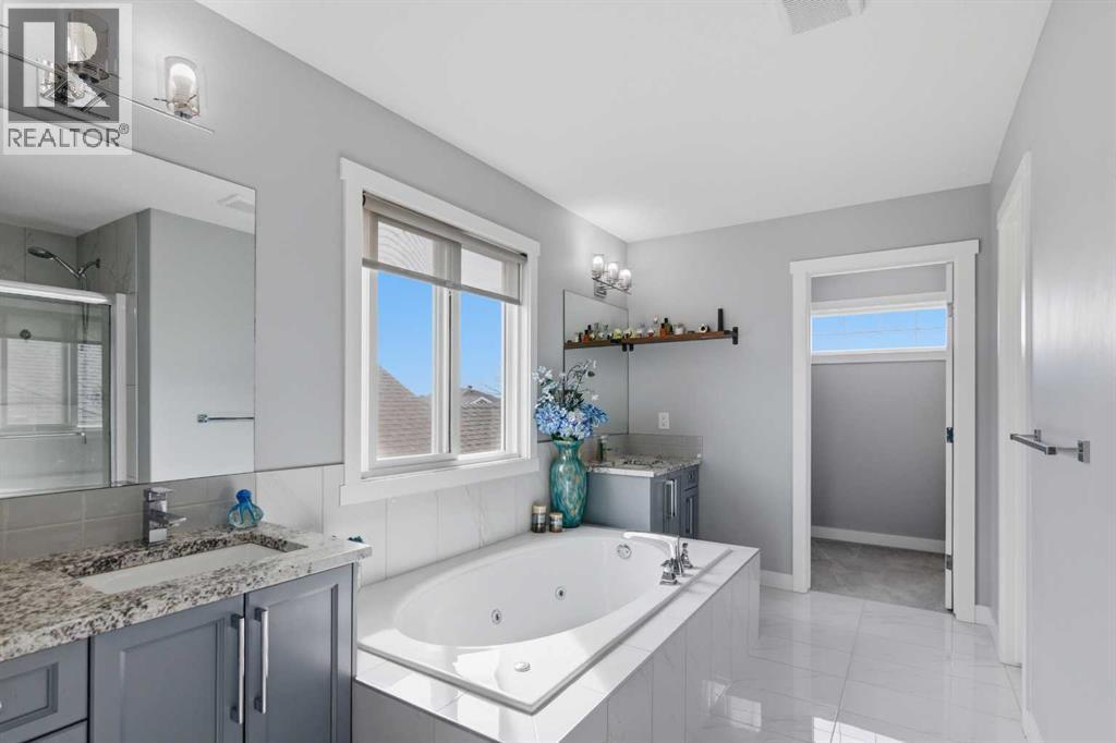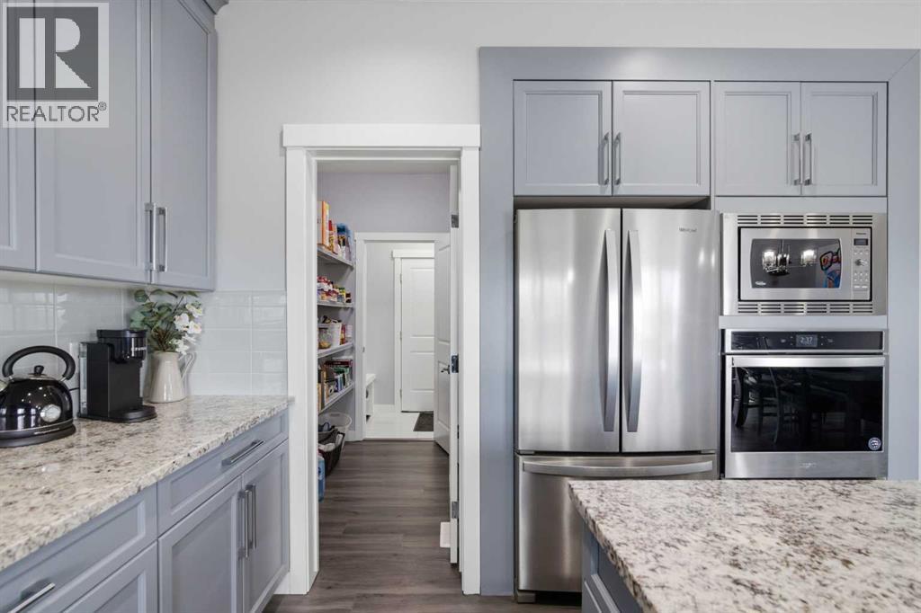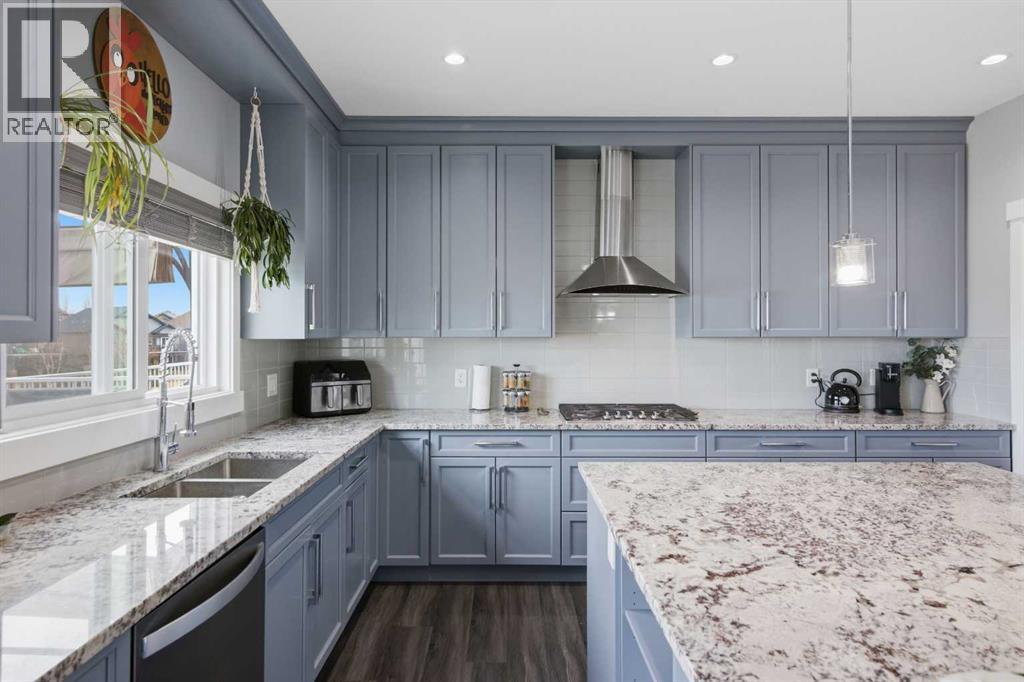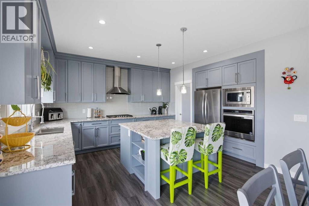 ***OPEN HOUSE Sunday March 22 from 2pm-4pm***Come view this High River detached 2200 sq ft home, with a fully developed Walk Out basement adding an additional 1000 sq ft of living space. Beautifully appointed 5-bedroom, 4-bath home is in like-new condition and perfectly situated at the end of a quiet cul-de-sac, backing onto a tranquil pond and park in the community of Montrose. Designed to maximize natural light and picturesque views, the kitchen, living room, dining room, primary suite, and walkout level all overlook the water. High-quality finishes are showcased throughout, including durable laminate floors, granite countertops, custom tile, 9' ceilings, a striking 40" wide staircase, and premium cabinetry and woodwork throughout. The chef’s kitchen features a large island, walk-through pantry, and built-in high-end stainless-steel appliances with a gas cooktop. The thoughtful layout includes a private main-floor office, bright bonus room, second-floor laundry, and a well-designed mudroom. Outdoor living is exceptional with an oversized 22' deck and a poured patio on the walkout level. Set on a large pie-shaped, fully fenced lot, this home offers luxury, privacy, and an unbeatable location. Close to schools and shopping, come check out your new home today. (id:63190)