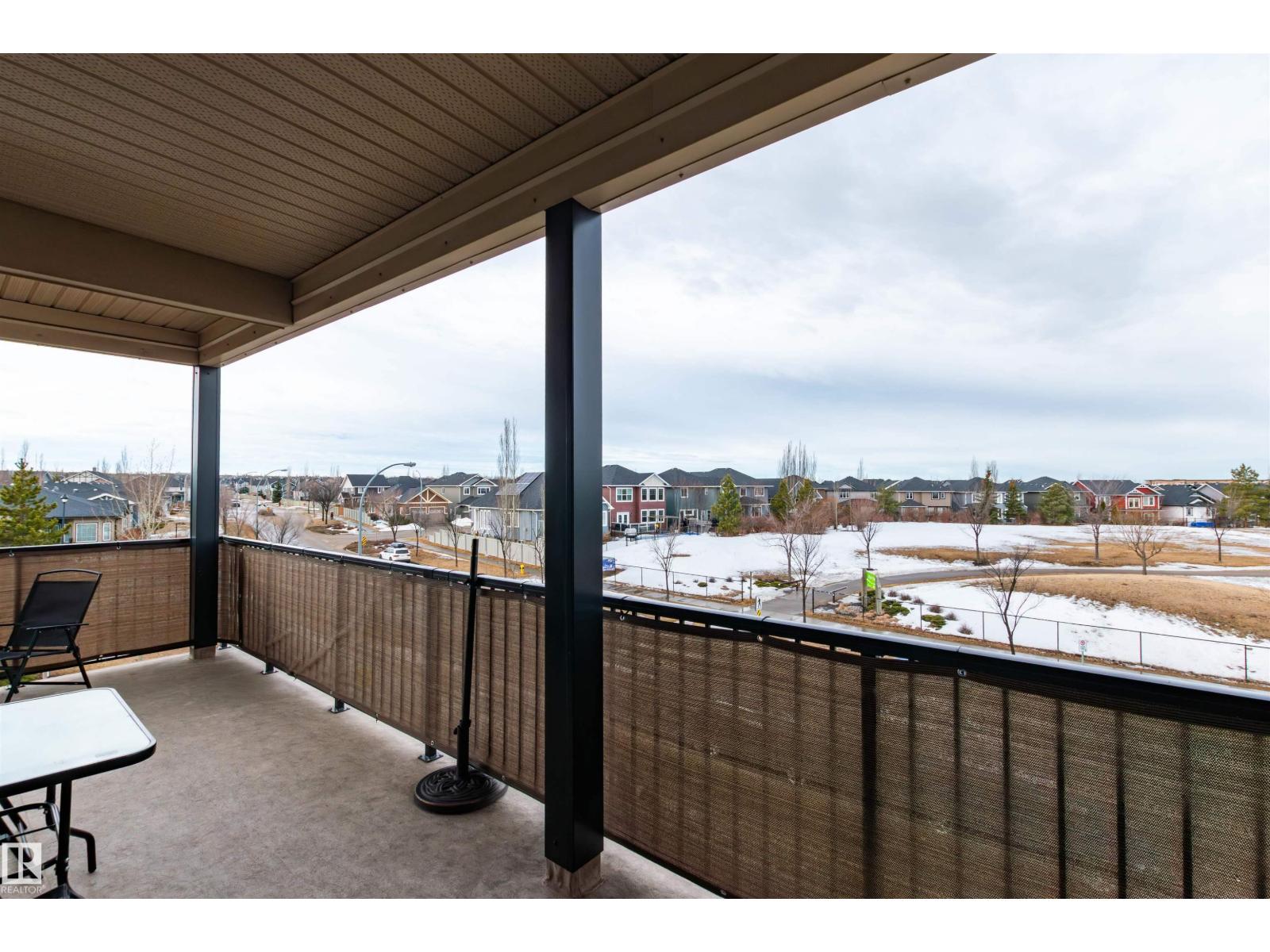 OVERLOOKING THE PARK! Prime location for this beautiful END UNIT condo in Eton Park Estates! Close to major amenities, restaurants, hospital, transit and shopping in the popular community of Emerald Hills. 18+ building. Featuring a large and open layout with 1258 square feet! 9 ft ceilings! GORGEOUS gourmet kitchen with an abundance of cabinetry, Granite countertops, island with eating bar & stainless steel appliances. Very spacious living room & generous dining area...perfect for entertaining friends & family. Huge Primary Bedroom with walk-in closet and beautiful 4-piece ensuite! Second Bedroom with beautiful 4-piece ensuite as well! Convenient in-suite laundry, 2-piece bathroom for guests, and utility area including AIR-CONDITIONING! One of the major highlights of this condo is the incredible WRAP AROUND DECK! One TITLED underground & heated parking stall plus one assigned storage cage. Main floor fitness room! Condo fees INCLUDE heat & water! Outstanding value! Visit REALTOR® website for information. (id:63190)