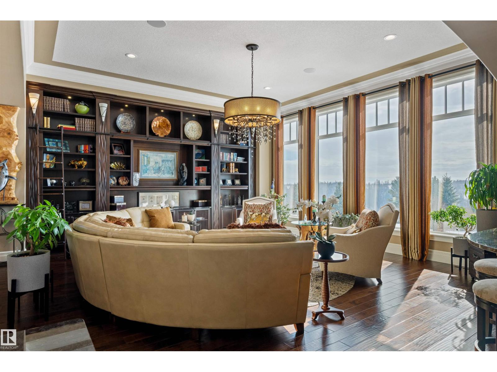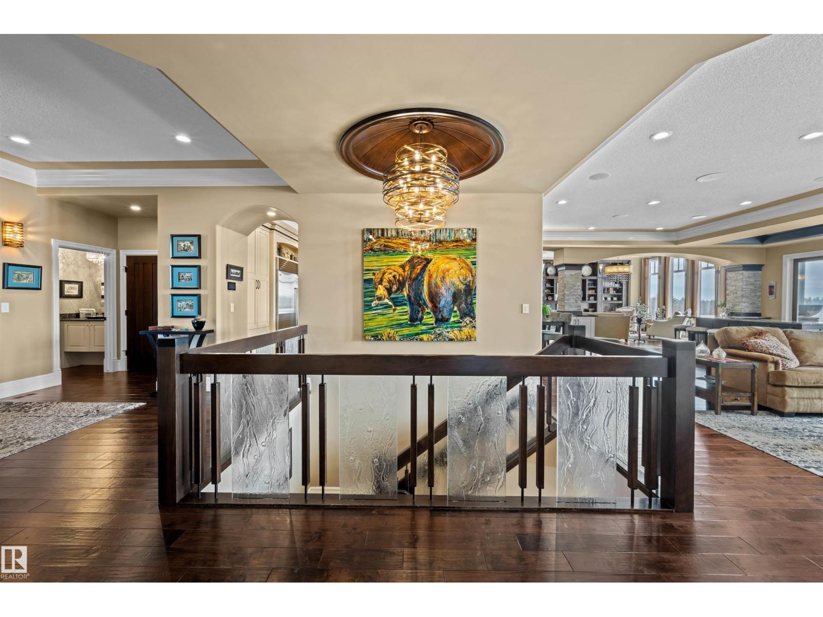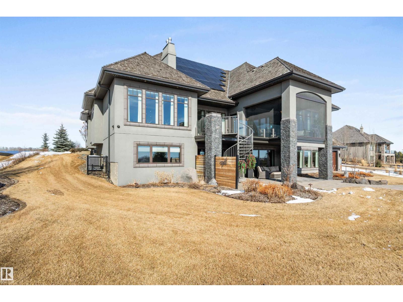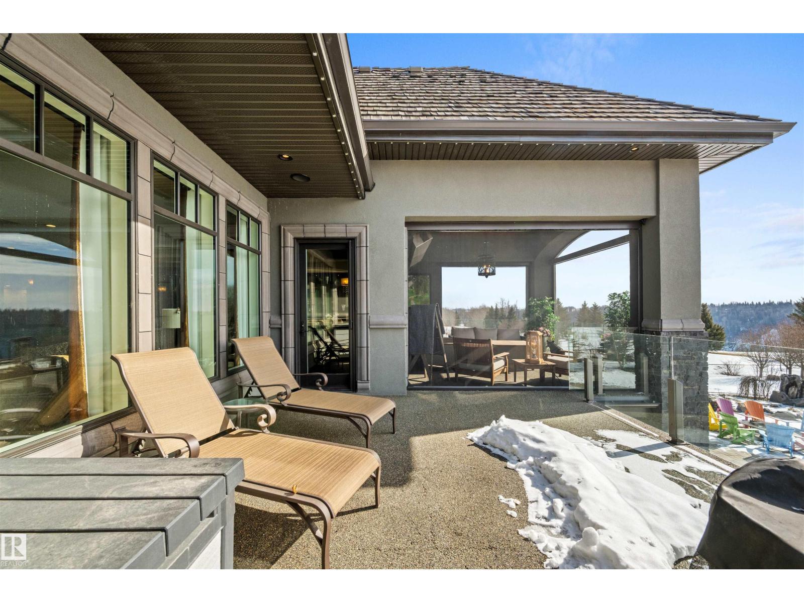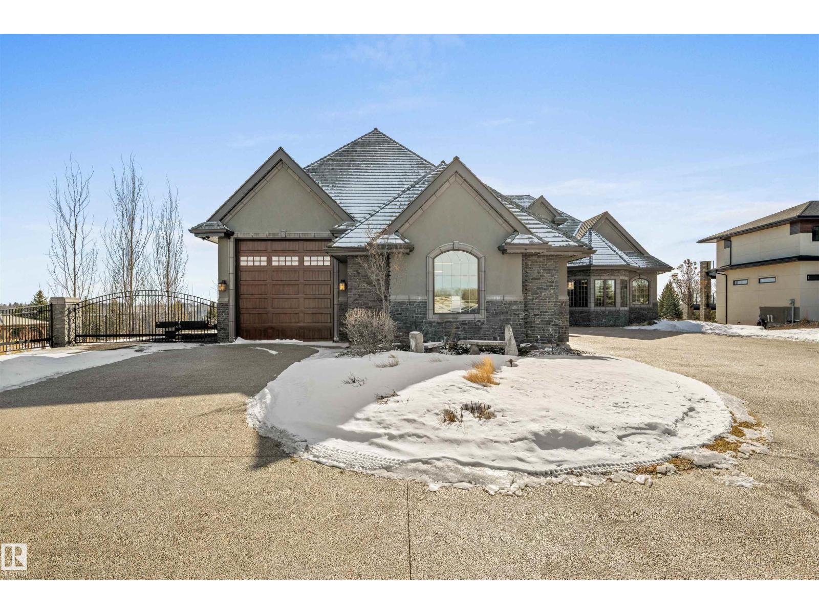 Rarely does a property of this caliber come to market. Perched above the river on 1.26 fenced acres in Blackhawk, this extraordinary walkout estate commands south-facing views that shift with every season, from the movement of the river in summer to the glow of ski slopes on a crisp winter evening. Direct trail access connects you to nature the moment you step outside, while thoughtful design & automation ensure life inside is equally effortless. Over 6,800 square feet of refined living space is complemented by 2,300 square feet of garage, four bays plus a dedicated RV bay, built for those who expect scale without compromise. Every detail, every material, every system chosen to stand the test of time. Blackhawk is Edmonton's most coveted rural enclave, offering privileged access to one of the region's most exclusive golf & country clubs. This is not simply a home. It is a generational estate, conceived for the most discerning of owners. Visit the REALTOR® website for additional information: markgummer.ca (id:63190)