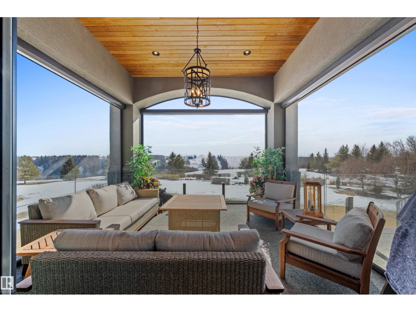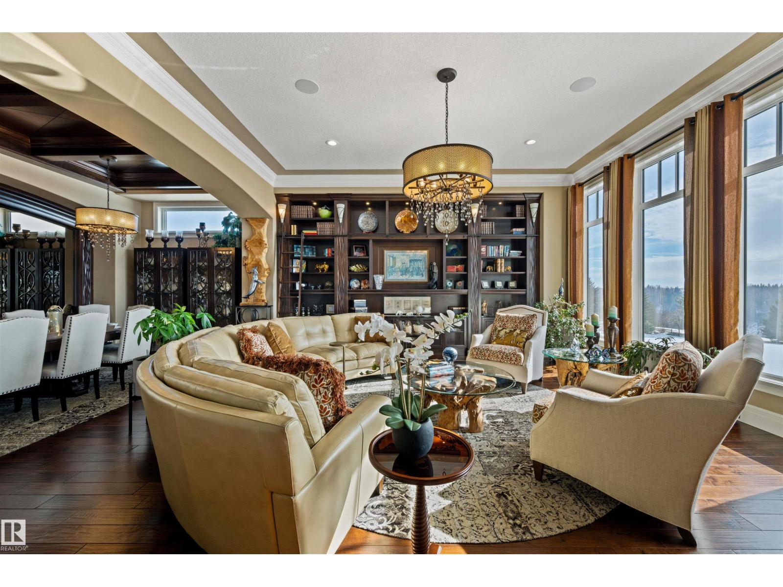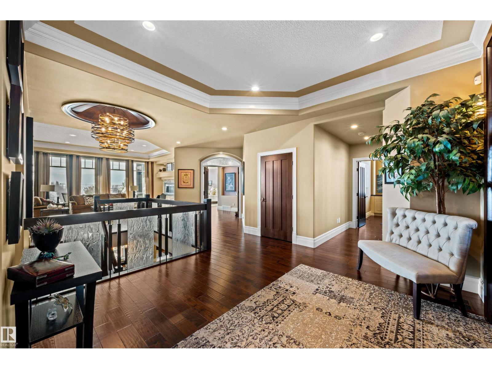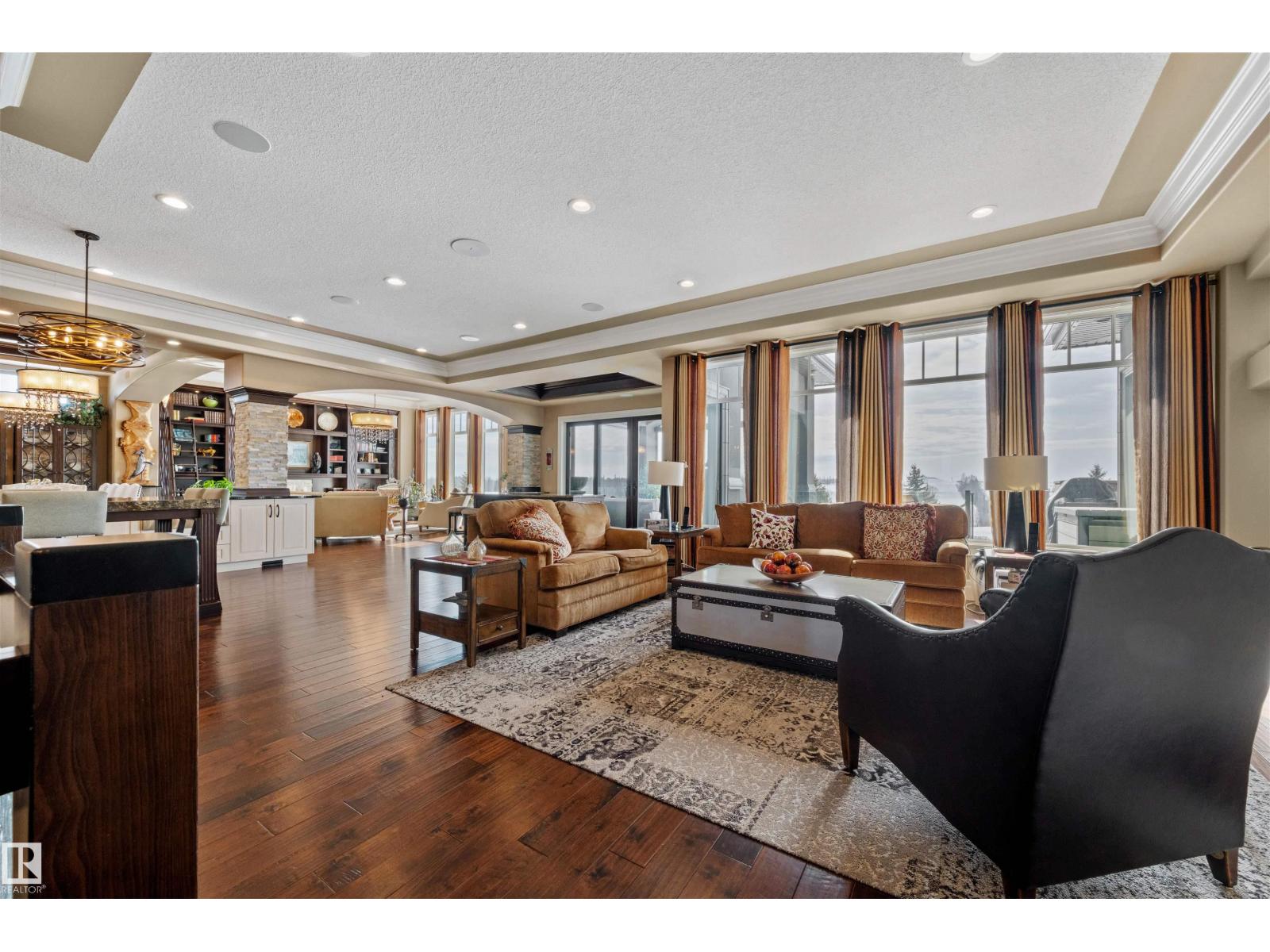 Rarely does a property of this caliber come to market. Perched above the river on 1.26 fenced acres in Blackhawk, this extraordinary walkout estate commands south-facing views that shift with every season, from the movement of the river in summer to the glow of ski slopes on a crisp winter evening. Direct trail access connects you to nature the moment you step outside, while thoughtful design & automation ensure life inside is equally effortless. Over 6,800 square feet of refined living space is complemented by 2,300 square feet of garage, four bays plus a dedicated RV bay, built for those who expect scale without compromise. Every detail, every material, every system chosen to stand the test of time. Blackhawk is Edmonton's most coveted rural enclave, offering privileged access to one of the region's most exclusive golf & country clubs. This is not simply a home. It is a generational estate, conceived for the most discerning of owners. Visit the REALTOR® website for additional information: markgummer.ca (id:63190)