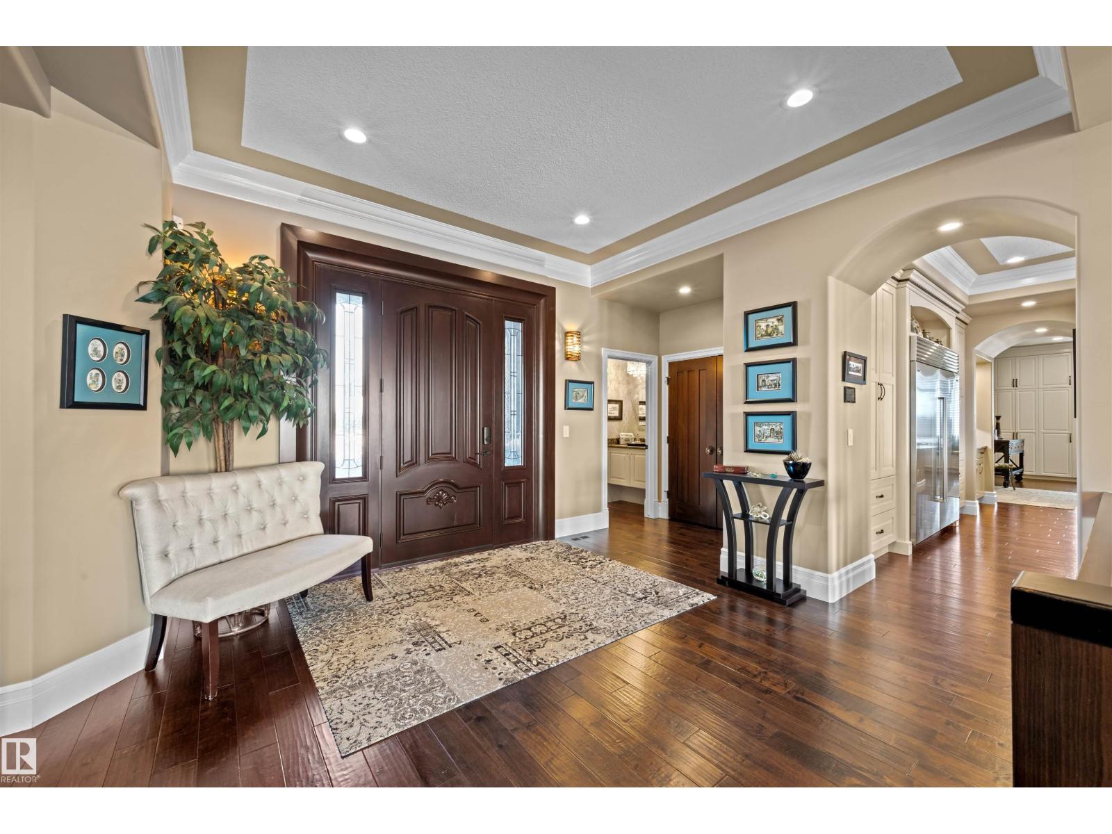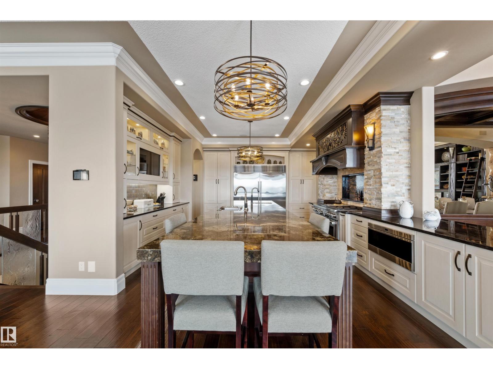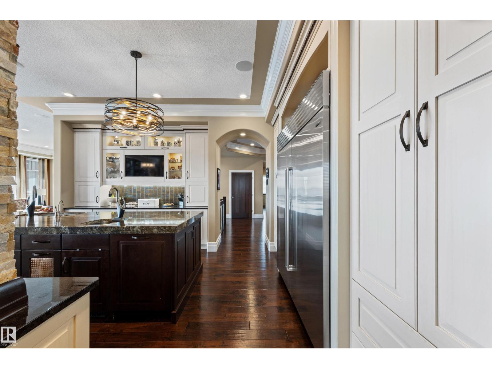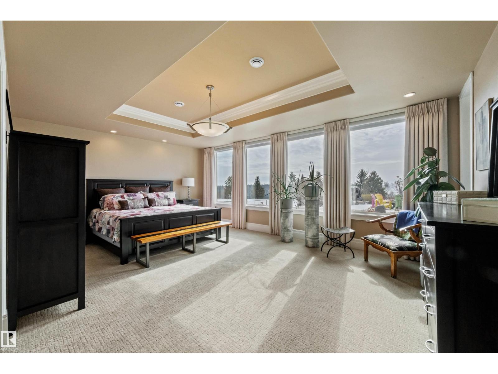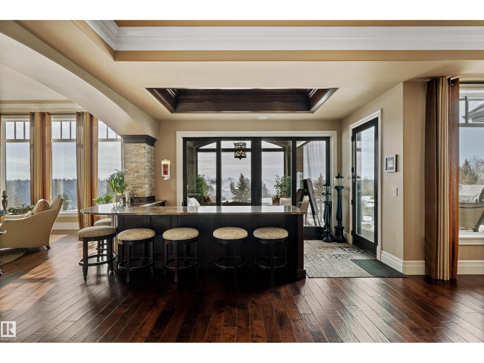 Rarely does a property of this caliber come to market. Perched above the river on 1.26 fenced acres in Blackhawk, this extraordinary walkout estate commands south-facing views that shift with every season, from the movement of the river in summer to the glow of ski slopes on a crisp winter evening. Direct trail access connects you to nature the moment you step outside, while thoughtful design & automation ensure life inside is equally effortless. Over 6,800 square feet of refined living space is complemented by 2,300 square feet of garage, four bays plus a dedicated RV bay, built for those who expect scale without compromise. Every detail, every material, every system chosen to stand the test of time. Blackhawk is Edmonton's most coveted rural enclave, offering privileged access to one of the region's most exclusive golf & country clubs. This is not simply a home. It is a generational estate, conceived for the most discerning of owners. Visit the REALTOR® website for additional information: markgummer.ca (id:63190)