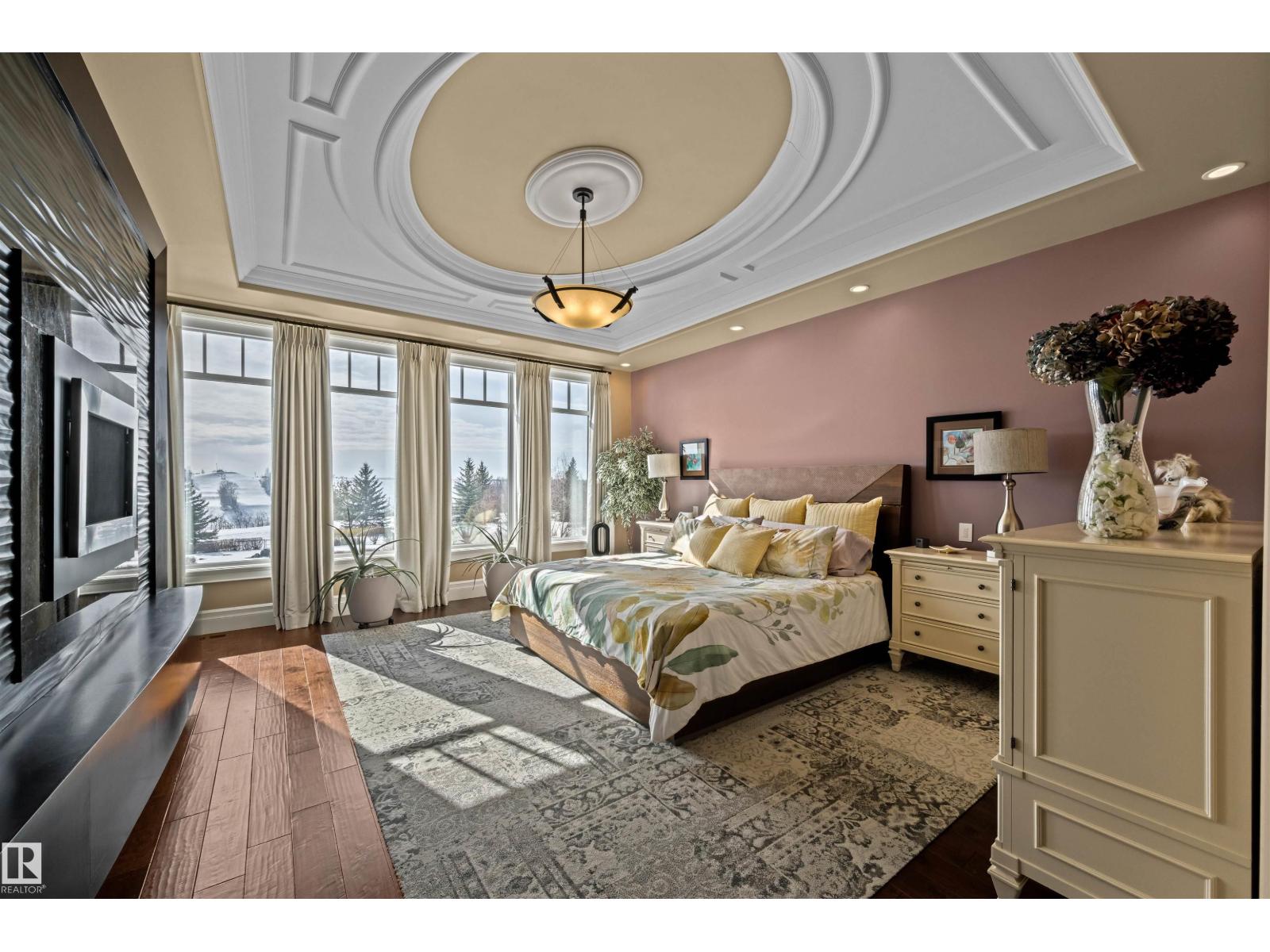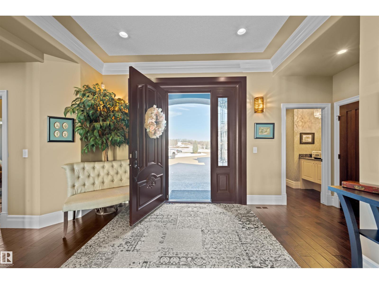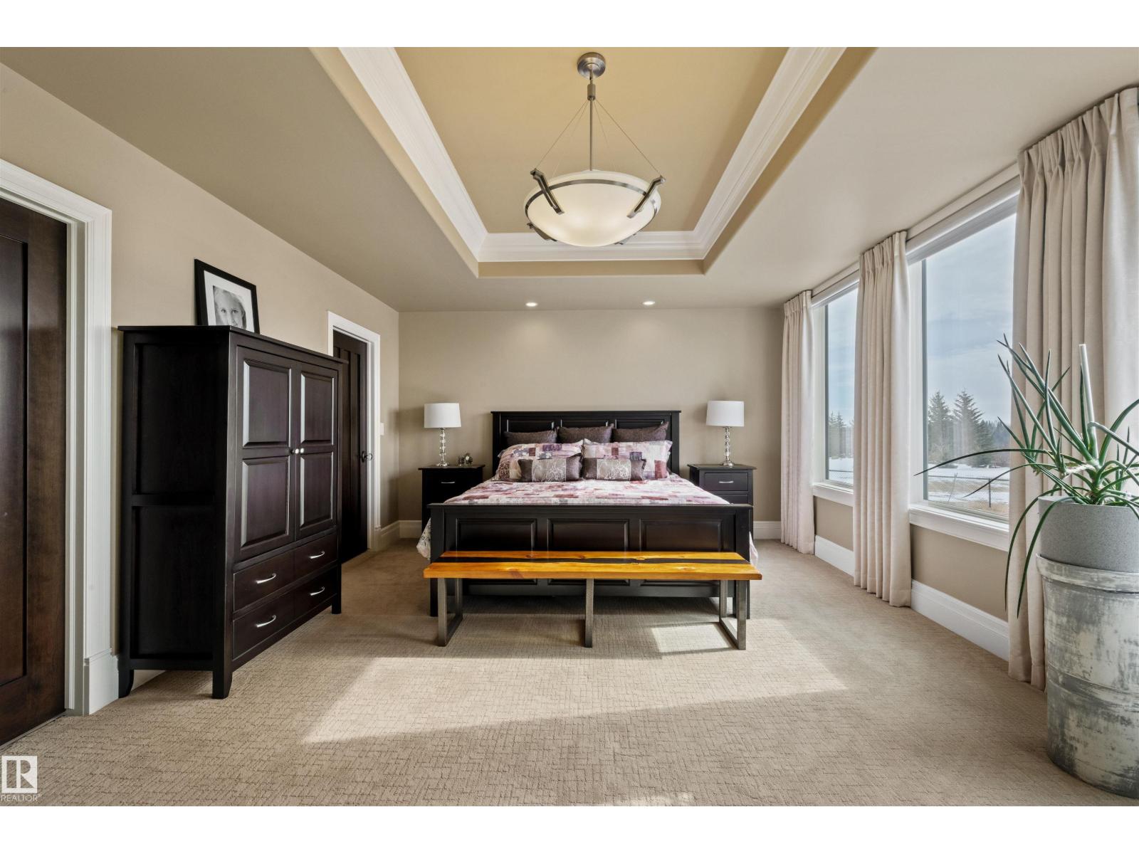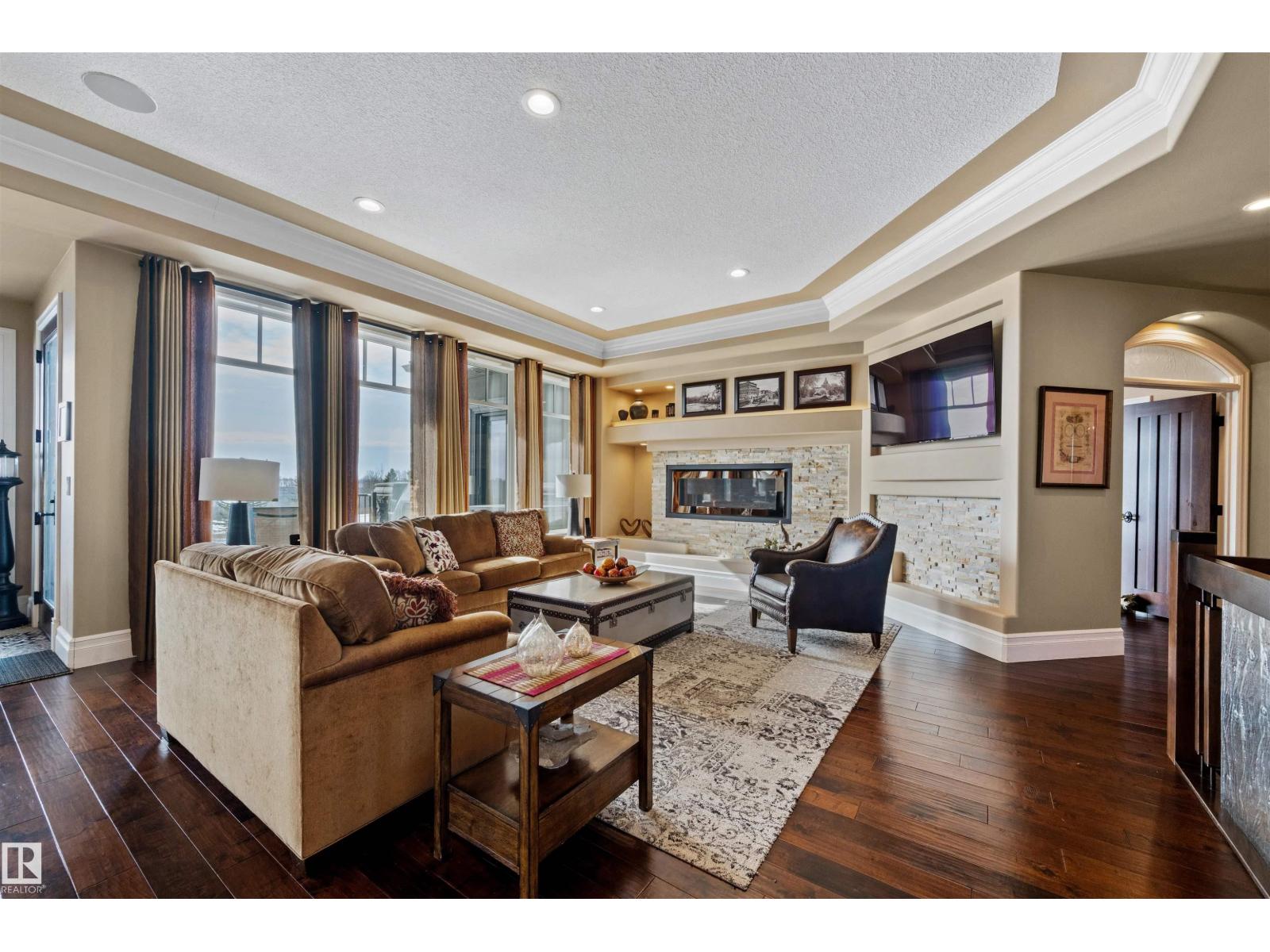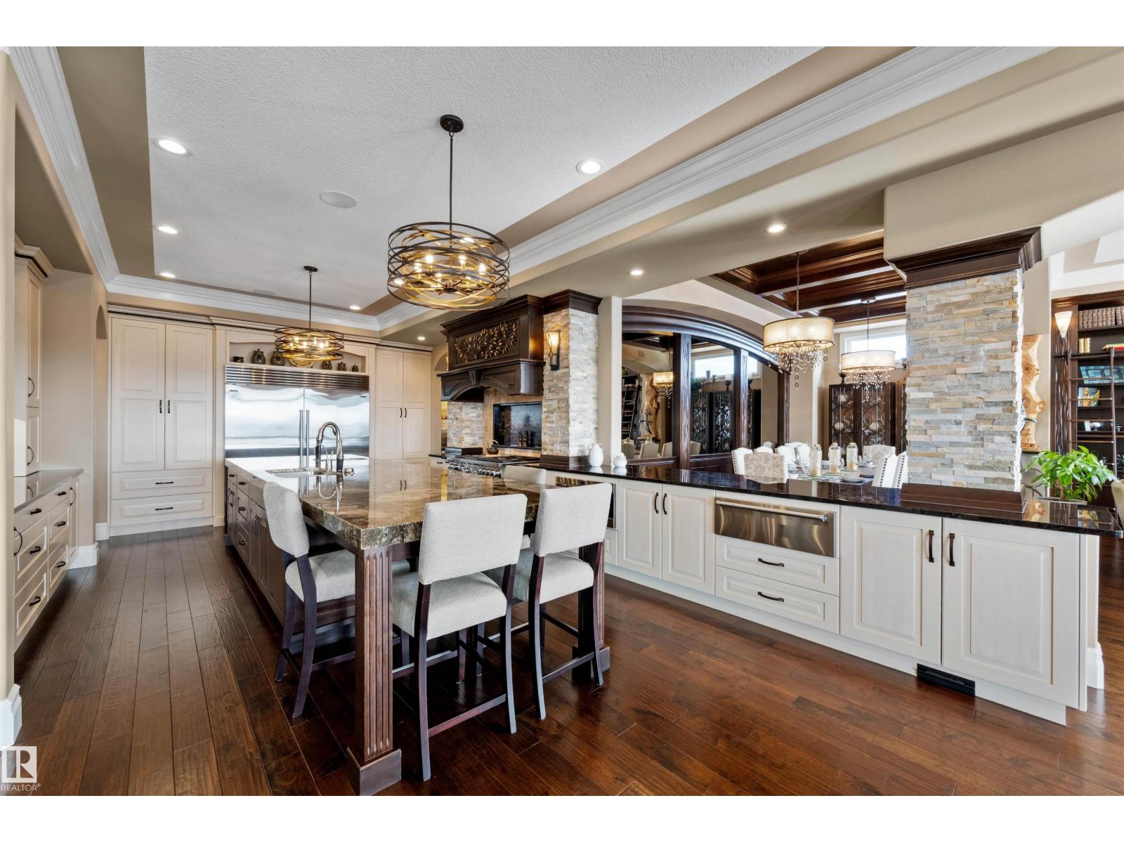 Rarely does a property of this caliber come to market. Perched above the river on 1.26 fenced acres in Blackhawk, this extraordinary walkout estate commands south-facing views that shift with every season, from the movement of the river in summer to the glow of ski slopes on a crisp winter evening. Direct trail access connects you to nature the moment you step outside, while thoughtful design & automation ensure life inside is equally effortless. Over 6,800 square feet of refined living space is complemented by 2,300 square feet of garage, four bays plus a dedicated RV bay, built for those who expect scale without compromise. Every detail, every material, every system chosen to stand the test of time. Blackhawk is Edmonton's most coveted rural enclave, offering privileged access to one of the region's most exclusive golf & country clubs. This is not simply a home. It is a generational estate, conceived for the most discerning of owners. Visit the REALTOR® website for additional information: markgummer.ca (id:63190)