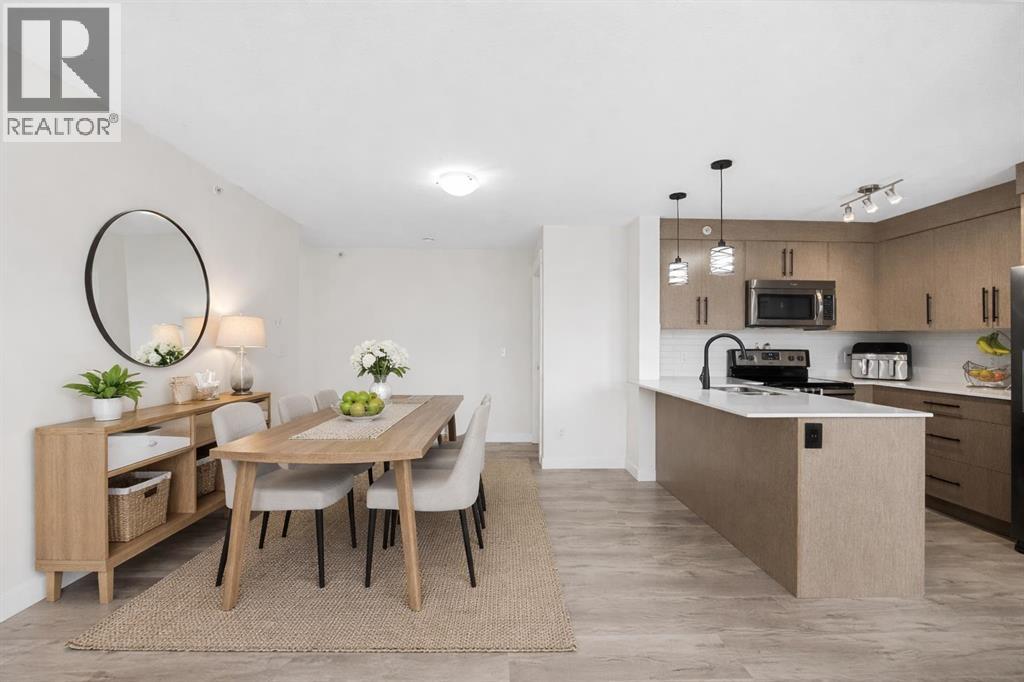 Welcome to this exceptional top-floor corner unit in the sought-after community of Skyview Ranch, Calgary. Offering 839 sq. ft. of beautifully updated living space, this 2-bedroom, 2-bathroom condo combines modern finishes with an unbeatable layout and stunning northwest-facing views—including the rare chance to catch the Aurora Borealis.Recently renovated, the home features brand new flooring, fresh paint, and upgraded quartz countertops throughout. The stylish kitchen is both functional and elegant, complete with stainless steel appliances, ample cabinetry, and sleek finishes, perfect for everyday living and entertaining.The spacious primary bedroom includes a private ensuite, while the second bedroom is ideal for guests, a home office, or roommates.Step out onto your private balcony with a natural gas BBQ line and enjoy open skies and breathtaking views. Additional highlights include underground parking and the comfort of top-floor living.Located close to shopping, dining, parks, and walking paths, with quick access to major routes, this home offers both convenience and lifestyle in one of Calgary’s most vibrant communities.Perfect for first-time buyers, investors, or those looking to downsize—this turnkey condo truly has it all. Don’t miss your opportunity—book your showing today! (id:63190)