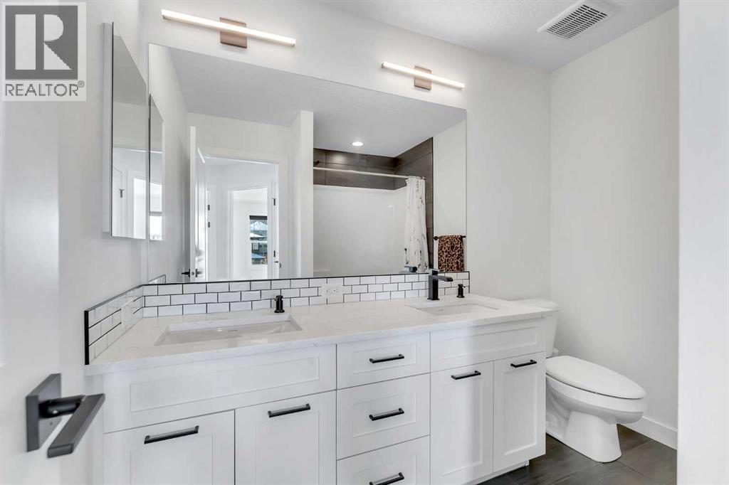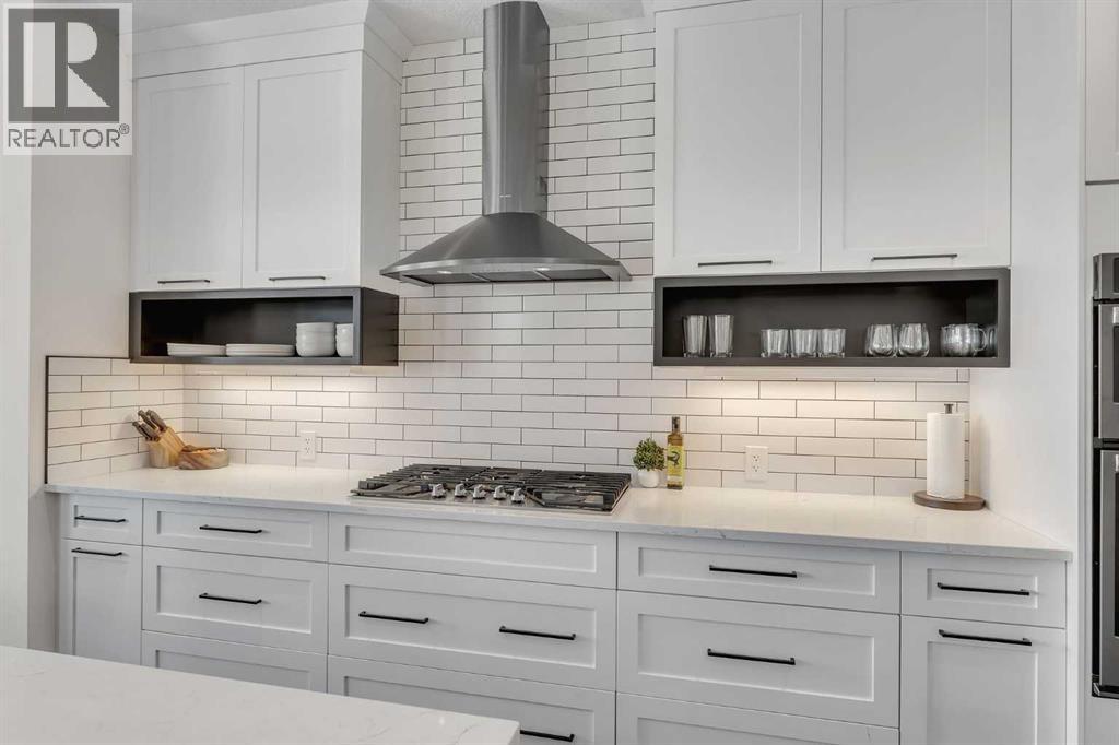 FRONT ATTACHED TRIPLE CAR GARAGE | FINISHED WALK OUT BASEMENT | GREEN SPACE BEHIND | EXTENSIVE LANDSCAPING | CORNER LOT | Welcome to this stunning executive home in Crestmont—one of SW Calgary’s most sought-after, family-friendly communities. Situated on a beautifully landscaped corner lot backing onto green space, this triple-car garage residence boasts luxury at every turn with smart blinds featuring phone & scheduling control, built-in speakers throughout, and approximately $50,000+ in professional landscaping that truly shows. Step inside to a grand foyer complete with a generous closet, with a dedicated office and window adjacent—perfect for working from home. The kitchen is a chef’s dream, featuring a spacious island, built-in stainless steel appliances, a five-burner built-in gas range, a bar fridge, and an abundance of cabinet and counter space, all finished with luxurious upgrades. The dining room is flooded with natural light from patio doors that open onto a spacious balcony overlooking green space—the ideal setting for meals with family and friends. The living room showcases a gorgeous fireplace feature wall and large windows that fill the space with sunlight, while a large pantry connects to a conveniently designed mudroom with built-in shelving and a bench, and a two-piece powder room completes the main level. Upstairs, three generously sized bedrooms await, including the primary suite with a large walk-in closet and gorgeous four-piece ensuite. The second bedroom also includes a spacious walk-in closet. A five-piece bathroom, a dedicated laundry room with cabinetry, and a versatile bonus room ideal for entertaining or relaxing round out the upper level. The fully finished walkout basement is designed for entertainment and comfort, anchored by a stylish bar and large recreation room, plus a unique bedroom featuring $7,000+ worth of acoustic panels with built-in lighting—the perfect personal getaway. A full bathroom, utility room with a second s et of laundry machines, and ample storage complete the lower level. The triple car attached garage is equipped with high quality pro slat walls, epoxy flooring, and custom lighting. This space is any CAR ENTHUSIASTS DREAM! Step outside and enjoy the professionally landscaped patio with built-in seating, privacy screens, and a gas fire pit, creating an ideal space for outdoor entertaining. Located with quick access to the Trans-Canada Highway for easy mountain getaways, and with shopping plazas, schools, and everyday amenities just moments away, this is the home where luxury meets lifestyle. Book your private showing today—this home will not last! (id:63190)