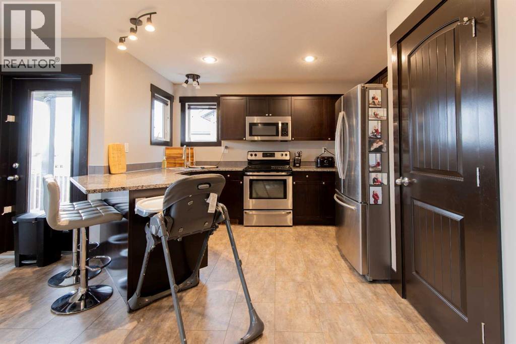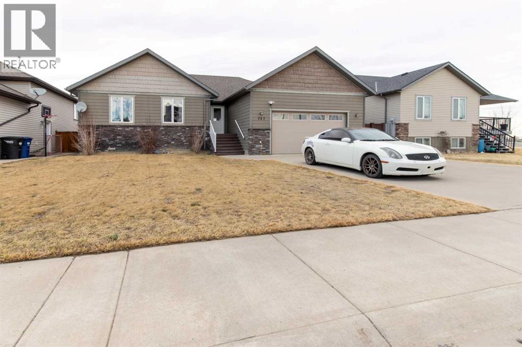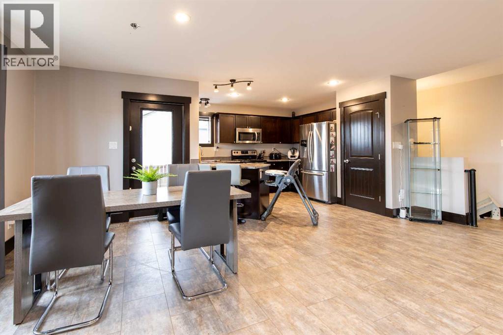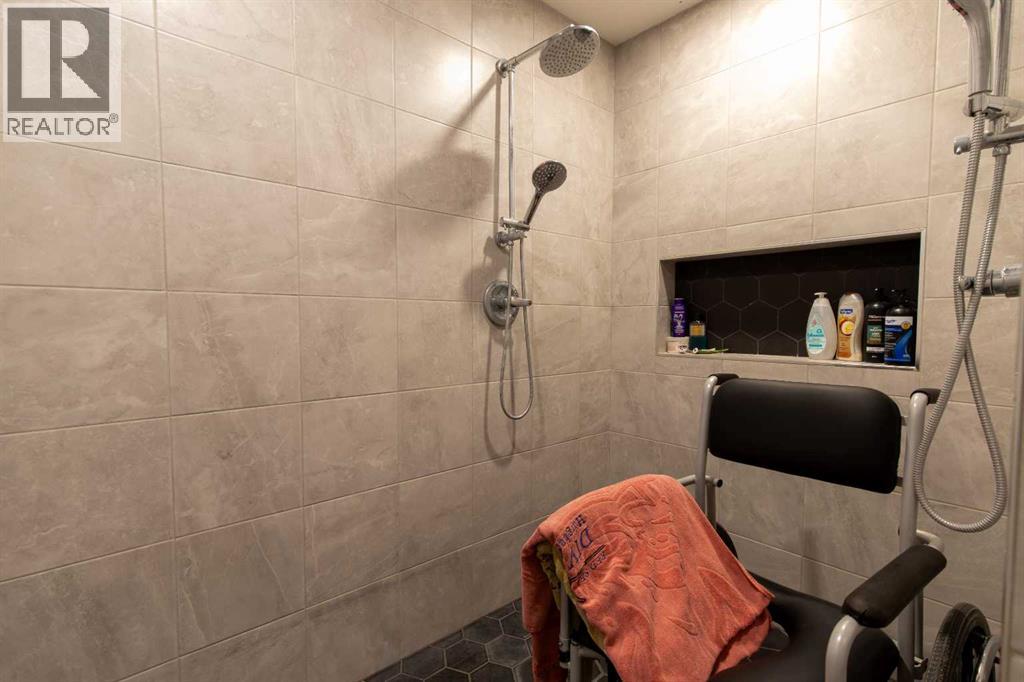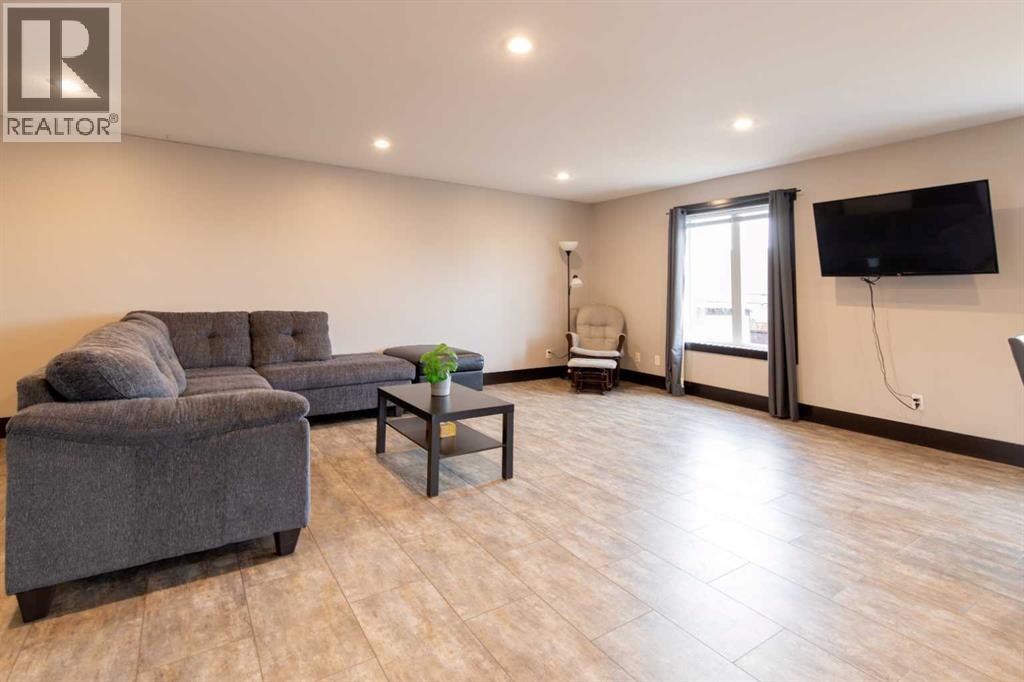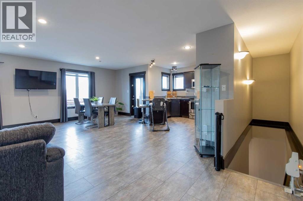 Fort Macleod bungalow home with accessible features! This home is a must-see if you're in the market for a turn-key home with enough room for the whole family and a layout you can customize for the long-term. Step inside and you'll be greeted by a spacious front foyer leading into the open-concept living and dining room which is perfect for entertaining. The kitchen boasts a wrap-around counter and breakfast bar as well as a convenient pantry. Down the hall you'll see two bedrooms, one of which featuring a laundry chute, and a full four-piece bath. The luxurious primary bedroom suite includes an accessible five-piece ensuite bath which was updated in 2020. Other recent updates include the flooring, trim, doors, and furnace. Downstairs, a huge rec room with a bar, three more bedrooms, and a four-piece bath are complimented by a laundry room and storage. Outside, the rear deck includes a hot tub hookup making a backyard that will be the perfect spot for family get-togethers and neighborhood barbecues. (id:63190)