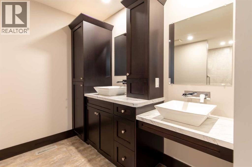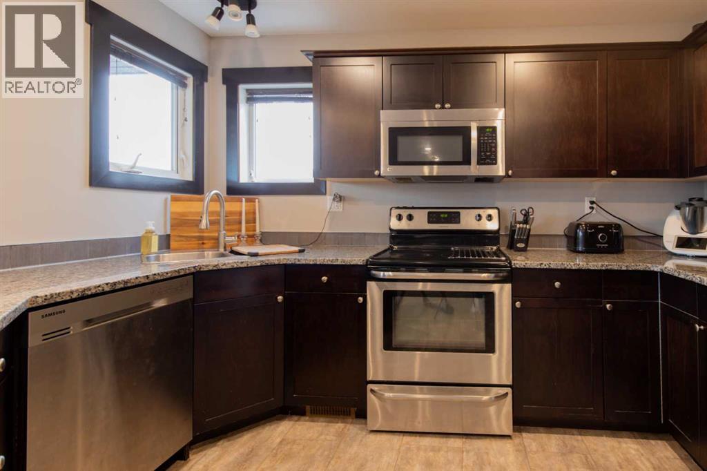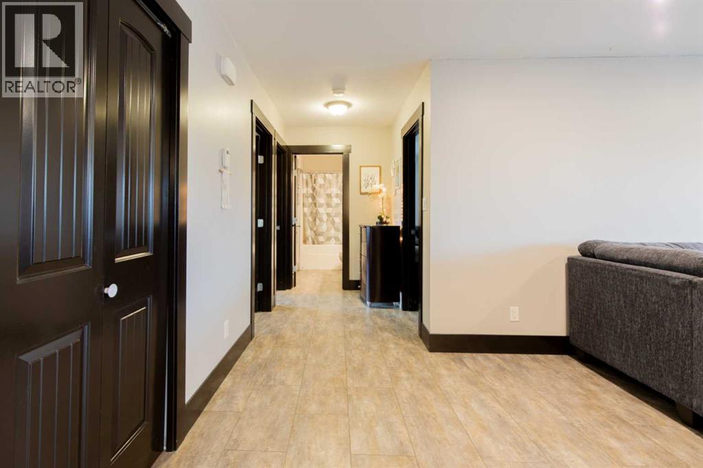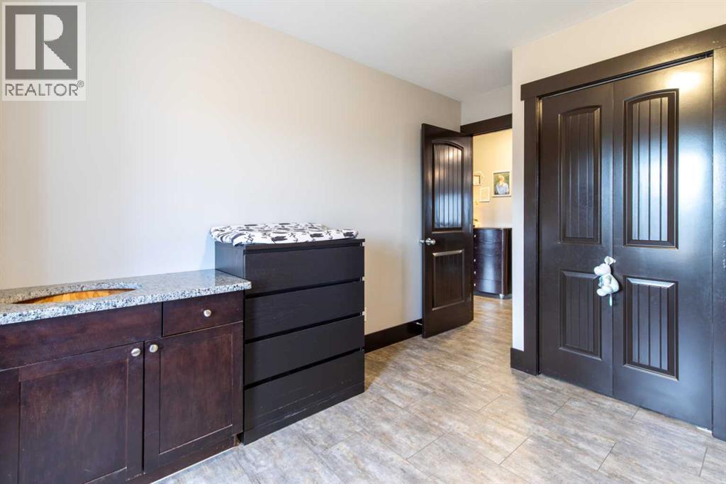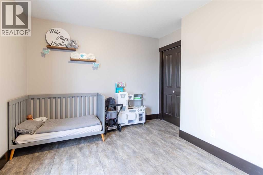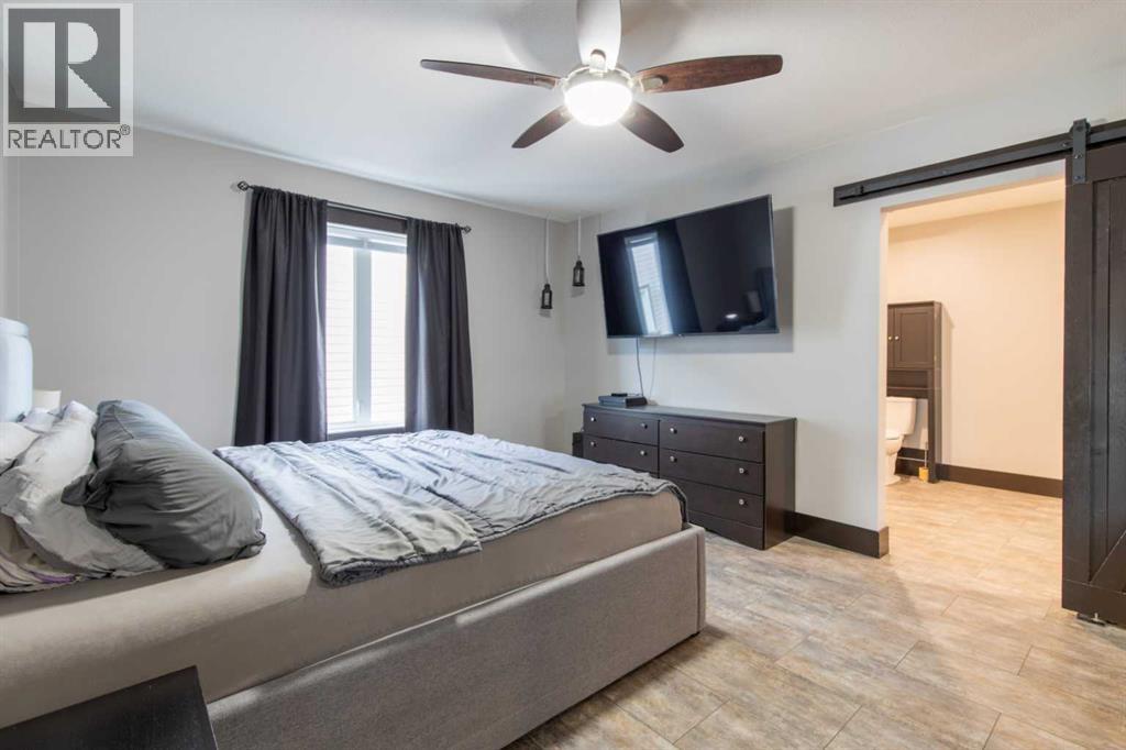 Fort Macleod bungalow home with accessible features! This home is a must-see if you're in the market for a turn-key home with enough room for the whole family and a layout you can customize for the long-term. Step inside and you'll be greeted by a spacious front foyer leading into the open-concept living and dining room which is perfect for entertaining. The kitchen boasts a wrap-around counter and breakfast bar as well as a convenient pantry. Down the hall you'll see two bedrooms, one of which featuring a laundry chute, and a full four-piece bath. The luxurious primary bedroom suite includes an accessible five-piece ensuite bath which was updated in 2020. Other recent updates include the flooring, trim, doors, and furnace. Downstairs, a huge rec room with a bar, three more bedrooms, and a four-piece bath are complimented by a laundry room and storage. Outside, the rear deck includes a hot tub hookup making a backyard that will be the perfect spot for family get-togethers and neighborhood barbecues. (id:63190)