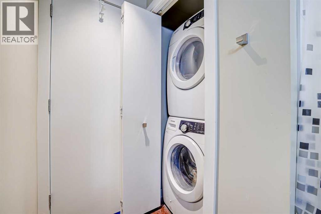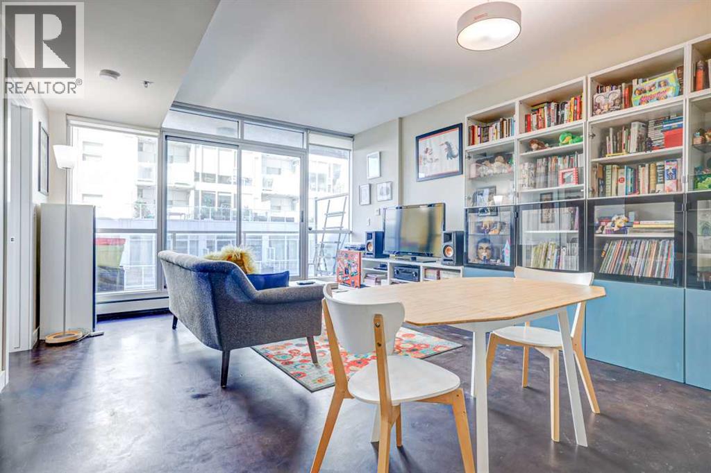 Contemporary comfort and exceptional inner-city convenience come together in this west-facing 1 bedroom + den unit in Pixel by Battistella, ideally positioned in the heart of Sunnyside. Pride of ownership is evident throughout as this original owner home has been meticulously maintained, offering both style and functionality in a highly walkable location. Polished concrete flooring introduces a contemporary aesthetic while delivering durability and low-maintenance everyday living. An open concept layout creates natural flow between spaces, centred around a dining area that connects seamlessly to both kitchen and living zones. Culinary creativity is supported by a well-appointed kitchen featuring quartz countertops, full-height cabinetry, stainless steel appliances and a peninsula island that encourages casual dining and conversation. An expansive built-in workstation provides exceptional flexibility for working from home, creative pursuits or organized daily living, offering more surface area than typically found in comparable units. Floor-to-ceiling windows span the living room, drawing in natural light throughout the day while creating a seamless transition to the full-width west-facing balcony complete with a gas line for barbeques and space to unwind outdoors. A larger primary bedroom easily accommodates a king-sized bed while oversized windows enhance both light and comfort. Dual walk-through closets enable excellent storage and connect directly to the 4-piece bathroom for added convenience. A versatile den delivers additional flexibility for a home office, guest room, hobby space or extra storage depending on your needs. Comfort is elevated with air conditioning ensuring a cool retreat during warmer months. In-suite laundry adds everyday ease while titled parking and an exceptionally large titled storage locker on P2, one of only 2 of its size in the building, provide rare and valuable additional space. Residents enjoy access to a stunning rooftop terrace desi gned for connection and relaxation, complete with fireplaces, lounge areas and panoramic views of the city skyline and Bow River. A pet-friendly building further enhances lifestyle flexibility. Daily life unfolds effortlessly with Safeway and the LRT station just 1 block away, while Kensington’s shops, restaurants and cafes are moments from your door. Pathways along the Bow River and Prince’s Island Park invite outdoor recreation while the downtown core remains within easy walking distance, supporting a vibrant and connected urban lifestyle. Truly an exceptional home in an unbeatable, extremely walkable location! (id:63190)