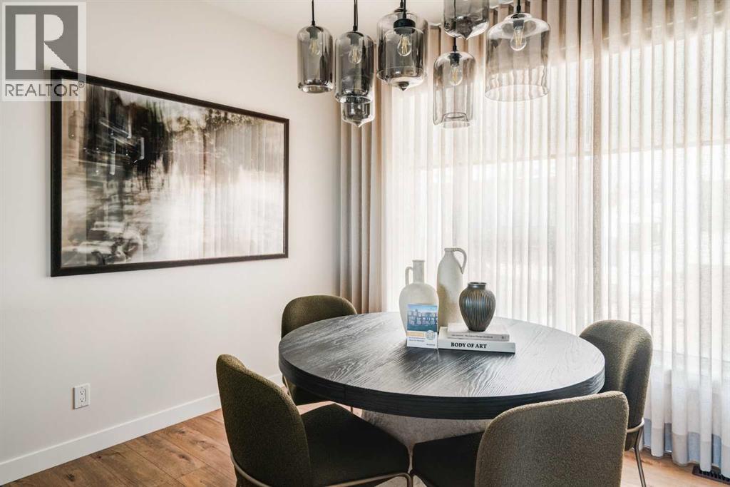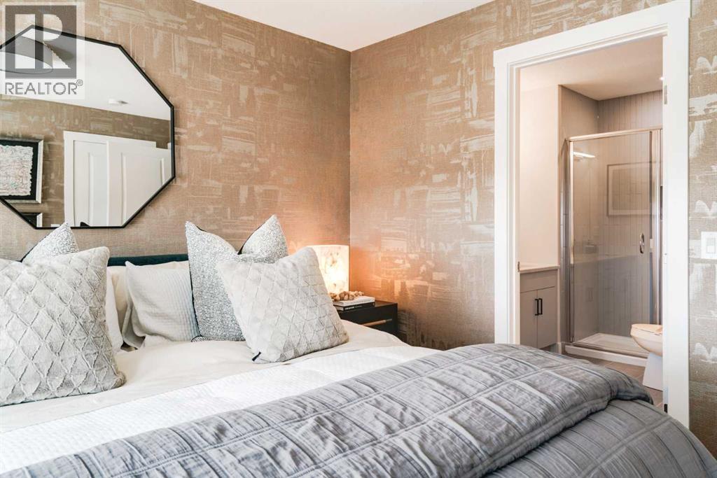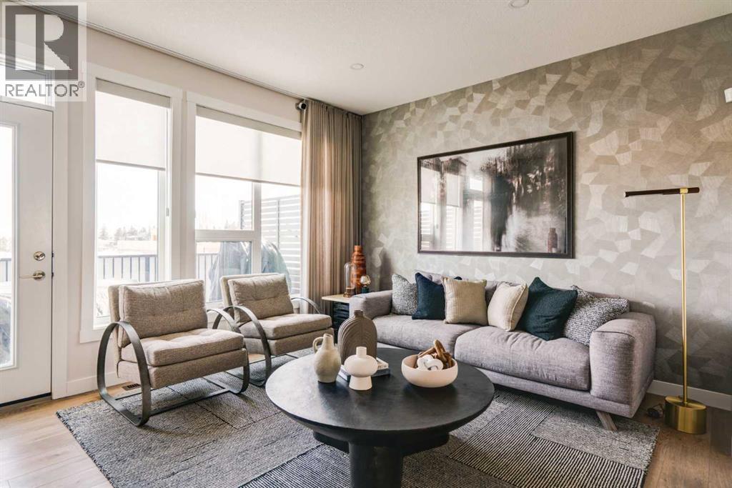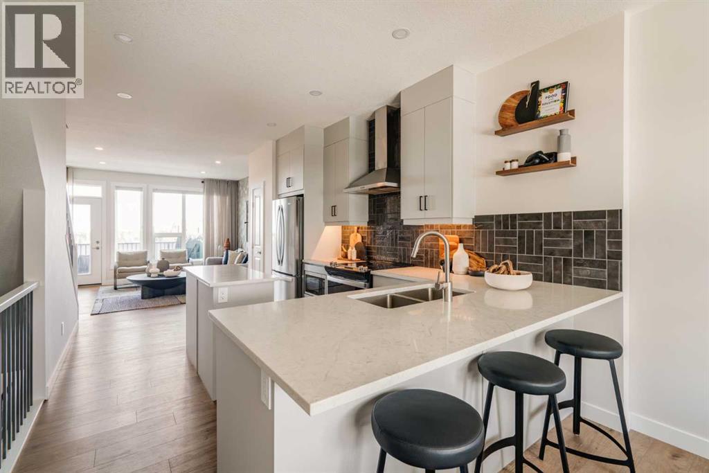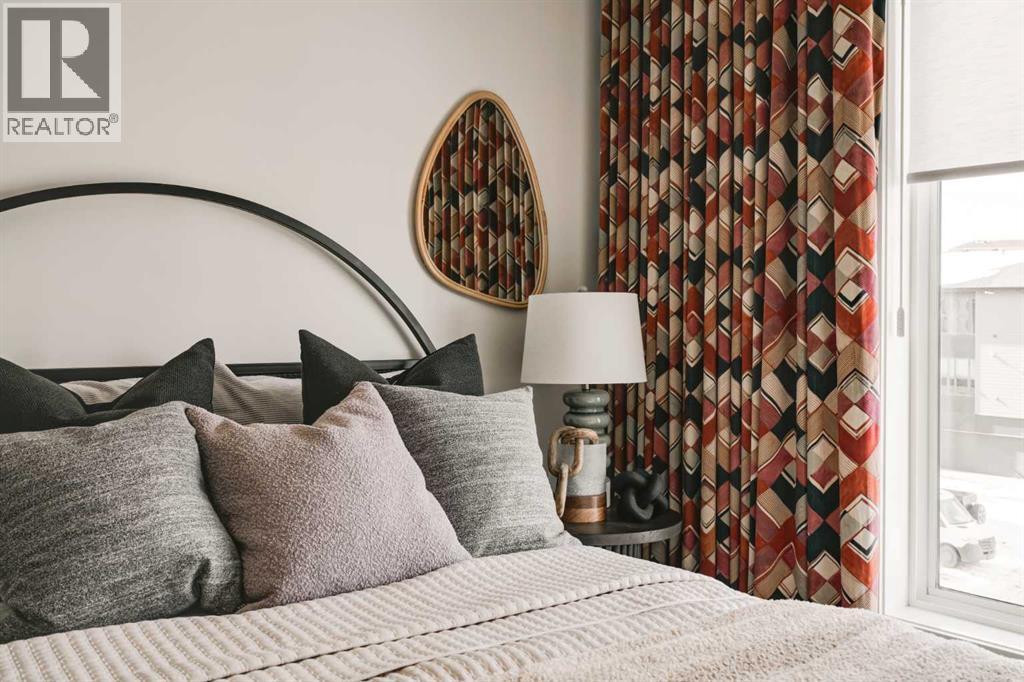 Limited-Time Promotion: Pick 2 of 3 – FREE A/C, 2 YEARS of FREE Condo Fees, or $7,500 Toward Options! Welcome to Rhythm townhomes at Taza Park by Brookfield Residential, offering a low-maintenance lifestyle perfect for first-time buyers, downsizers, or those seeking a convenient lock-and-leave home. This bright and modern ‘Arnica’ model features an intelligently designed open-concept layout with 2 bedrooms, 2.5 bathrooms, a main-level den/flex room, and a single attached garage, providing over 1,500 sq. ft. of beautifully appointed living space, plus a large rooftop patio. The main living level is filled with natural light from oversized windows and offers a seamless layout ideal for both everyday living and entertaining. The upgraded kitchen features full-height cabinetry, stainless steel appliances (including a range hood and built-in microwave), a French-door refrigerator, a large peninsula with seating, and a corner pantry. The kitchen flows into the dining area and spacious living room, with direct access to a private balcony. A convenient 2-piece powder room completes this level. Upstairs, you’ll find dual primary bedrooms, each with generous closet space and private ensuites, an ideal setup for guests, roommates, or added flexibility. A centrally located laundry area adds everyday convenience. The entry level features a versatile den/flex space, perfect for a home office, media room, or play area. The single attached garage provides secure parking along with additional storage. Additional highlights include upgraded spindle railings, a natural gas BBQ line, and a 3-year extended workmanship warranty for added peace of mind. Legal fees are included, and a complimentary Virtuo move-in concierge service ensures a smooth transition. Ideally located just minutes from Weaselhead Park, the Glenmore Reservoir, and major commuter routes, Rhythm at Taza Park offers the perfect blend of nature and urban convenience. This is a rare opportunity to own a brand-new contempo rary townhome in a highly desirable location, book your showing today. **Please note: Photos are of a show home and finishes may vary. (id:63190)
