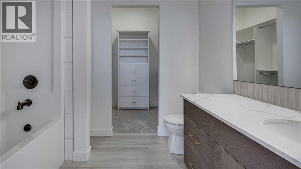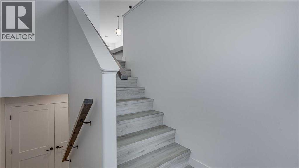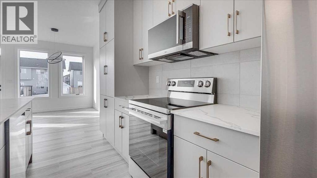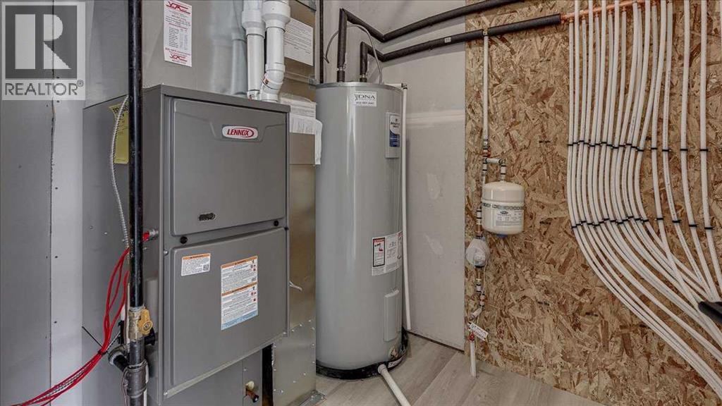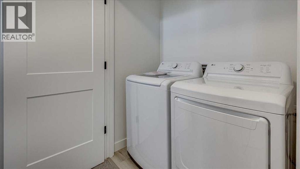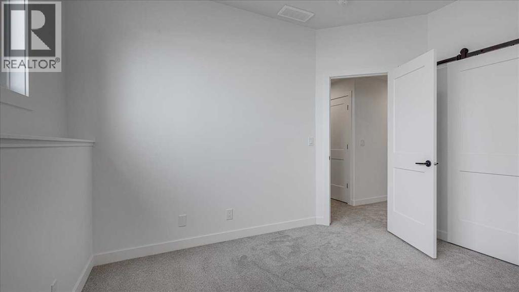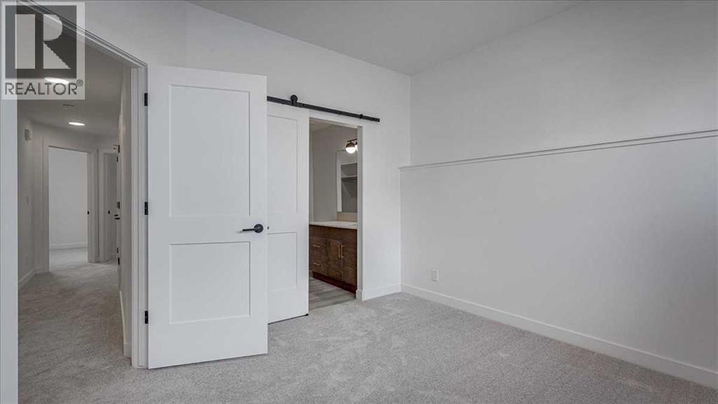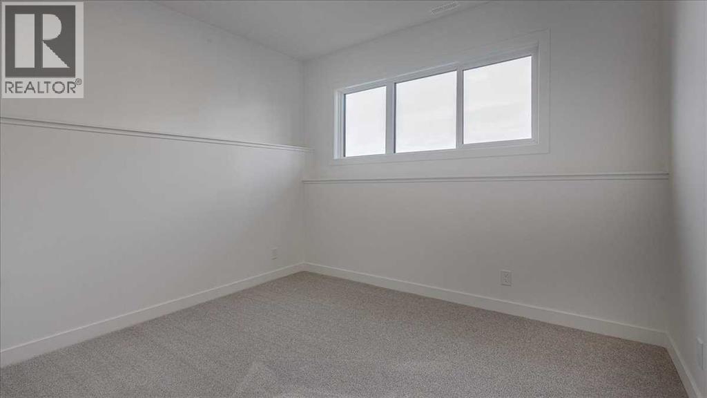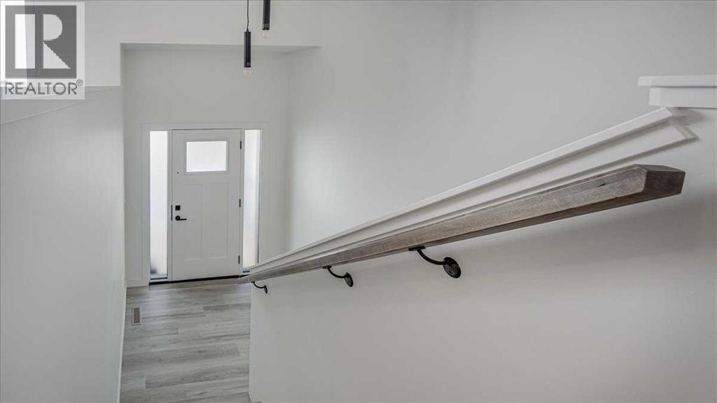 NO CONDO FEES & Great Location! This Brand new, stylish bi-level townhouse has 3 bdrms, 2.5 baths, with 4 appliances, conveniently located in Liberty Landing, close to Costco, restaurants + Highway 2 access. With lovely curb appeal, step into this bright home w/triple pane windows, up the stairs to this open floor plan that features a bright living room & dining room, with a chef's dream kitchen in the middle, with quartz countertops, stainless appliances & double door pantry. This huge island will become the centerpiece for family gatherings, favorite meals & deep conversations. Check out this mud room coming from your south facing backyard, that hides all your shoes & coats from your main area. There is also a convenient flex space outside this 1/2 bath area, perfect for a desk for working @ home, or dog crates or freezer...just imagine what you could use it for! On the lower level, you will find the primary bedroom master with a huge window w/barn door leading to your ensuite & walk in closet. 2 more good sized bdrms, full bath & laundry area fit also neatly on this level. There is also a spacious storage area under the stairs. Front yard will have sod, back yard will have top soil to grade + dividing fence done on the east & west property lines towards the parking area will be completed for you. This south facing backyard is where you will spend your summer evenings & 2 car off street parking off Paved back lane. This unique floor plan will impress with all the natural light & affordable price without being too small! GST included with rebate to builder. Interior pictures are of another unit with the exact floor plan and colors. Proposed possession is April 30/26 (id:63190)