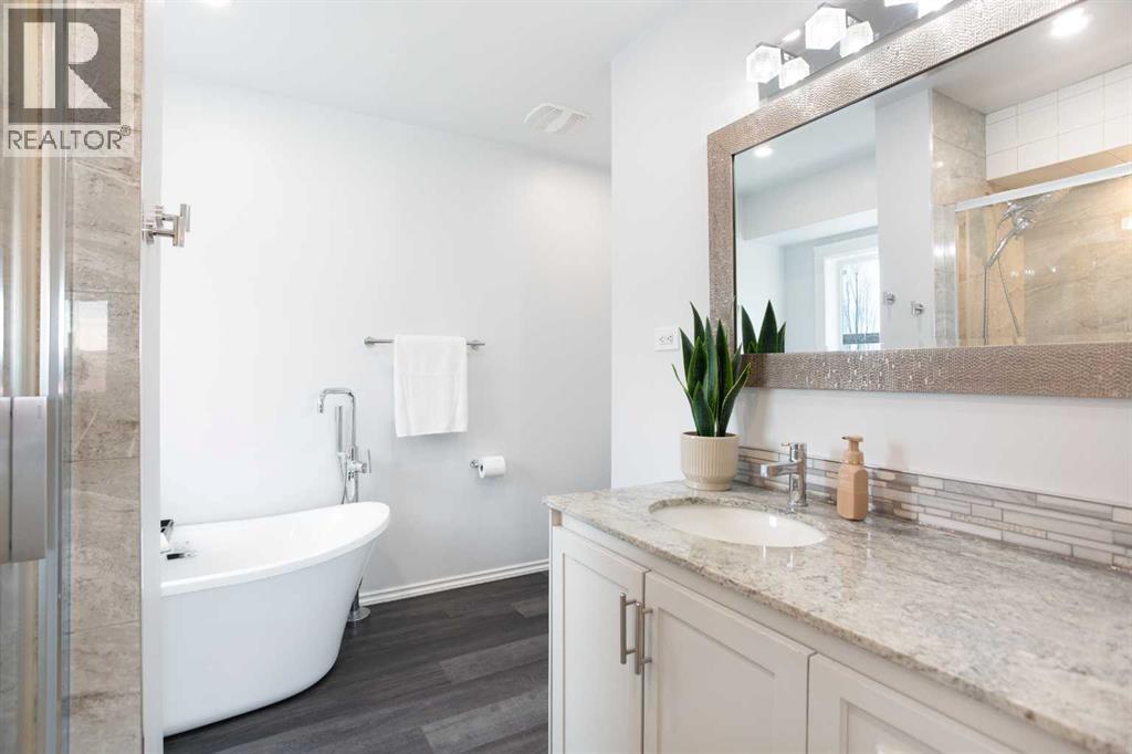 *** OPEN HOUSE SATURDAY APRIL 25TH: 2:00 PM - 4:00 PM *** Welcome home to this impeccably maintained, 2,785 SF two-storey residence in the desirable community of Thorburn. This impressive five-bedroom home greets you with a grand, welcoming foyer featuring dual closets before opening into a spacious and modern interior. The stunning open-concept main floor is anchored by warm vinyl plank flooring that flows seamlessly into an inviting, light-filled living room. Here, a cozy gas fireplace, elegantly flanked by custom built-in cabinets, serves as the perfect focal point for quiet evenings. The heart of the home is a true chef’s kitchen, boasting an abundance of cabinetry and counter space, a large center island with a breakfast bar, and a functional corner pantry. Adjacent to the kitchen, the generous dining room accommodates everything from intimate dinners to large gatherings, all while offering a lovely view of the private backyard. For added convenience, a stylish two-piece powder room is tucked discreetly around the corner on this level. The upper floor is designed for both relaxation and functionality, beginning with a massive bonus room illuminated by numerous windows. The serene primary retreat serves as a private oasis, featuring a spa-like five-piece ensuite complete with a granite vanity, a heated towel warmer, a soothing soaker tub, and a separate walk-in tiled shower. Two additional oversized bedrooms, a full four-piece bathroom, and a dedicated laundry space complete this level, ensuring the morning rush is a breeze for the whole family. The lower level expands your living space even further. This fully developed basement offers a massive recreation room perfect for movie nights or a home gym, along with two more large bedrooms and a modern three-piece bathroom, complete with another tiled shower. Whether you need space for guests, teenagers, or a home office, this level provides incredible versatility. Outside, your living area extends to a lovely rear deck overlooking a fully fenced backyard with established gardens, offering a peaceful escape for summer hosting. Parking is never an issue here; the property features an oversized, heated double attached garage, a spacious driveway wide enough to park 3 vehicles, and rear lane access to a dedicated parking pad—providing ample room for your boat and RV. A detached garage could be added into the backyard with City of Airdrie approval, as you can see from the neighbours on the block. Located on a quiet street just minutes from Genesis Place, Bert Church High School and East lake, scenic walking paths, and all essential amenities, this home offers the perfect balance of luxury and location. With its generous proportions and pristine condition, this property will not last long. Book your showing today to experience this Thorburn gem for yourself! (id:63190)