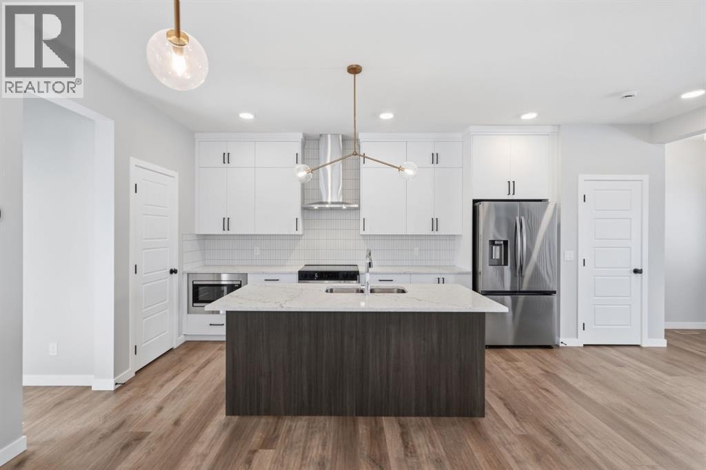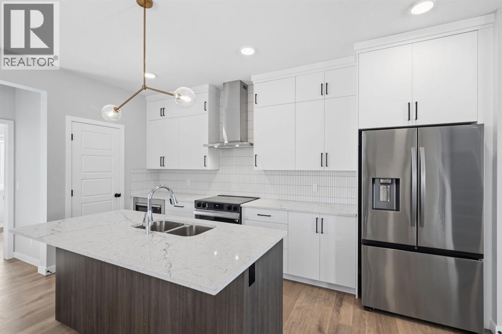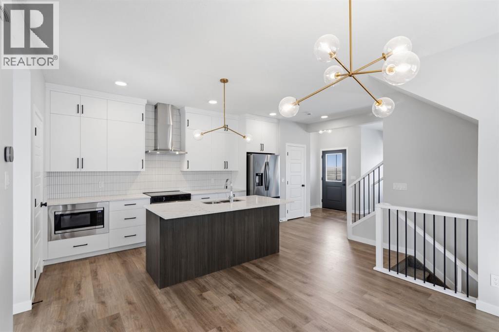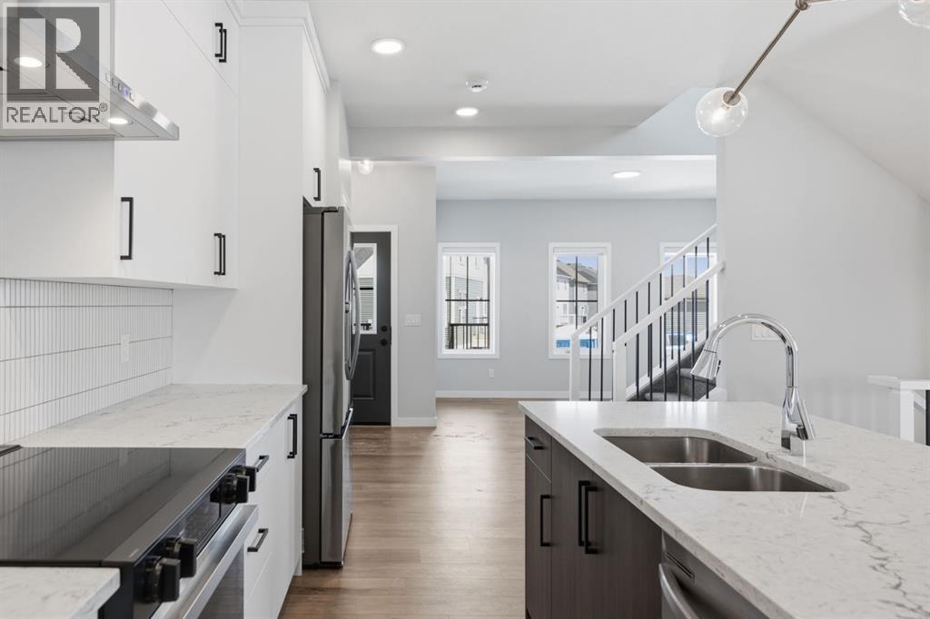 Welcome to The Castlecove, built by award-winning builder McKee Homes. A thoughtfully designed home that maximizes every square foot while delivering the bright, inviting atmosphere you'll love coming home to. From the moment you arrive, the generous front entry sets a welcoming tone—a home that balances style, comfort, and affordability without compromise. Step inside and you'll immediately appreciate the smart, functional layout that flows seamlessly from front to back. A versatile main-floor office/flex space is perfectly positioned for modern living—ideal for working from home, a kids' play zone, or a hobby and craft room. The main level opens into a bright, wide-open living area where large windows at both the front and rear let natural light pour in at every hour, creating a warm, calming environment you'll love to unwind in. At the heart of the home is a sleek galley-style kitchen designed for both everyday life and effortless entertaining. The large central island is perfect for gathering with friends, casual meals, or keeping conversation going while dinner is on the go. Finished with ceiling-height cabinetry, quartz countertops, a chimney hood fan, a built-in microwave, and an extra set of pot-and-pan drawers, this kitchen delivers standout style alongside the practical storage you actually need. A dedicated gas line for your BBQ at the rear of the home makes it easy to take your cooking outside as well. Just off the back entry, a dedicated mudroom keeps daily clutter organized and out of sight—making busy mornings smoother and family life more manageable. Upstairs, the thoughtful design continues. A conveniently located upper-floor laundry room keeps things tidy and out of the way. The primary suite is a true retreat, featuring a generous walk-in closet and a well-appointed ensuite complete with a standing shower, toilet and a sink. Out back, a rear deck provides the perfect spot to relax and entertain, while a concrete parking pa d is already in place for future garage development—adding flexibility and long-term value as your needs evolve. Bright, functional, and thoughtfully upgraded, The Castlecove is a home that proves affordability and great design go hand in hand. Don't miss your opportunity to own this exceptional property. Book your private showing today. (id:63190)