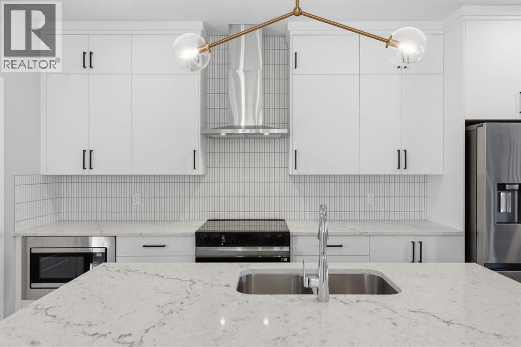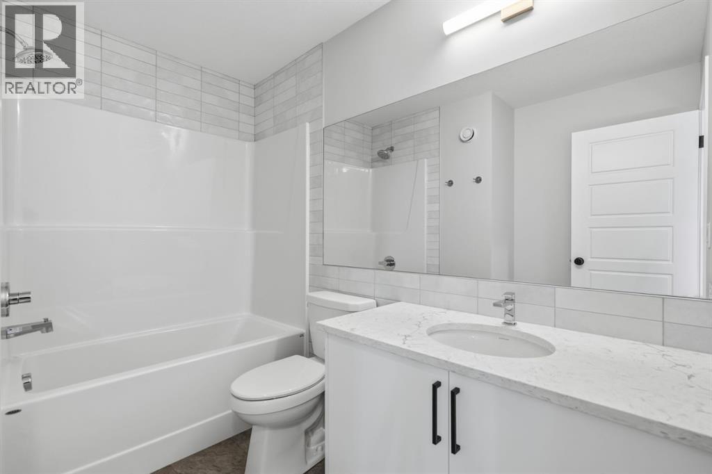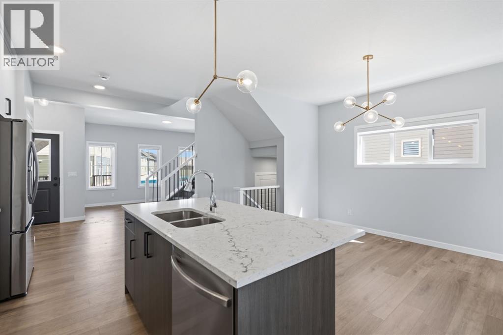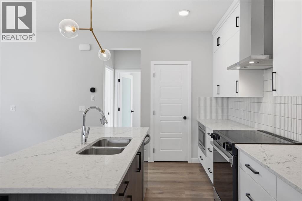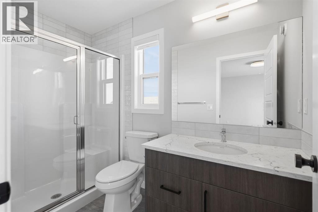 Welcome to The Castlecove, built by award-winning builder McKee Homes. A thoughtfully designed home that maximizes every square foot while delivering the bright, inviting atmosphere you'll love coming home to. From the moment you arrive, the generous front entry sets a welcoming tone—a home that balances style, comfort, and affordability without compromise. Step inside and you'll immediately appreciate the smart, functional layout that flows seamlessly from front to back. A versatile main-floor office/flex space is perfectly positioned for modern living—ideal for working from home, a kids' play zone, or a hobby and craft room. The main level opens into a bright, wide-open living area where large windows at both the front and rear let natural light pour in at every hour, creating a warm, calming environment you'll love to unwind in. At the heart of the home is a sleek galley-style kitchen designed for both everyday life and effortless entertaining. The large central island is perfect for gathering with friends, casual meals, or keeping conversation going while dinner is on the go. Finished with ceiling-height cabinetry, quartz countertops, a chimney hood fan, a built-in microwave, and an extra set of pot-and-pan drawers, this kitchen delivers standout style alongside the practical storage you actually need. A dedicated gas line for your BBQ at the rear of the home makes it easy to take your cooking outside as well. Just off the back entry, a dedicated mudroom keeps daily clutter organized and out of sight—making busy mornings smoother and family life more manageable. Upstairs, the thoughtful design continues. A conveniently located upper-floor laundry room keeps things tidy and out of the way. The primary suite is a true retreat, featuring a generous walk-in closet and a well-appointed ensuite complete with a standing shower, toilet and a sink. Out back, a rear deck provides the perfect spot to relax and entertain, while a concrete parking pa d is already in place for future garage development—adding flexibility and long-term value as your needs evolve. Bright, functional, and thoughtfully upgraded, The Castlecove is a home that proves affordability and great design go hand in hand. Don't miss your opportunity to own this exceptional property. Book your private showing today. (id:63190)