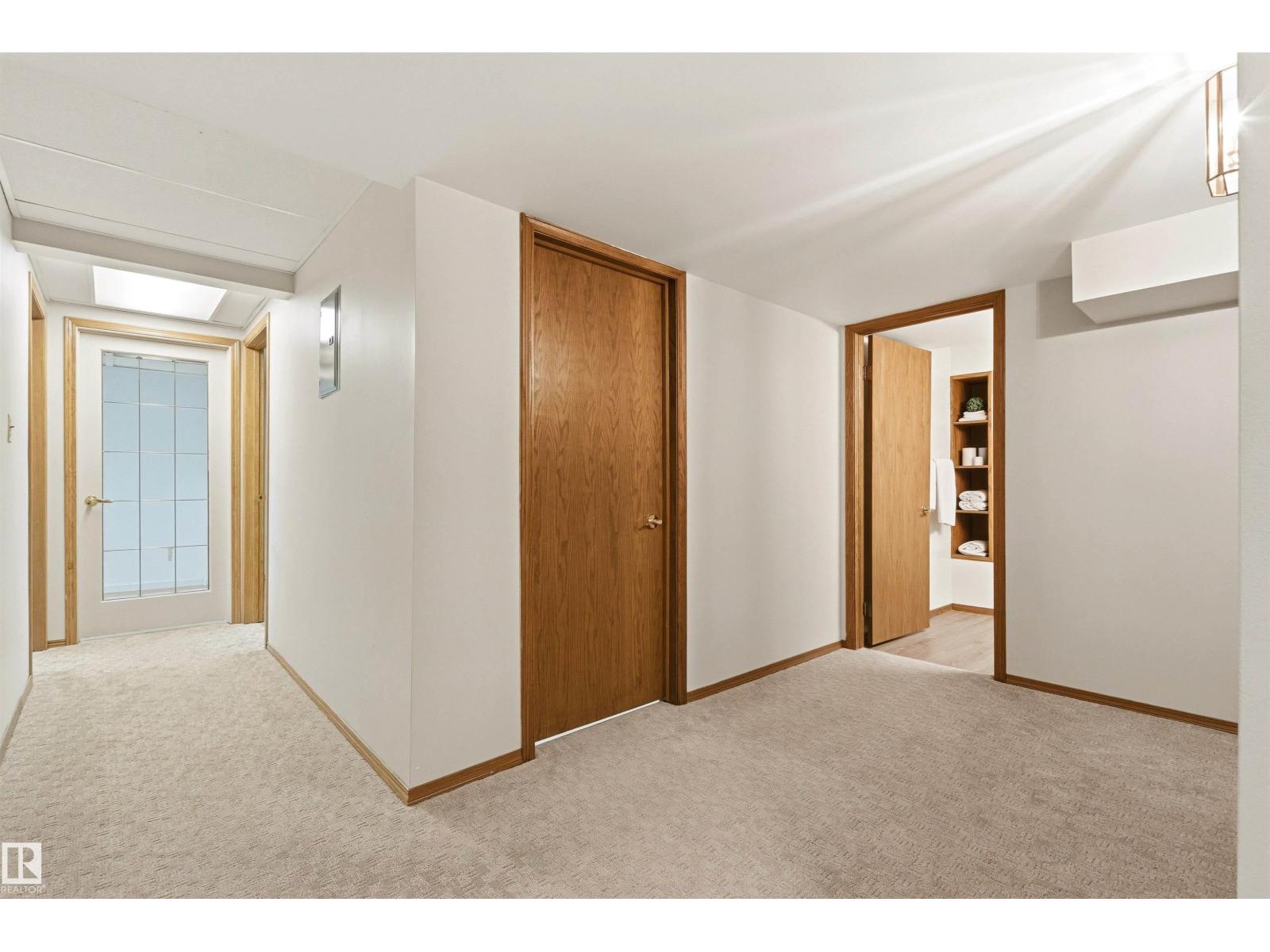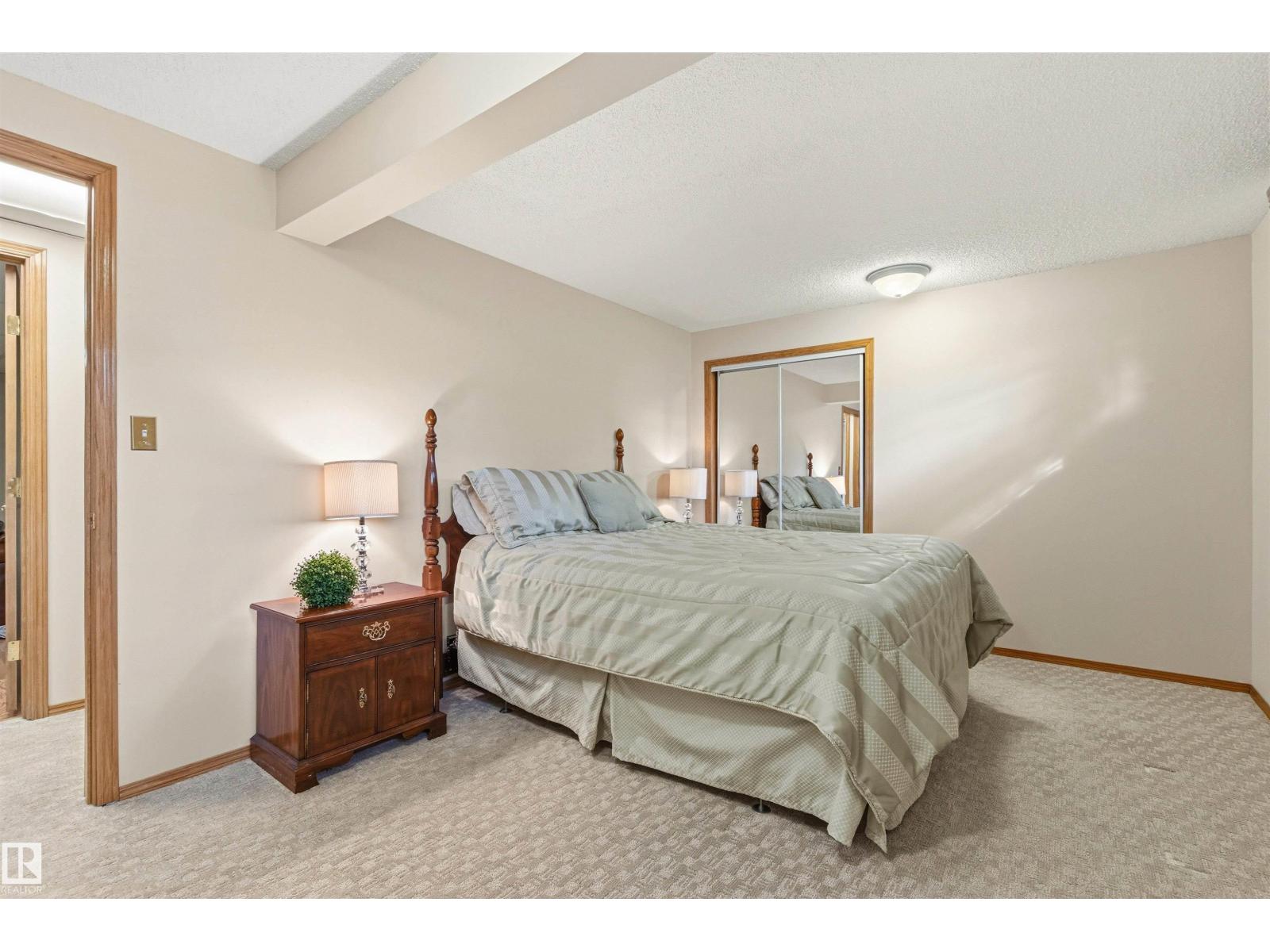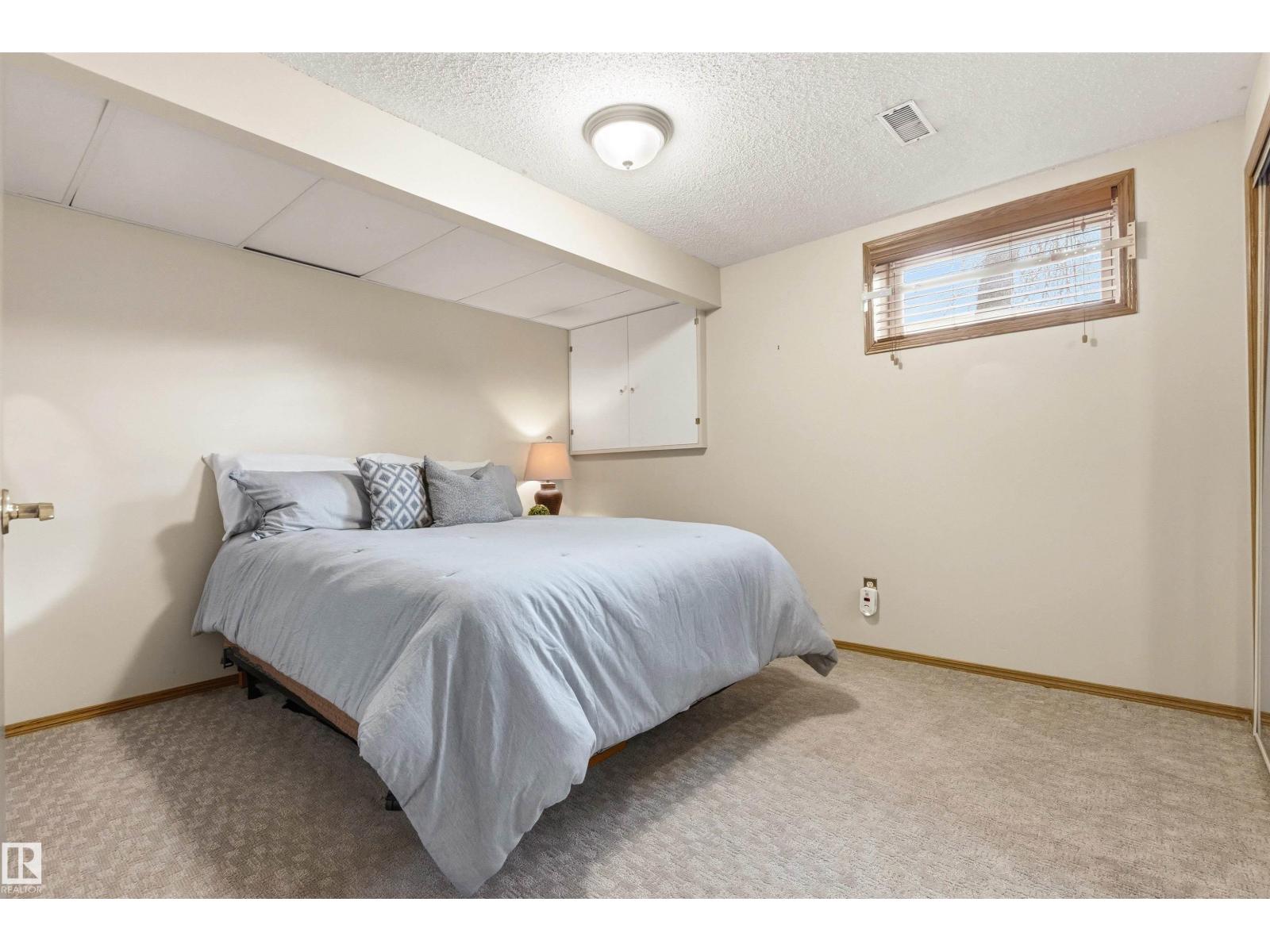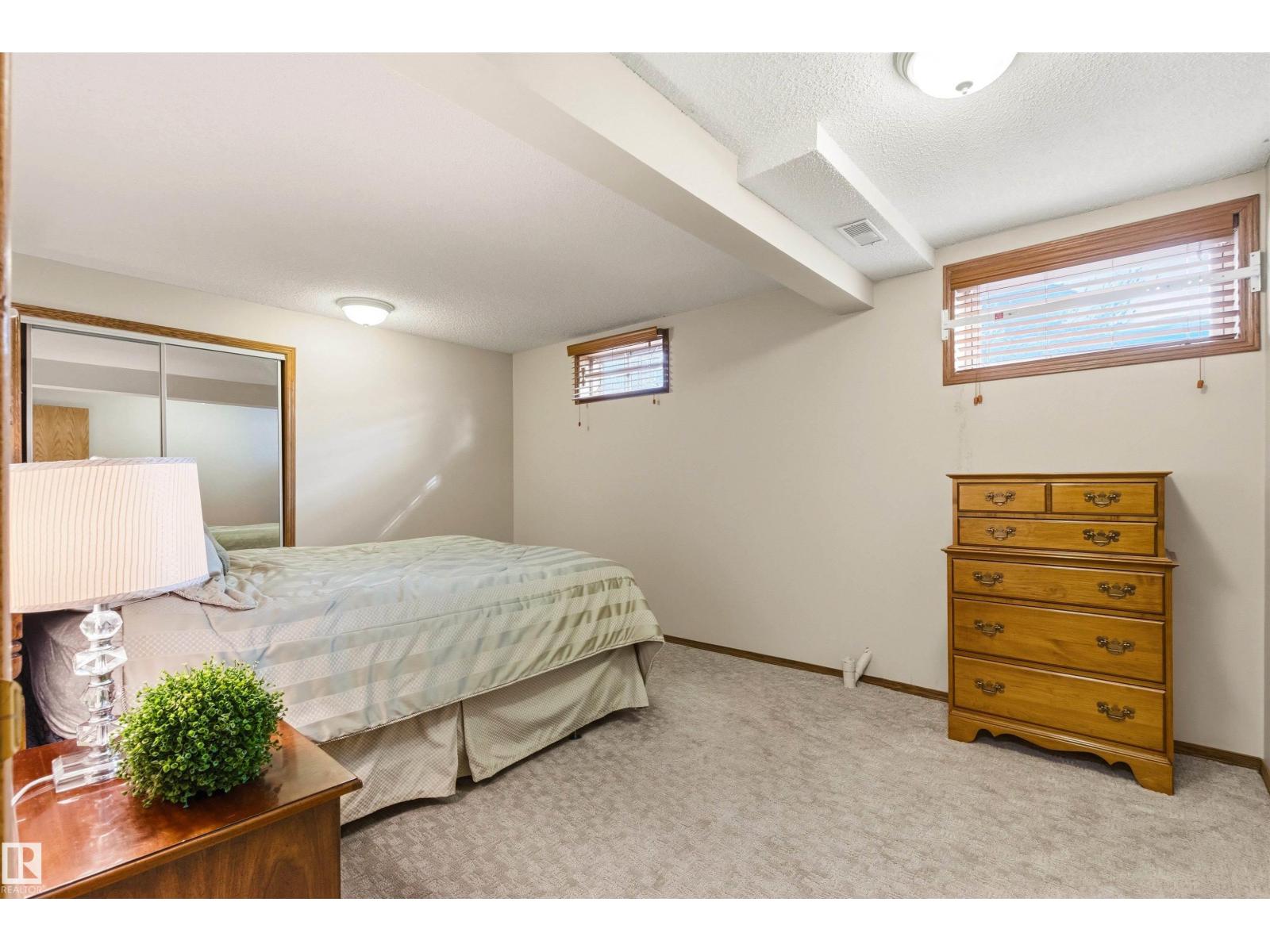So much to appreciate in this half duplex bungalow in the desirable Ironwood Place. Located just off the golf course & Derrick Club & situated on a large sunny pie shape lot with southern exposure, backing onto the park. Inside the home you will appreciate some of the more recent renovations including a remodeled and updated kitchen as well as flooring, paint, fixtures & more. The main level features a large formal sitting room with cozy fireplace, deluxe kitchen, and dining and lounge area that lead to the large back patio. A huge primary bedroom with ample ensuite and walk in closet, another bedroom (but likely used as a den) full bathroom and laundry (hook ups present) complete the main level. The fully finished basement offers 3 more bedrooms, another full bathroom, rec room, storage room and large utility room. Other recent improvements include a new roof in 2020, gutters in 2023, exterior painted in 2025, new AC 2021 or 2022. HOA fee of 175 a month that includes snow removal and lawn maintenance. (id:63190)