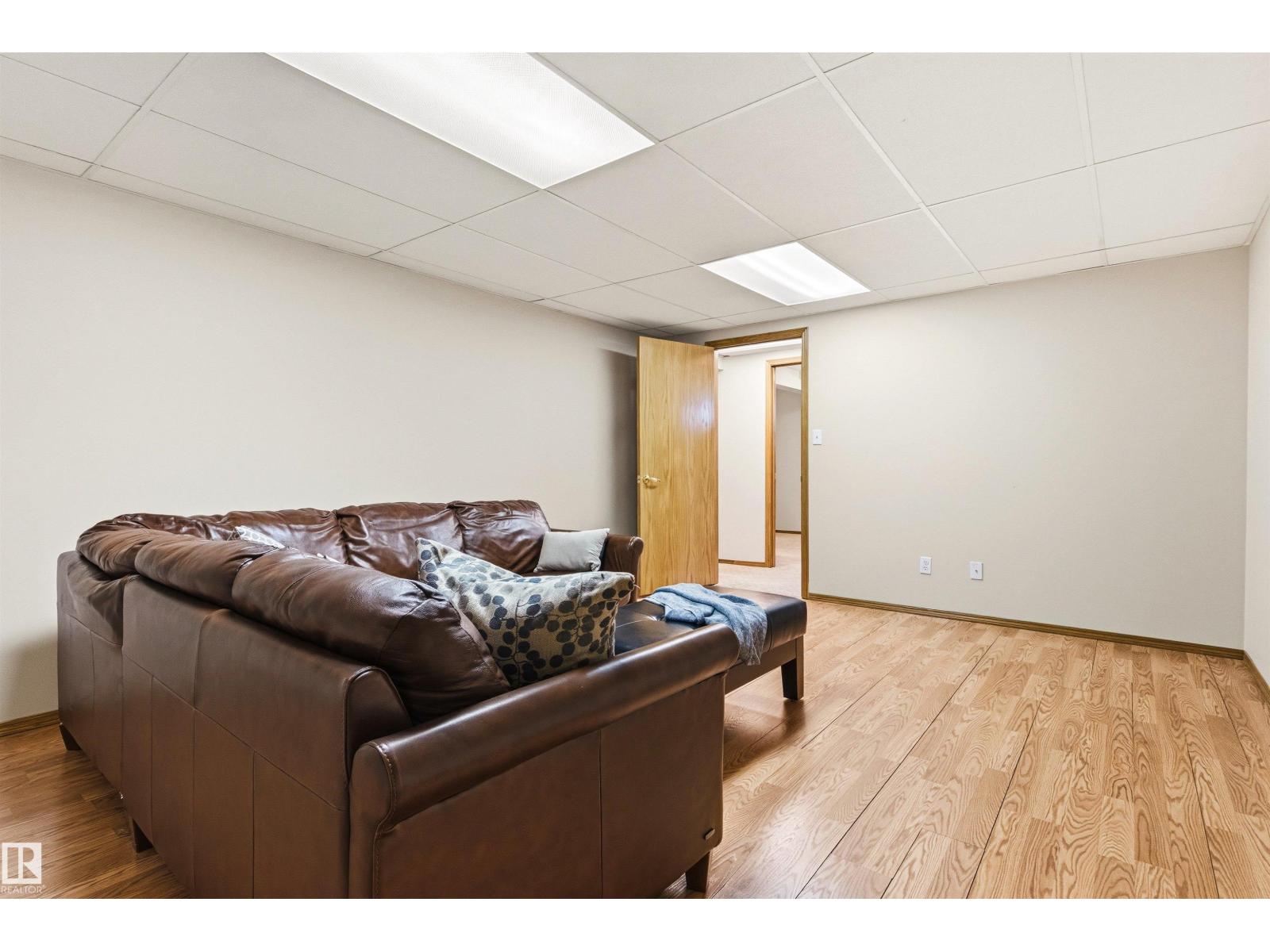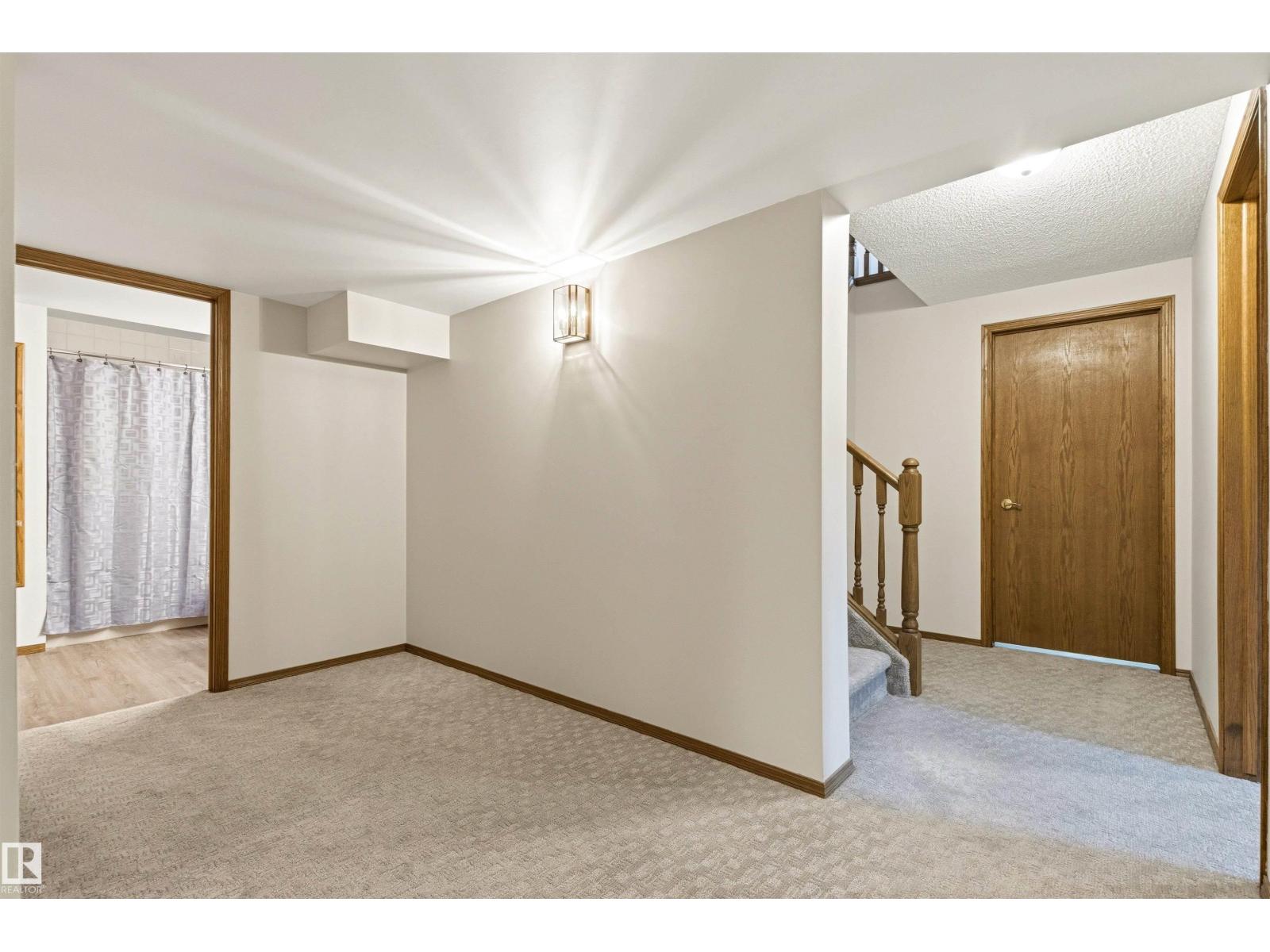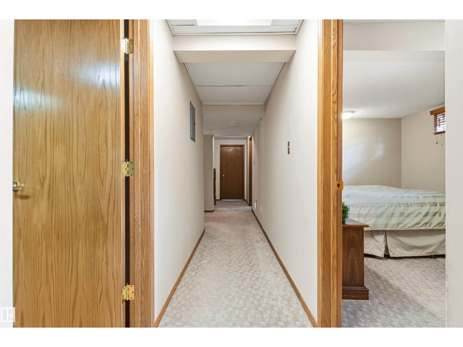 So much to appreciate in this half duplex bungalow in the desirable Ironwood Place. Located just off the golf course & Derrick Club & situated on a large sunny pie shape lot with southern exposure, backing onto the park. Inside the home you will appreciate some of the more recent renovations including a remodeled and updated kitchen as well as flooring, paint, fixtures & more. The main level features a large formal sitting room with cozy fireplace, deluxe kitchen, and dining and lounge area that lead to the large back patio. A huge primary bedroom with ample ensuite and walk in closet, another bedroom (but likely used as a den) full bathroom and laundry (hook ups present) complete the main level. The fully finished basement offers 3 more bedrooms, another full bathroom, rec room, storage room and large utility room. Other recent improvements include a new roof in 2020, gutters in 2023, exterior painted in 2025, new AC 2021 or 2022. HOA fee of 175 a month that includes snow removal and lawn maintenance. (id:63190)