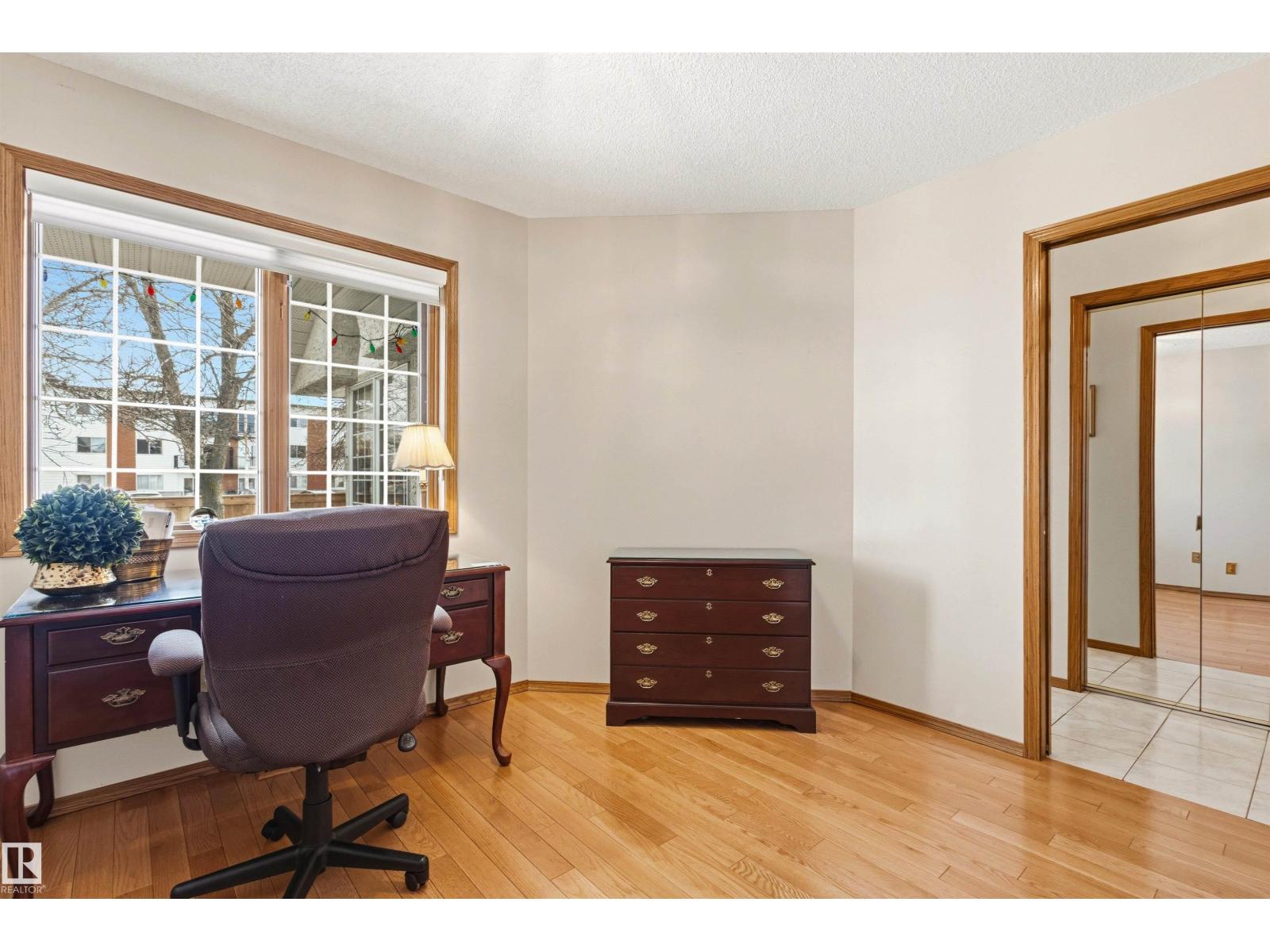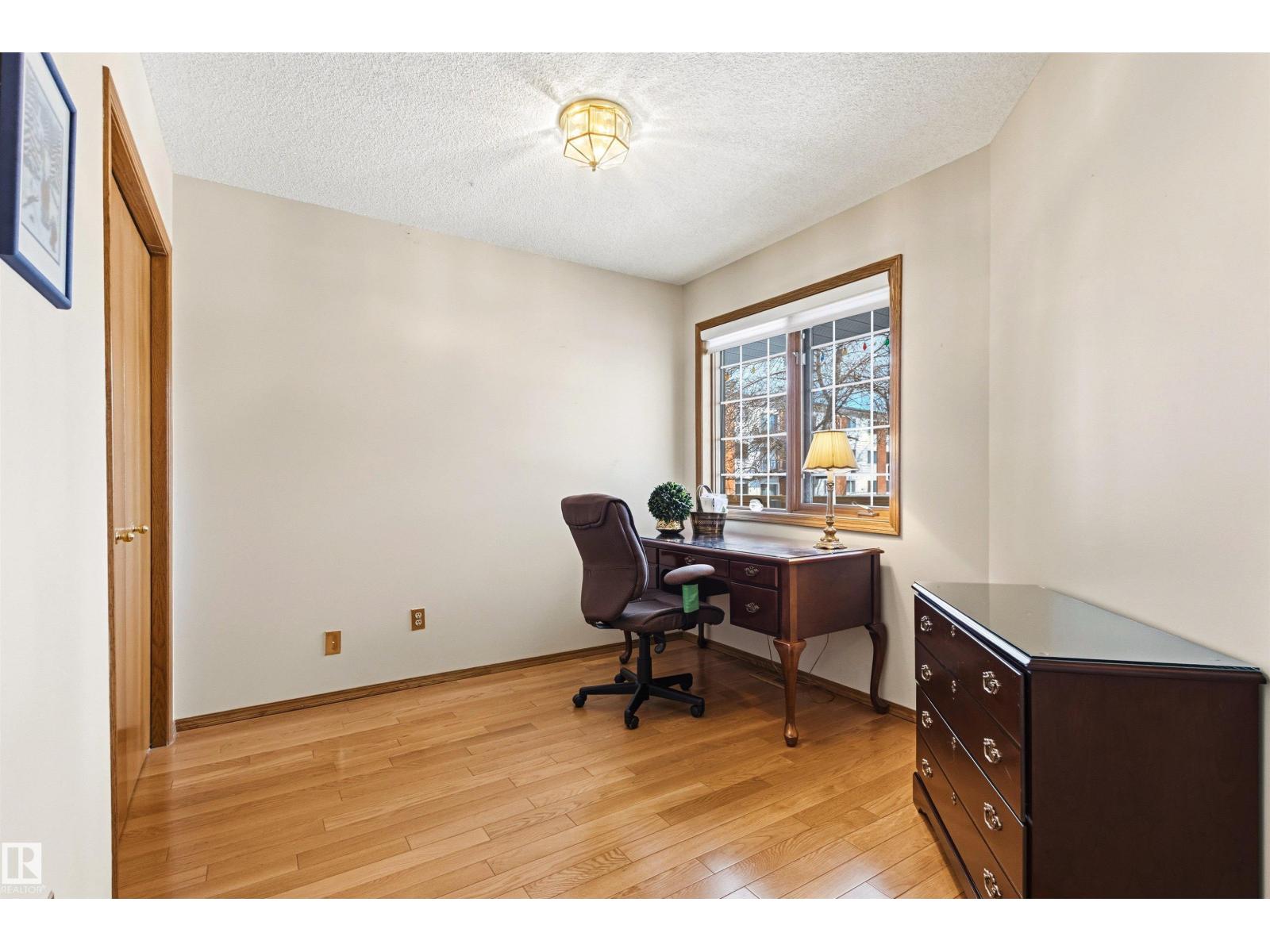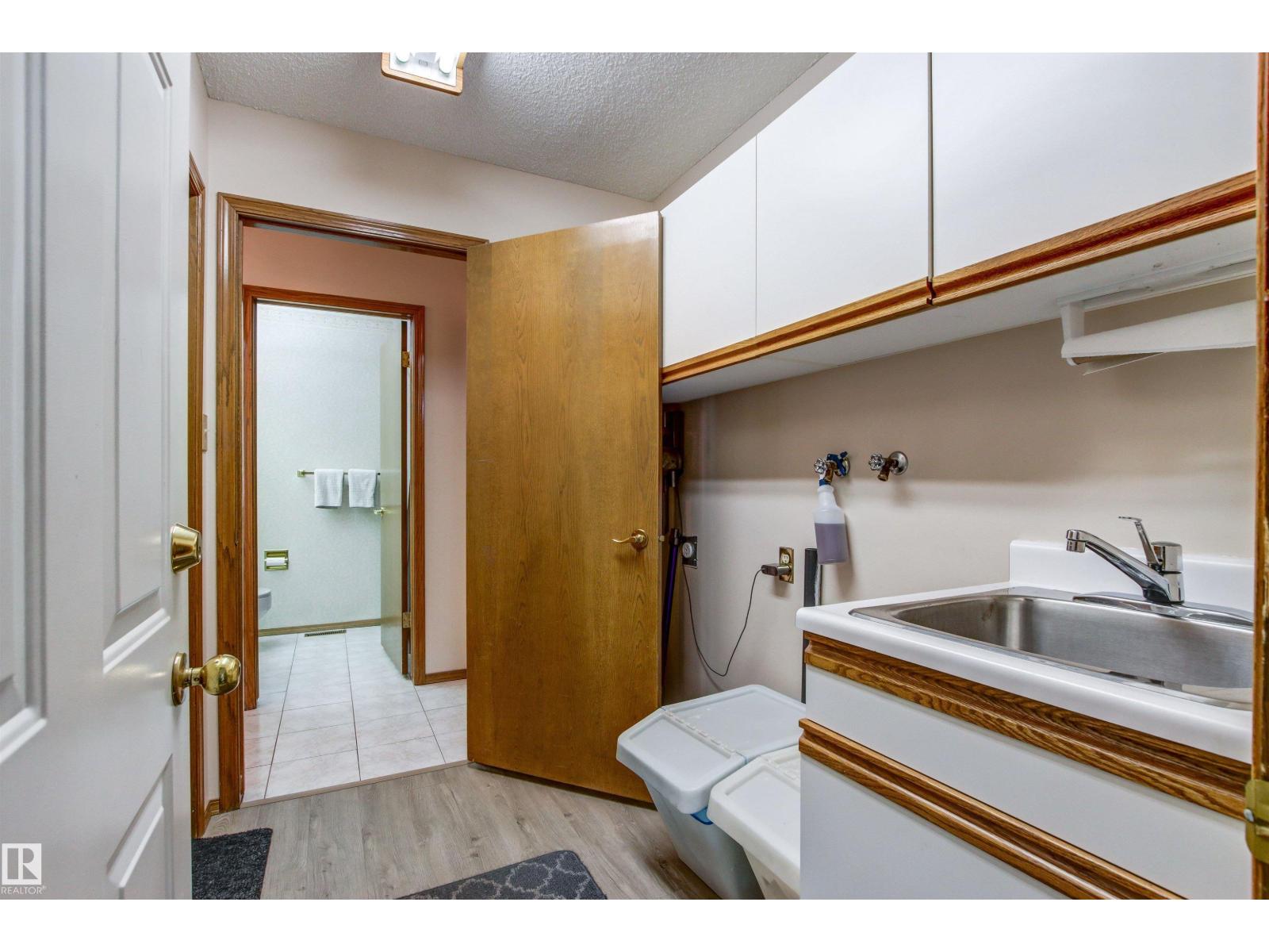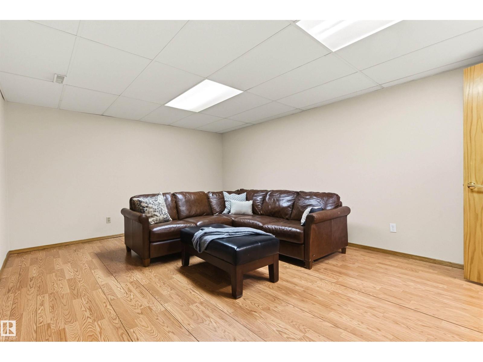 So much to appreciate in this half duplex bungalow in the desirable Ironwood Place. Located just off the golf course & Derrick Club & situated on a large sunny pie shape lot with southern exposure, backing onto the park. Inside the home you will appreciate some of the more recent renovations including a remodeled and updated kitchen as well as flooring, paint, fixtures & more. The main level features a large formal sitting room with cozy fireplace, deluxe kitchen, and dining and lounge area that lead to the large back patio. A huge primary bedroom with ample ensuite and walk in closet, another bedroom (but likely used as a den) full bathroom and laundry (hook ups present) complete the main level. The fully finished basement offers 3 more bedrooms, another full bathroom, rec room, storage room and large utility room. Other recent improvements include a new roof in 2020, gutters in 2023, exterior painted in 2025, new AC 2021 or 2022. HOA fee of 175 a month that includes snow removal and lawn maintenance. (id:63190)