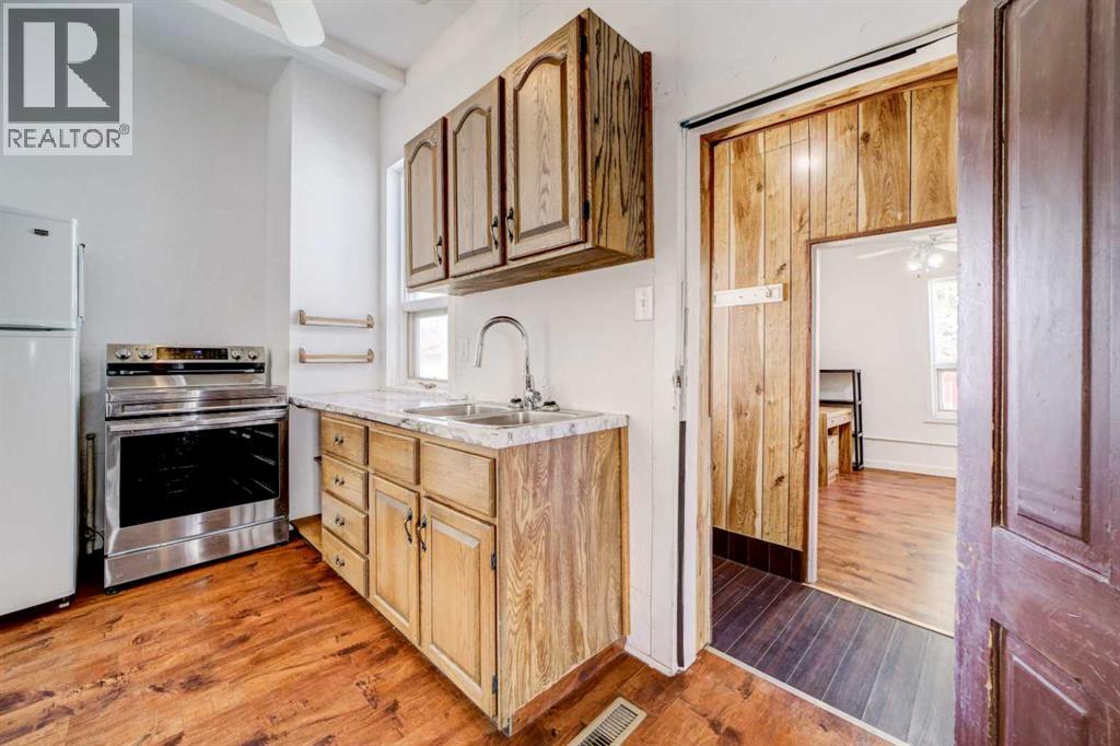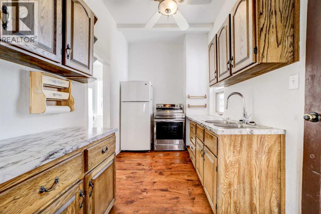 Built in 1930, this character home feels warm the moment you step inside. The home is modest in size, with two cozy bedrooms, a single bathroom, and a large living room that welcomes you with tall baseboards and high ceilings. Tons of natural light bathes the entire main floor from every angle. The kitchen comes with lots of counter space for cooking, plus a small dining nook for quiet mornings. This home has many unique touches, with an extra space off the kitchen (not heated) to use as a workshop, art studio, etc. This property is the perfect option for first time buyers at an affordable price, or those looking to try their hand at "restoring" a vintage property. With off-street parking, a fully fenced yard, and large back patio, the potential is endless at 1052 Bev McLachlin Drive. Book your visit today to have a look and let your imagination walk you through the property. (id:63190)
