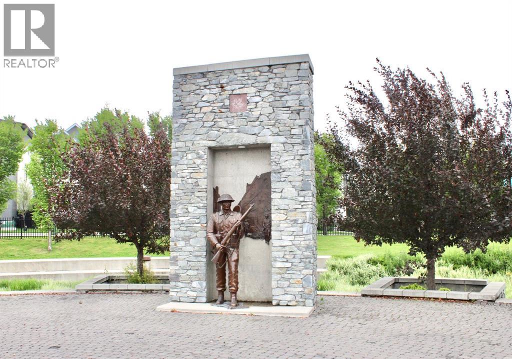 PREMIUM Top-Floor Living with 12FT Ceilings in the Urban Sanctuary of Currie Barracks! Nestled amongst Million-Dollar Homes these 4th Floor Condo’s are designed for the distinguished buyer. This Top Floor ONE Bedroom+ DEN (FLEX RM) -1 Bath Configuration are RARELY offered. Generous West Natural Light that stands out for this condo while Neutral & Modern toned Luxury Vinyl Plank floors combined with BEAUTIFUL European-Inspired Kitchen, the throughout are TOP NOTCH & Well maintained with Gorgeous Quartz Countertops, two-toned cabinetry, new LED lighting & HEX backsplash all tastefully combine for a Luxurious feel. Sleek Appliance package includes Fisher-Paykel fridge with Gas Stove too! Pull up to the eating bar or room enough for a small table, as desired. Main Living area enjoys the Exclusive 12 FT Ceilings only found on the top-floor! Large nearly 12 x 12 living room with New FAN/remote with ample space enough for relaxation. Enjoy watching Calgarys always-changing WESTERLY weather systems from your BRIGHT OPEN Balcony/deck. Luxe Carpeted Master Bedroom with Walk-thru closet to cheater 4pce Ensuite. Stackable in-suite Laundry and extra storage as well. 2nd Bedroom/Flex/Den with new LED lighting fixture, nearly 9 x 9FT to be used as desired. Extra Pantry storage recently added off-kitchen. Fantastic & Well-maintained Common Areas interior/exterior. throughout the grounds for the furry friends in this pet-friendly complex. Recently painted COMMON AREAS, Regular Bldg maintenance includes Window cleaning, Plumbing, Parkade Cleaning, Secured Titled Underground heated Parking stall with ample visitor parking (guests can be buzzed in) with lockable storage cage. Bike Room Storage, Car wash for residents and coin-op soap dispenser. Quick access to downtown, MRU, minutes to Amenities of Garrison Woods, neighbourhood restaurants/pubs, Glenmore Trail, Stoney Trail, or great investment for the University Students. Eclectic mix of residents, young professionals, establishe d folks for this Premium condo complex! (id:63190)