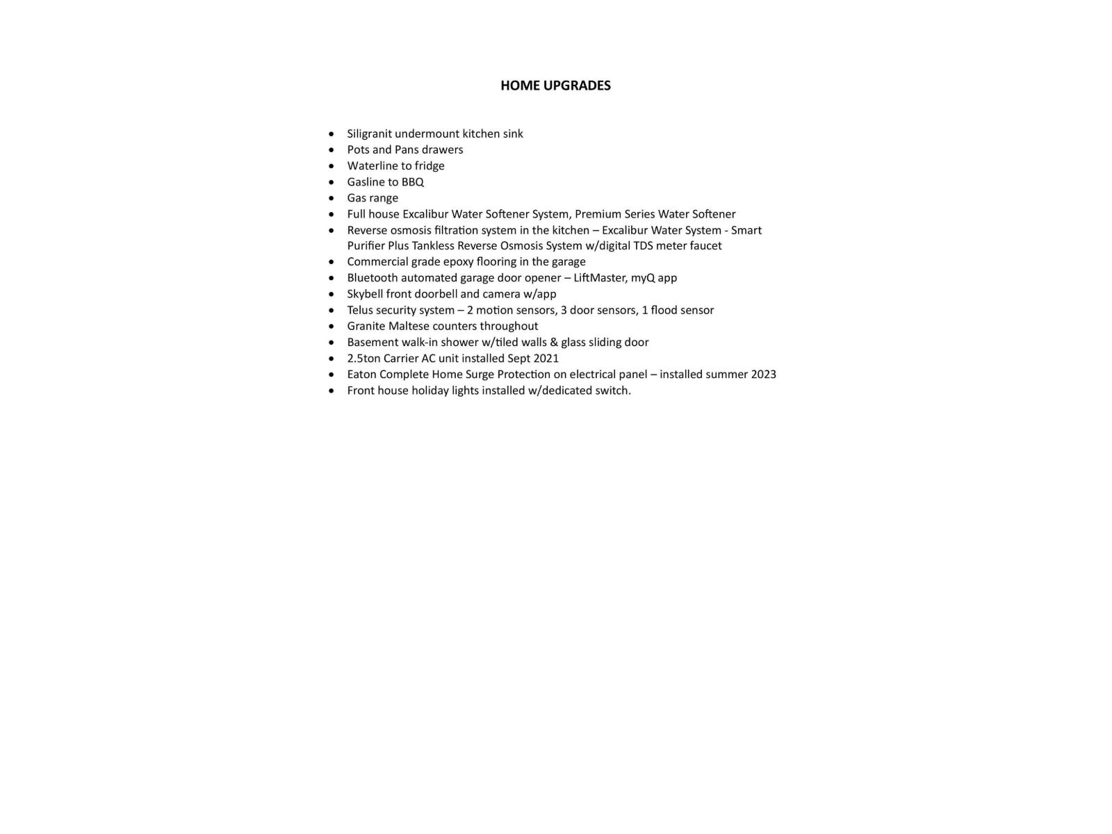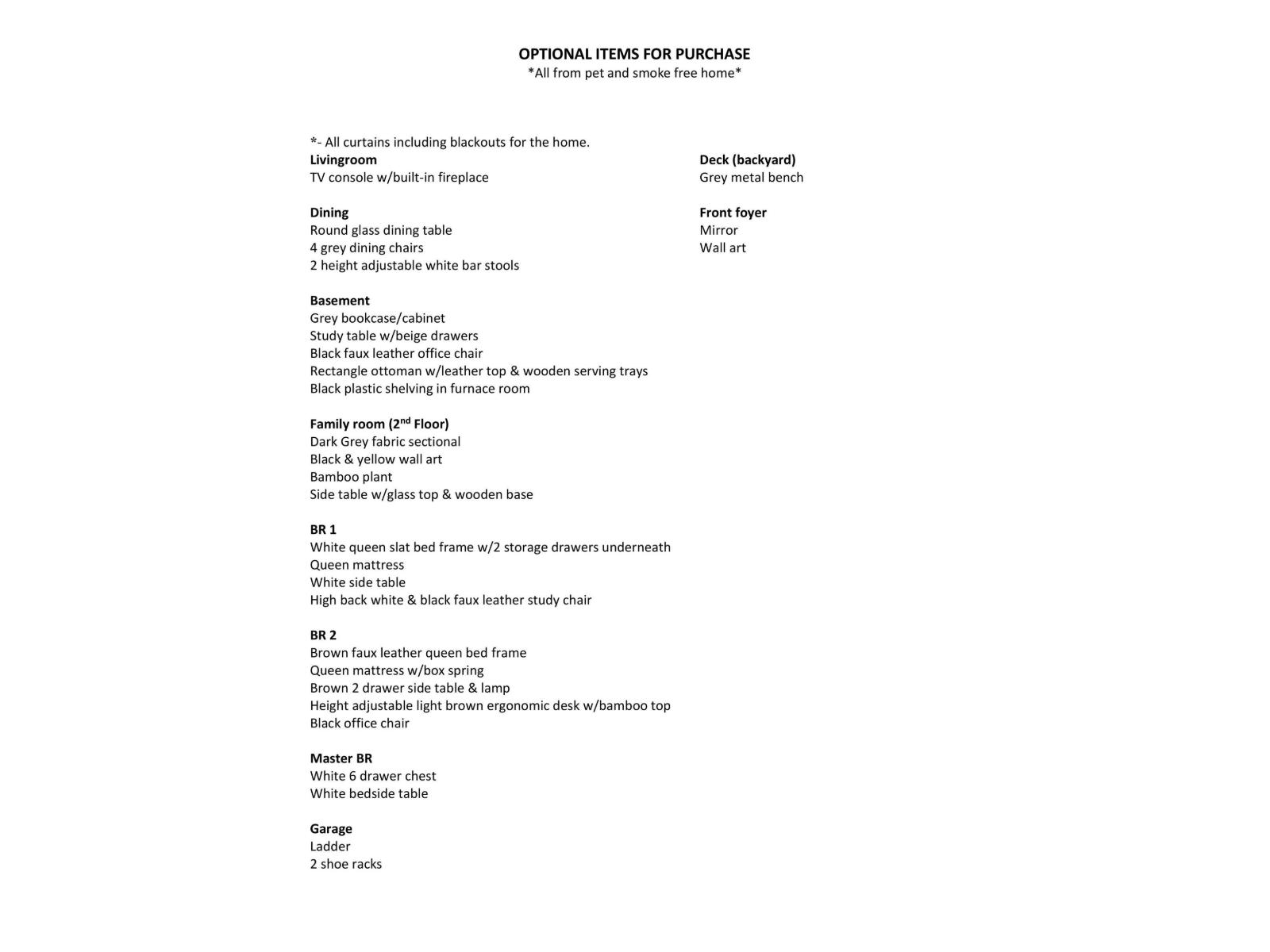 WasherRefrigeratorWater softenerDishwasherStoveDryerMicrowaveAlarm SystemHumidifierHood FanWindow CoveringsGarage door opener remote(s)
