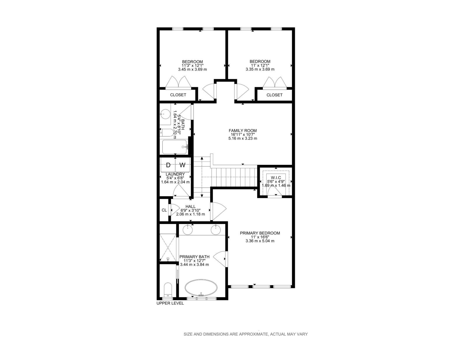 | Primary Bedroom | Upper Level | 5.4 x 3.4 | — |