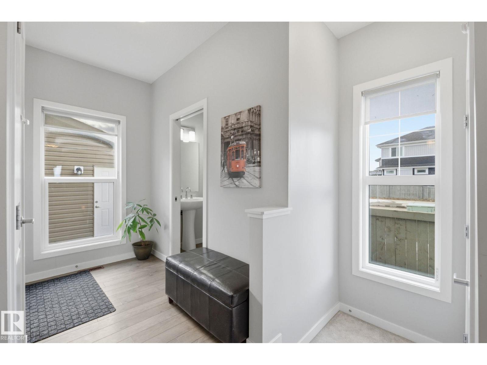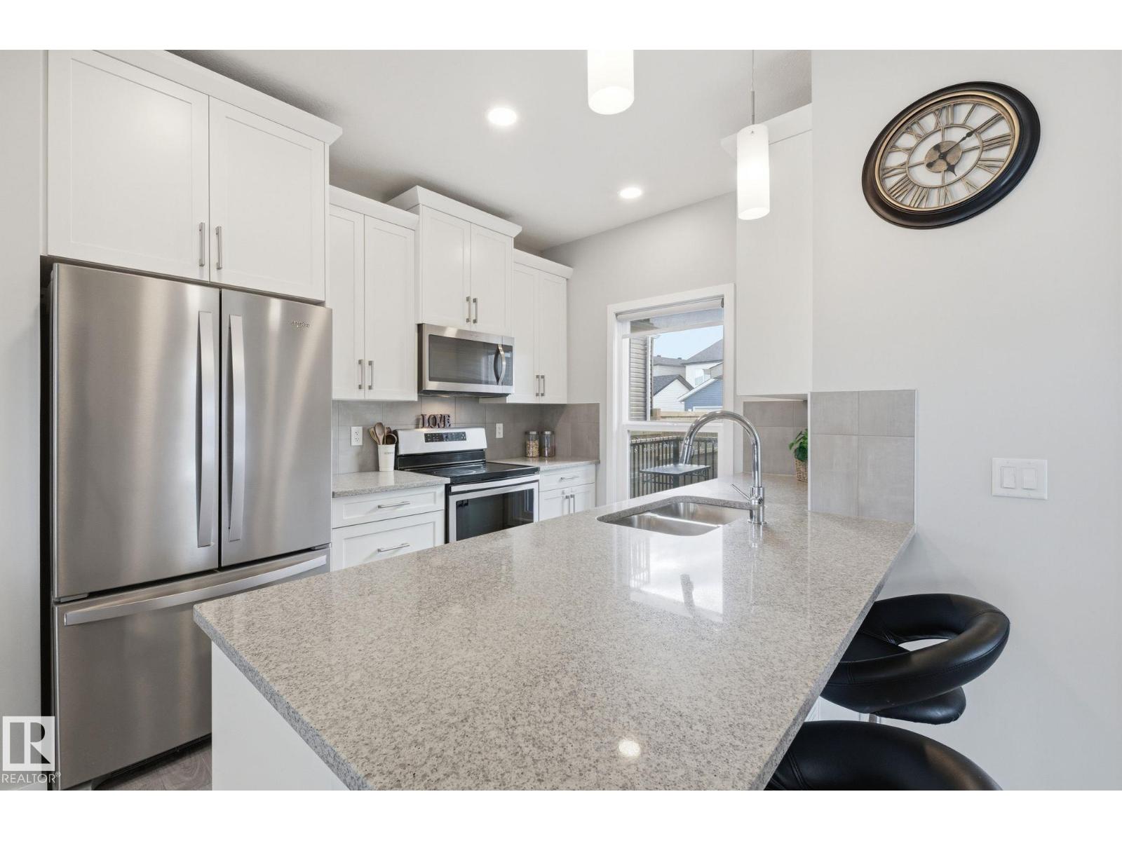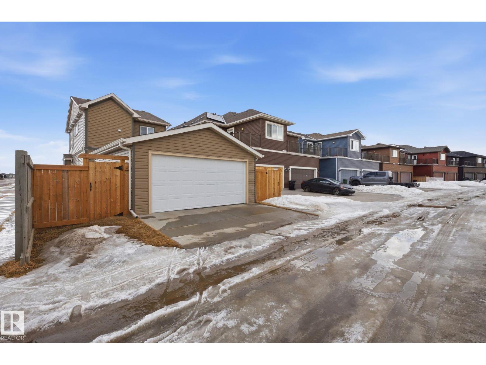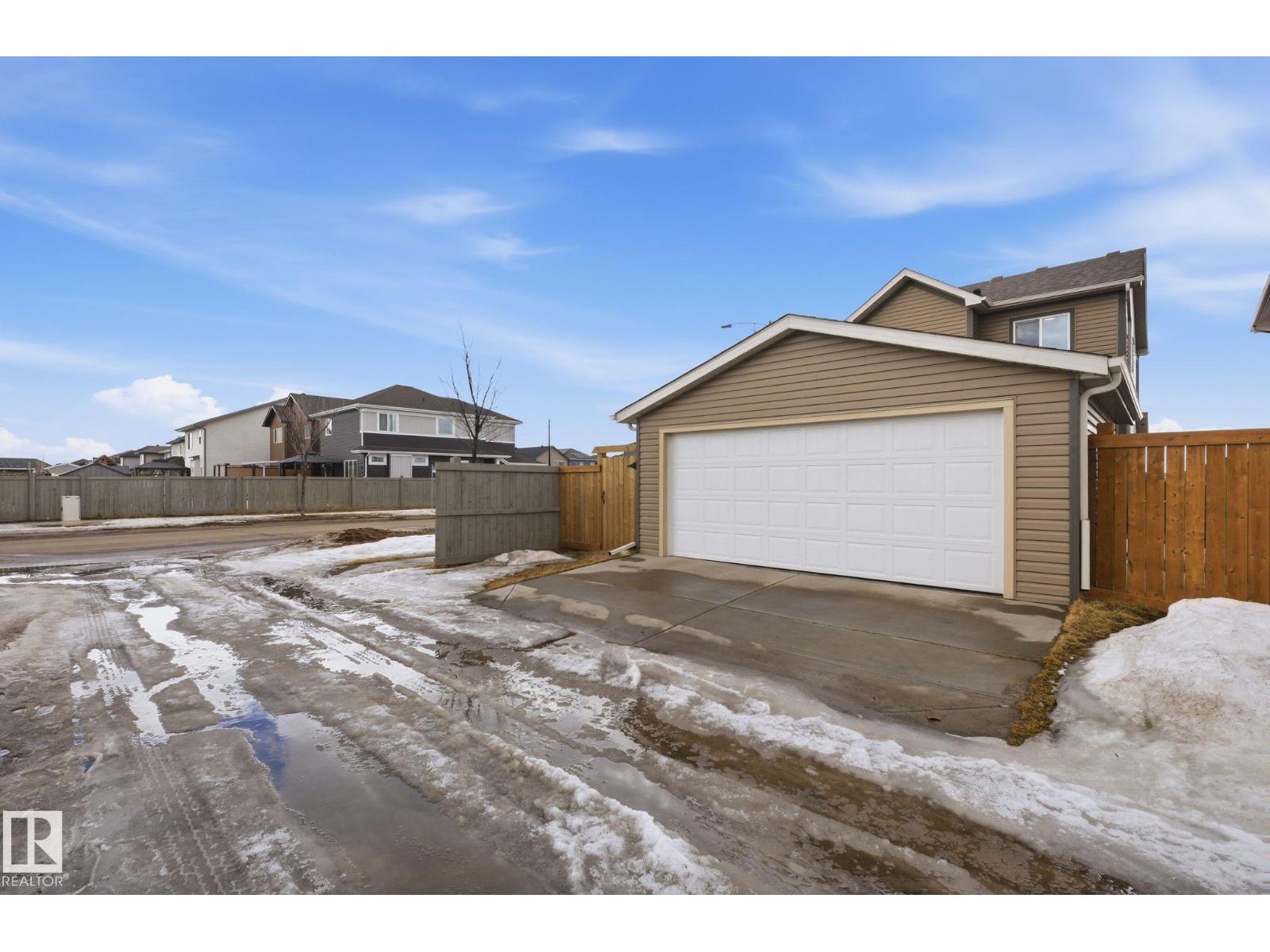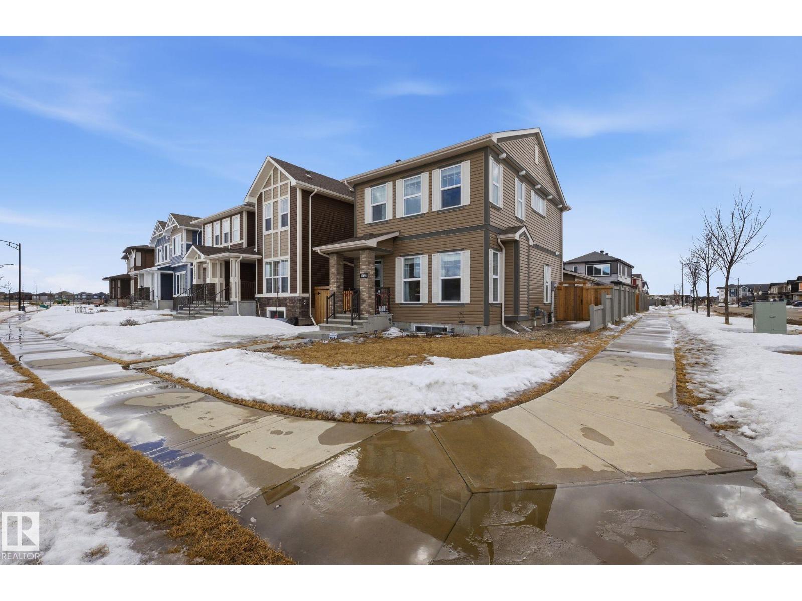 Welcome to Crystallina, a growing North Edmonton community. Situated on a rare non-zero lot line corner lot and the only single detached home on the lane, this property offers added space, privacy, and standout curb appeal. This 3-bedroom, 2.5-bathroom home features bright open-concept main floor with large windows that fill the home with natural light, creating a warm and inviting atmosphere. The kitchen is both functional and stylish, complete with granite countertops, ample cabinetry, and generous prep space. Upstairs offers three well-sized bedrooms, along with two full bathrooms, while a convenient main-floor half bath adds everyday functionality. Stay comfortable year-round with central air conditioning. Enjoy the benefits of a corner lot with extra yard space, plus a unique setting as the only detached home on the lane, offering added privacy compared to surrounding properties. Ideally located with easy access to transit, and just minutes from schools, parks, shopping, and amenities. (id:63190)