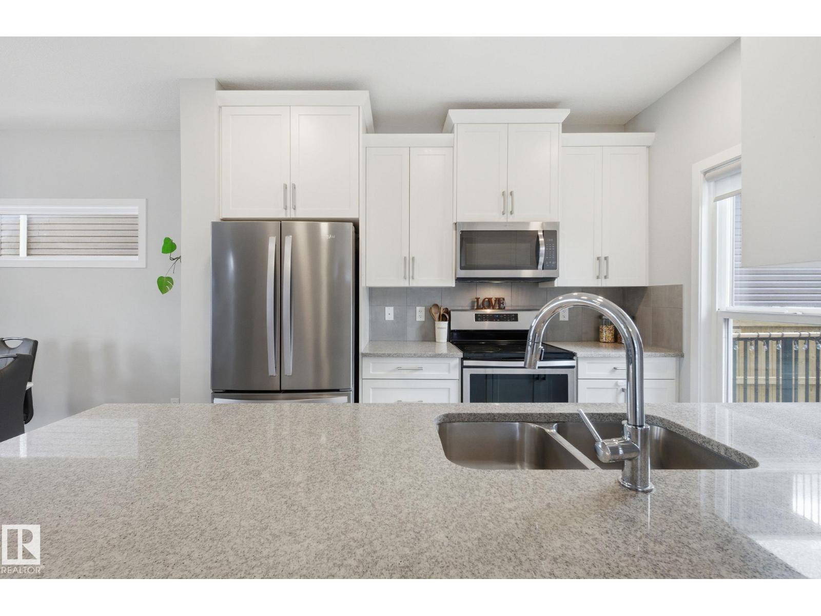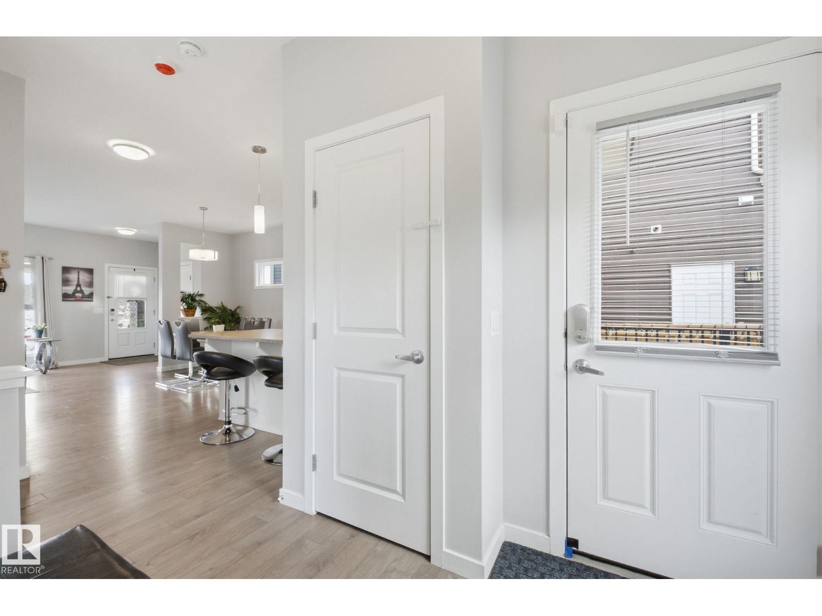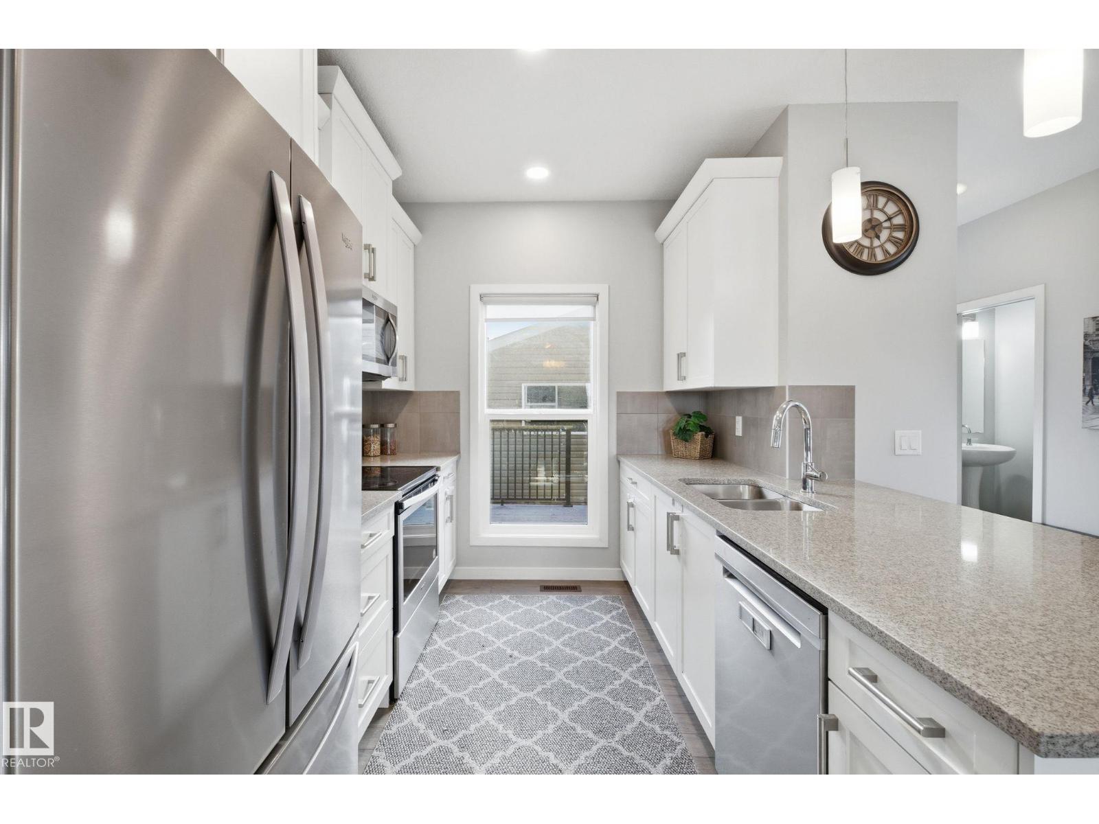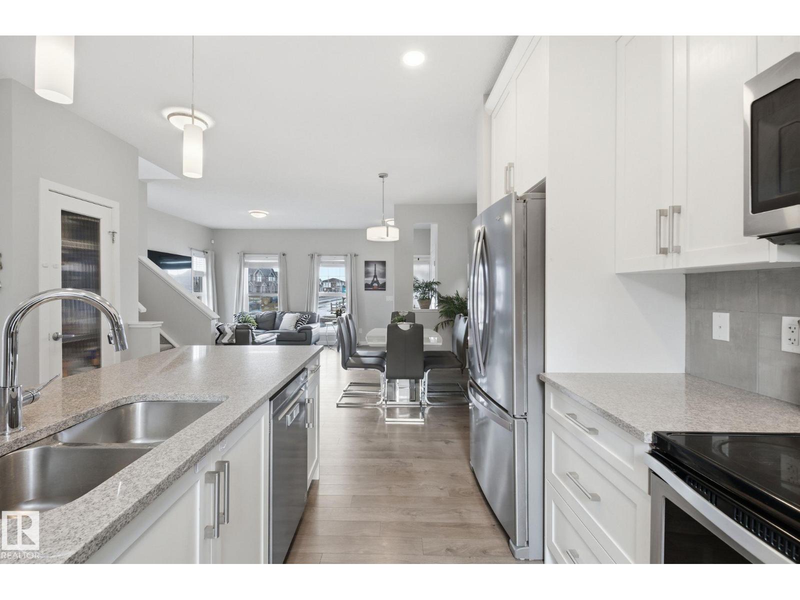 Welcome to Crystallina, a growing North Edmonton community. Situated on a rare non-zero lot line corner lot and the only single detached home on the lane, this property offers added space, privacy, and standout curb appeal. This 3-bedroom, 2.5-bathroom home features bright open-concept main floor with large windows that fill the home with natural light, creating a warm and inviting atmosphere. The kitchen is both functional and stylish, complete with granite countertops, ample cabinetry, and generous prep space. Upstairs offers three well-sized bedrooms, along with two full bathrooms, while a convenient main-floor half bath adds everyday functionality. Stay comfortable year-round with central air conditioning. Enjoy the benefits of a corner lot with extra yard space, plus a unique setting as the only detached home on the lane, offering added privacy compared to surrounding properties. Ideally located with easy access to transit, and just minutes from schools, parks, shopping, and amenities. (id:63190)
