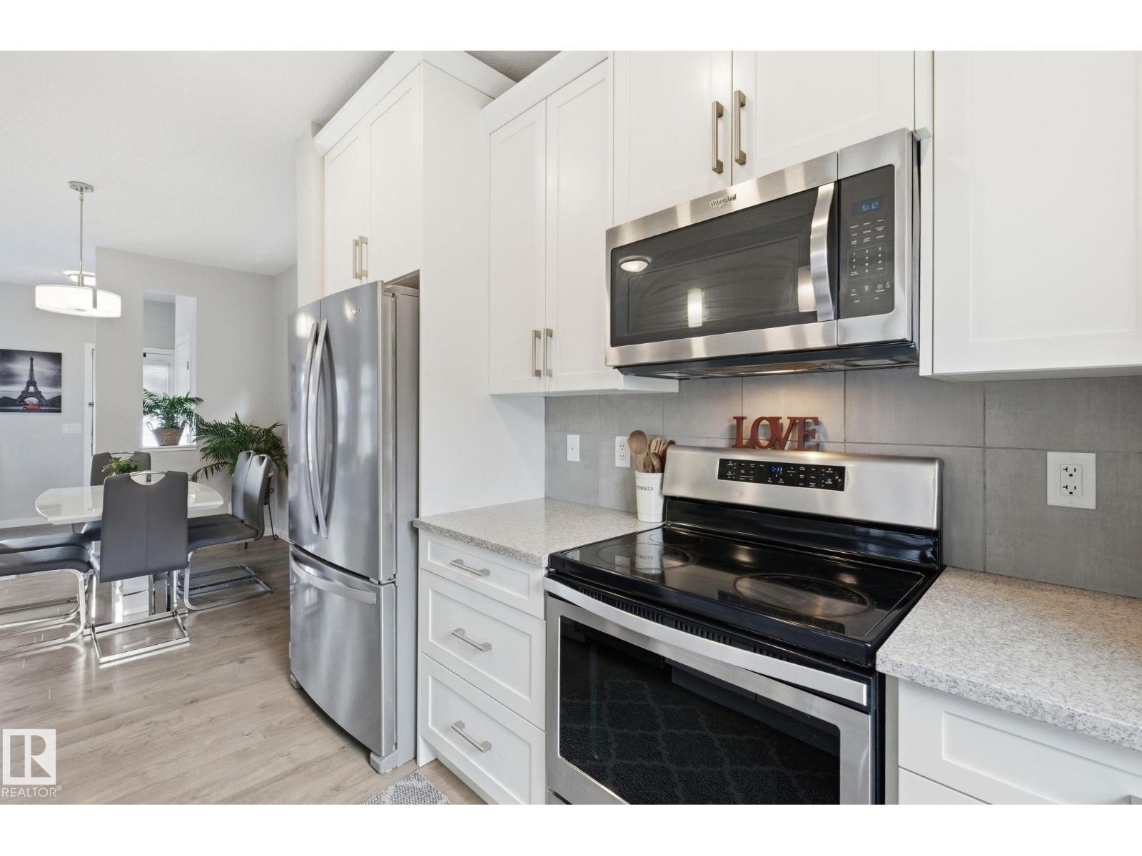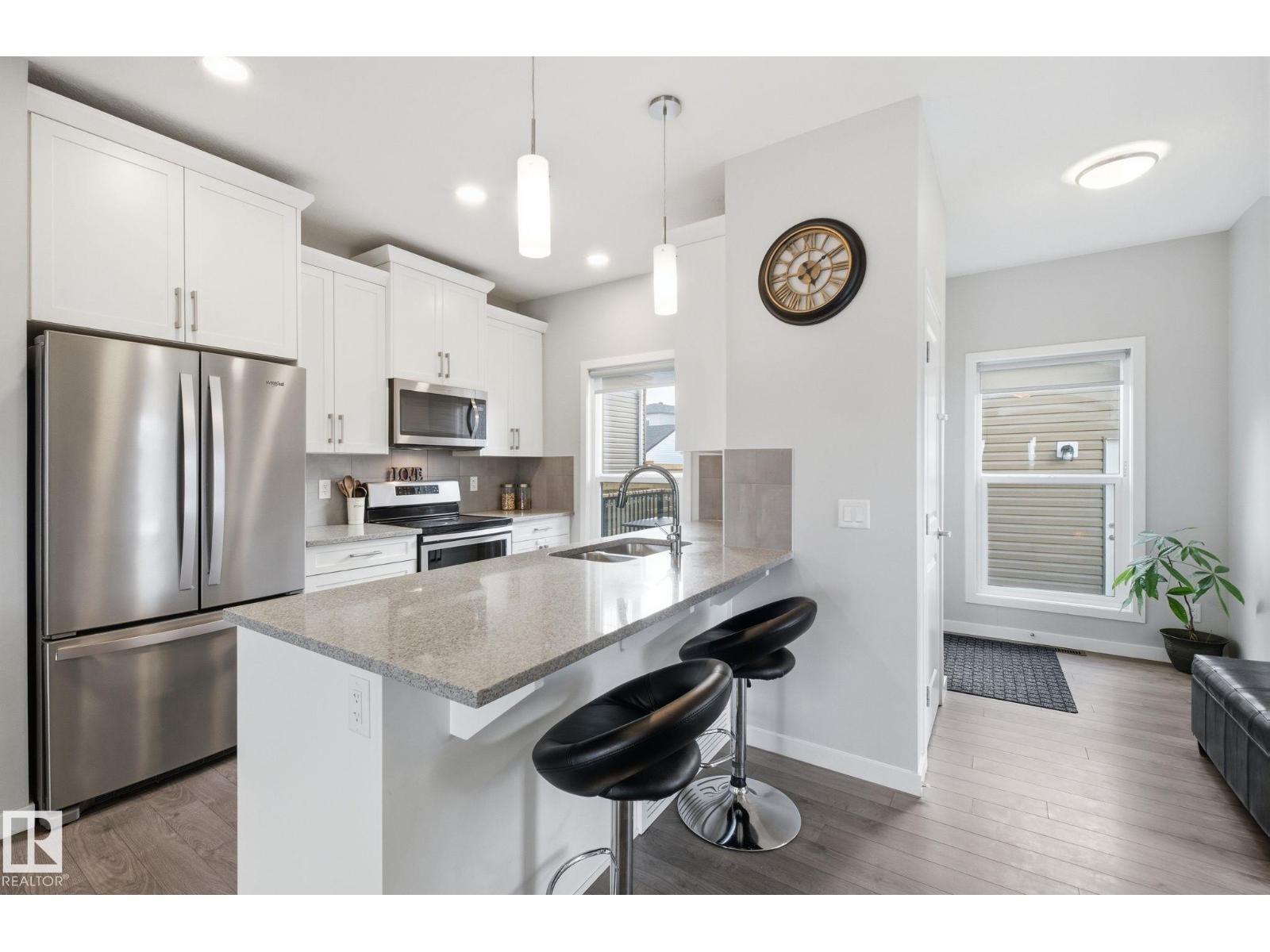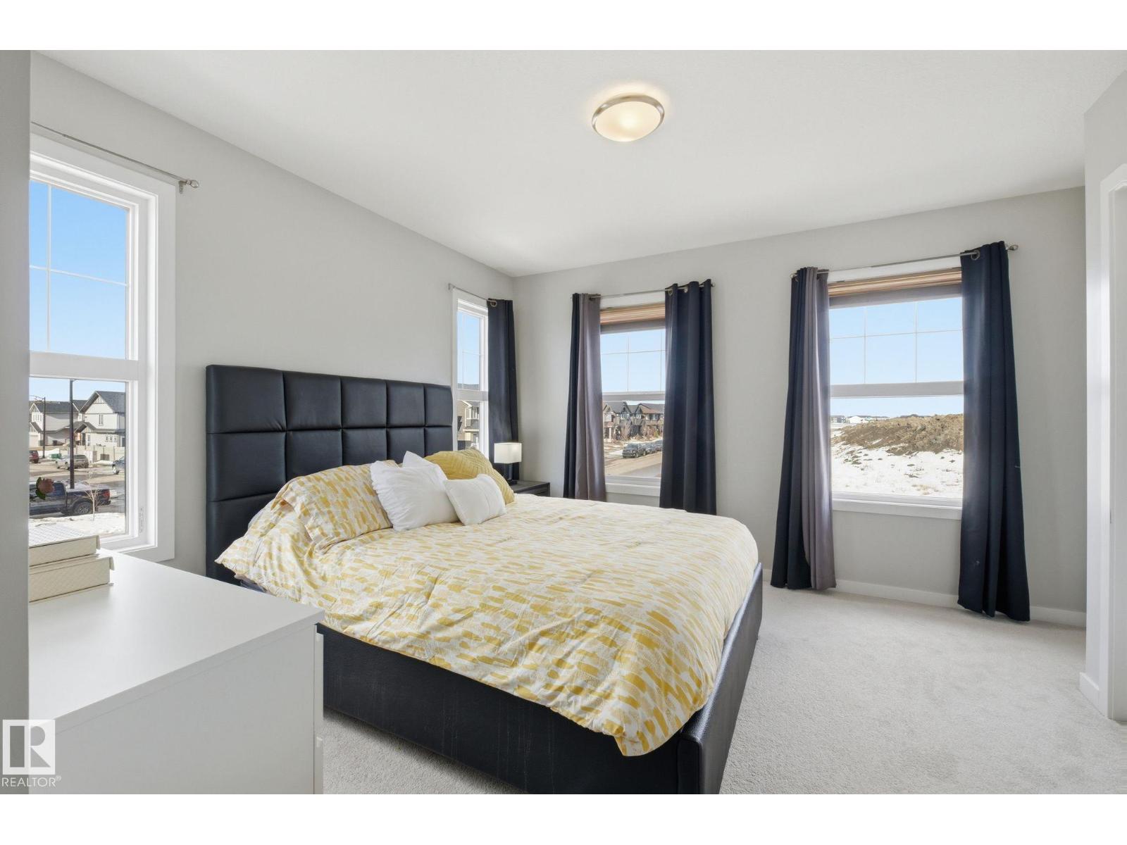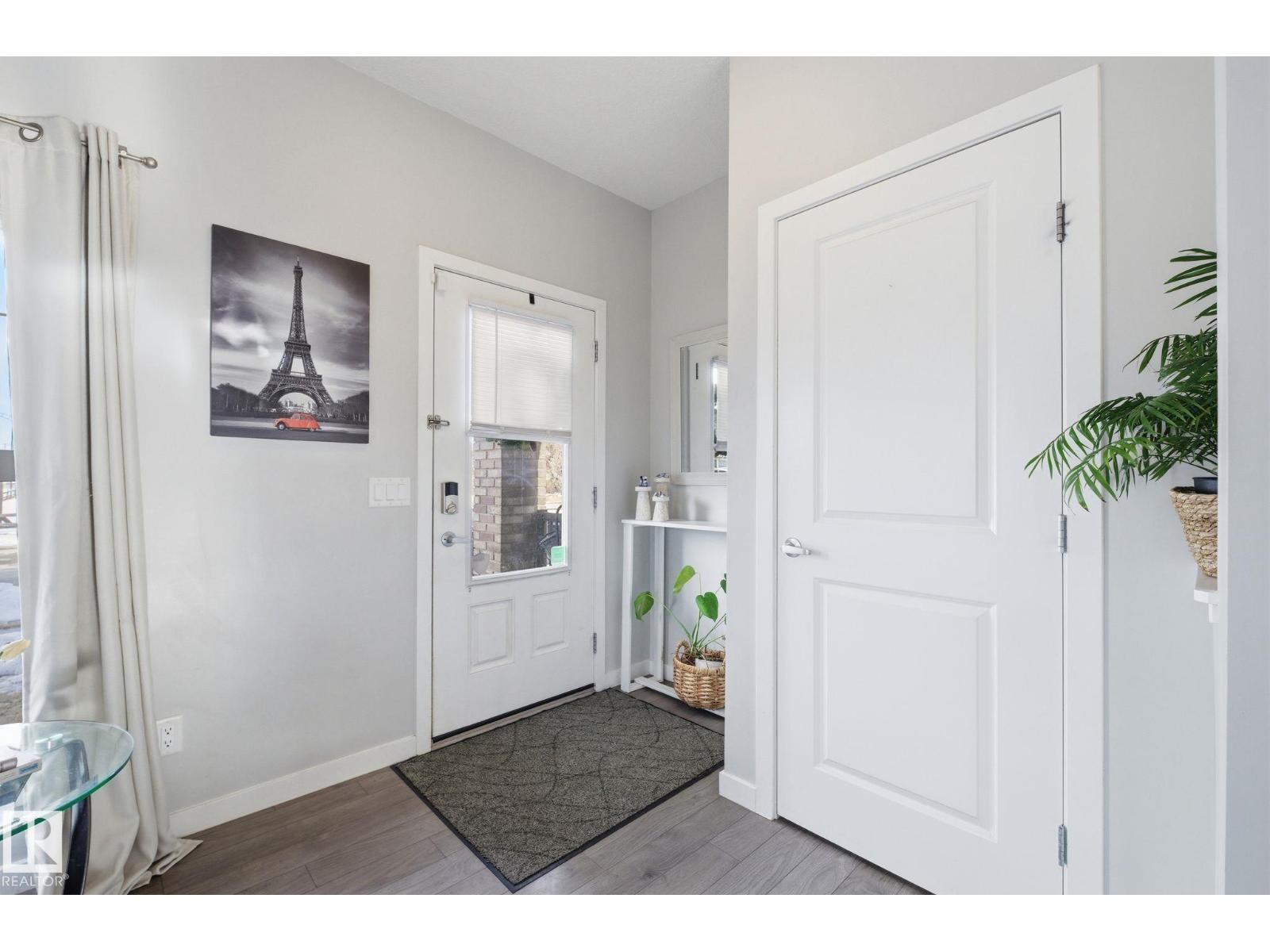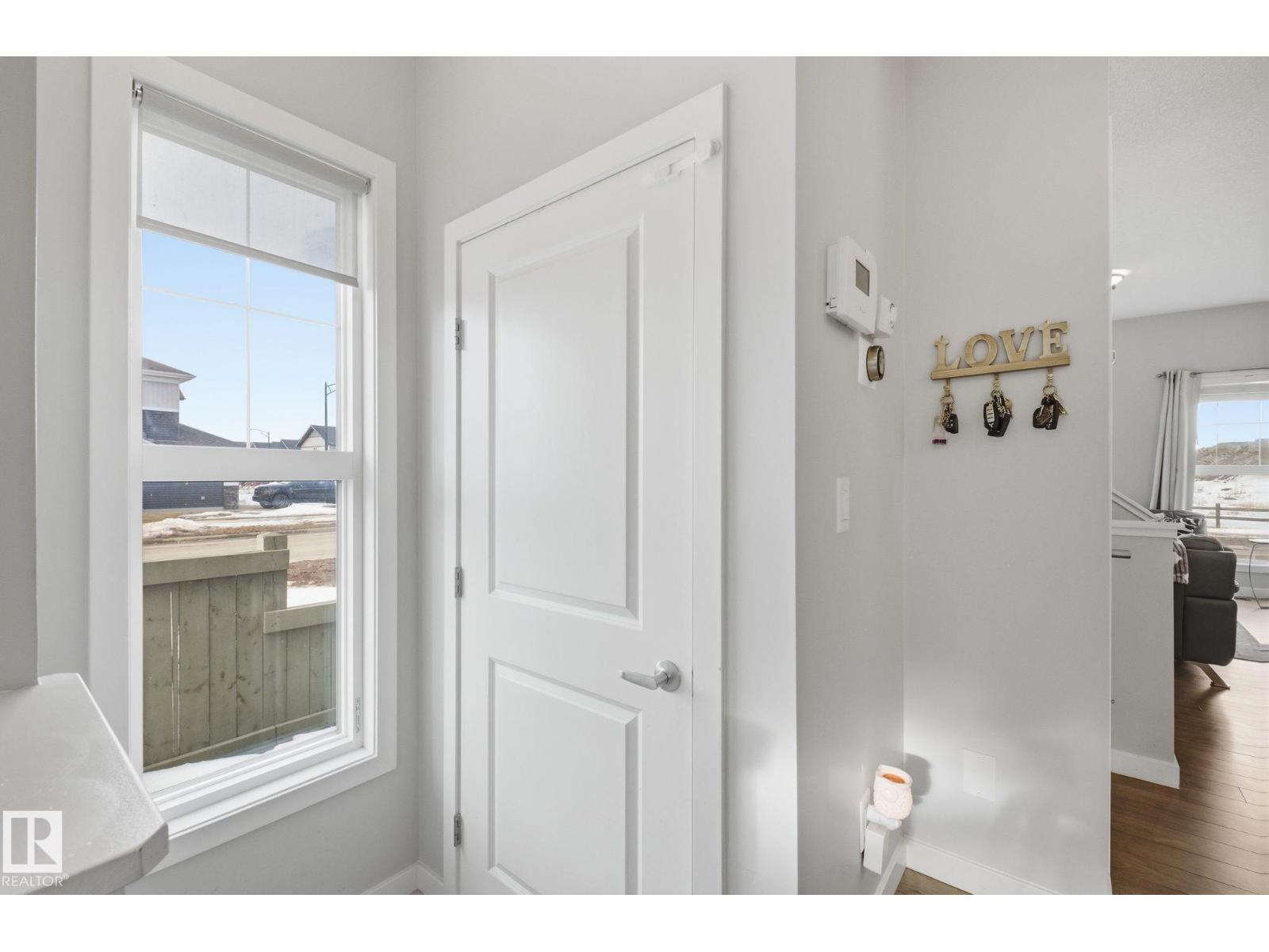 Welcome to Crystallina, a growing North Edmonton community. Situated on a rare non-zero lot line corner lot and the only single detached home on the lane, this property offers added space, privacy, and standout curb appeal. This 3-bedroom, 2.5-bathroom home features bright open-concept main floor with large windows that fill the home with natural light, creating a warm and inviting atmosphere. The kitchen is both functional and stylish, complete with granite countertops, ample cabinetry, and generous prep space. Upstairs offers three well-sized bedrooms, along with two full bathrooms, while a convenient main-floor half bath adds everyday functionality. Stay comfortable year-round with central air conditioning. Enjoy the benefits of a corner lot with extra yard space, plus a unique setting as the only detached home on the lane, offering added privacy compared to surrounding properties. Ideally located with easy access to transit, and just minutes from schools, parks, shopping, and amenities. (id:63190)