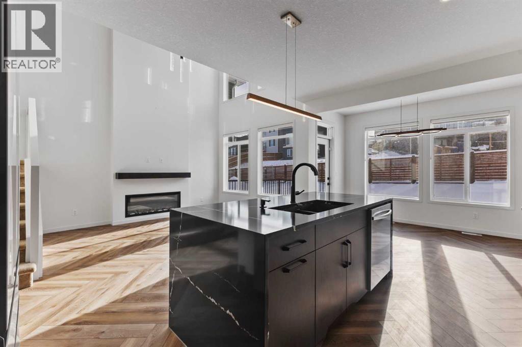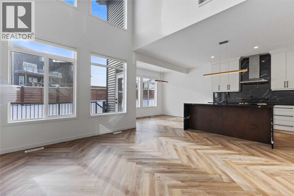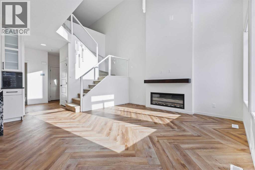 Welcome Home to 229 Calhoun Crescent NEDiscover this stunning Morrison-built two-storey home, offering just under 2,000 sq. ft. of beautifully upgraded living space. The bright, open-concept floor plan is flooded with natural light, highlighted by soaring ceilings and a spectacular two-storey living room with expansive windows.The gourmet kitchen is a chef’s dream — equipped with a gas range, striking stainless steel hood fan, double-door refrigerator with water and ice, and a built-in microwave. Custom quartz countertops, ceiling-height cabinetry, and a walk-through pantry with abundant storage complete this elegant space.Upstairs, glass-panel railings and a bright upper hallway continue the home’s airy feel. The primary suite is spacious and luxurious, featuring a soaker tub, dual sinks, walk-in closet with built-in storage, and stylish brass fixtures atop custom quartz counters.The secondary bedrooms are generously sized — perfect for a growing family — and the unspoiled basement with large windows and a 3-piece plumbing rough-in awaits your future development ideas.This exceptional home, located in a sought-after family-friendly community, truly has it all. (id:63190)