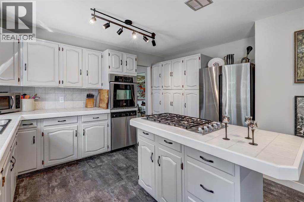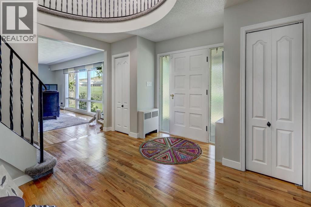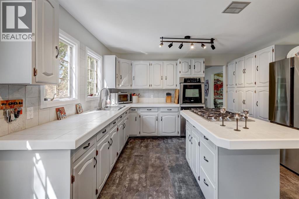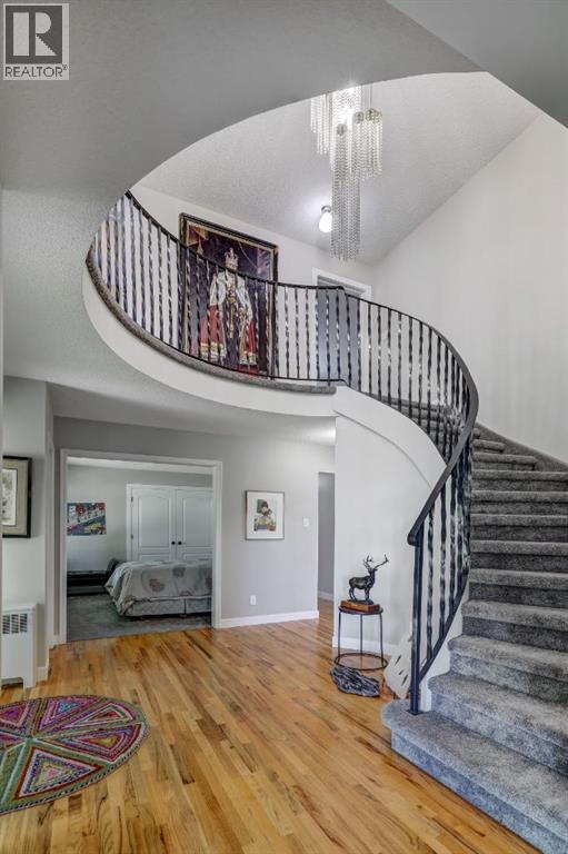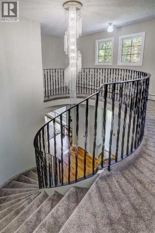 Tucked away on one of Drumheller’s most sought-after streets, this exceptional home offers the perfect balance of elegance, comfort, and space—set on a beautifully expansive 1-acre lot that feels like your own private retreat, right in town.From the moment you arrive, there’s a sense that this home is something special. A charming circular driveway, gracefully framed by mature trees welcomes you in and provides ample parking for up to 6 vehicles - setting the tone for both convenience and curb appeal. Step inside to a grand foyer where a stunning spiral staircase with custom iron railing and a sparkling chandelier creates an unforgettable first impression. The home unfolds into thoughtfully designed spaces that are both refined and welcoming—perfect for everyday living and effortless entertaining.The main floor invites connection, featuring a spacious kitchen designed as the heart of the home, with room to gather, cook, and linger. Surrounding it are a formal dining room for special occasions, an elegant living room, a cozy family room, and a dedicated office—giving everyone their own space while still feeling connected. Just off the kitchen, step out onto the expansive deck and take in the peaceful surroundings.Upstairs, you’ll find four generously sized bedrooms, including a beautiful primary retreat complete with its own fireplace, walk-in closet, and a well-appointed ensuite with dual vanities. A full family bathroom and convenient upper-level laundry make daily life that much easier—one of three laundry areas thoughtfully placed throughout the home.The fully developed basement adds even more versatility, whether you envision a media room, home gym, play space, or all three. A large cold room provides incredible storage for pantry items or preserves—practicality meets possibility.Outside, the lifestyle continues. The heated double attached garage offers comfort year-round, while the sprawling yard creates endless opportunities—room to relax, entertain, or s imply enjoy the quiet beauty of your surroundings. With recent updates and ongoing improvements, including newly completed berm work and upcoming tree planting, this property continues to evolve into something truly special.This isn’t just a house—it’s a place where holidays are hosted, milestones are celebrated, and everyday moments become lasting memories. A home like this doesn’t just check the boxes… it creates a lifestyle. (id:63190)