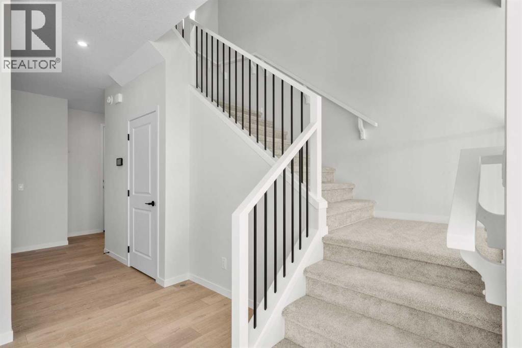Welcome to a home that feels both elevated and easy to live in. Located in the prestigious community of West Grove Estates, this Clairmont 24 model offers the space, flow, and modern design today’s buyers are searching for. With a classic exterior and FRONT ATTACHED DOUBLE GARAGE, the home makes a confident first impression while setting the tone for the thoughtful layout inside. The main floor is designed for real daily living. A versatile FRONT FLEX ROOM with stunning glass FRENCH DOORS provides the perfect setting for a home office, playroom, or quiet sitting area. Toward the back, the layout opens into a bright and connected living space where the kitchen, dining area, and great room come together naturally. The kitchen features a MASSIVE ISLAND, quartz countertops, sleek black hardware, and timeless neutral cabinetry, while a well sized WALK THROUGH PANTRY links directly to the mudroom, creating a practical flow that makes everyday routines feel smoother. You’ll receive a $9,000 appliance allowance to select your dream appliances throughout the home. The dining nook connects easily to the great room, highlighted by a beautiful ELECTRIC FIREPLACE. The completed deck in the south facing backyard makes entertaining and summer evenings feel effortless. Upstairs, a well planned layout creates both privacy and connection. A central BONUS ROOM offers a comfortable place for family time and the perfect spot to binge your favourite shows. The PRIMARY SUITE provides a calm retreat with a luxurious ensuite featuring mountain views, a large soaker tub, dual sinks, and a tiled walk in shower. Two additional bedrooms are positioned at the front of the home, along with a full 5 piece bathroom with the upgraded dual sinks. UPPER LEVEL LAUNDRY and a functional BUILT IN DESK area add the kind of convenience families truly value. The overall aesthetic is designed to appeal today and hold its value well into the future. West Grove Estates offers the lifestyle many buyers aspire to . Quiet streets, upscale homes, and close proximity to top rated schools, Aspen Landing, Westside Recreation Centre, and major commuter routes make this one of west Calgary’s most desirable addresses. This is a home that balances location, design, and everyday comfort in a way that simply makes sense. Come experience the lifestyle this home offers for yourself! *Some photos are virtually staged.* (id:63190)