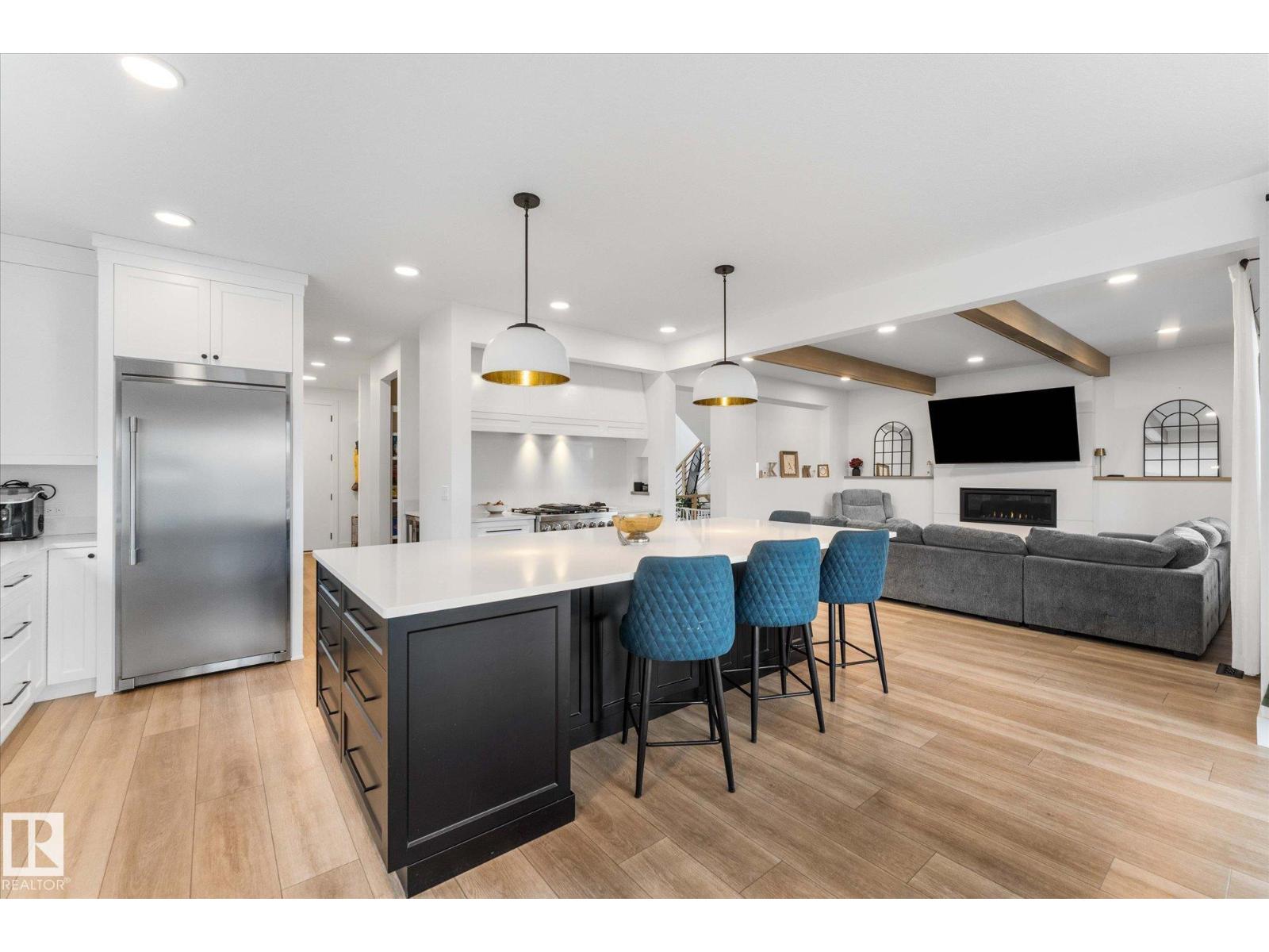 Indulge in resort-style living in this exceptional luxury residence in Jensen Lakes, St Albert's exclusive private beach community. Spanning nearly 3000 sqft, this architecturally refined custom 2story home offers 4 bedrooms, 4.5 bathrooms and a level of finish that speaks to the most discerning buyer. The chef-inspired kitchen is a true showpiece, featuring premium appliances, oversized island & walk-through pantry, flowing seamlessly into a sophisticated living space anchored by a statement fireplace. Upstairs, the primary retreat rivals a high-end spa with a lavish ensuite, heated floors & a boutique style walk-in closet with island, with direct access to the laundry room. Each upstairs bedroom boasts its own private ensuite, delivering ultimate comfort and privacy. A fully finished basement adds cozy vibes & versatility, while the triple garage (with 200Amp plug in) completes the package. Steps to the private beach, school, shopping, movie theatre - this is more than just a home, its a lifestyle. (id:63190)