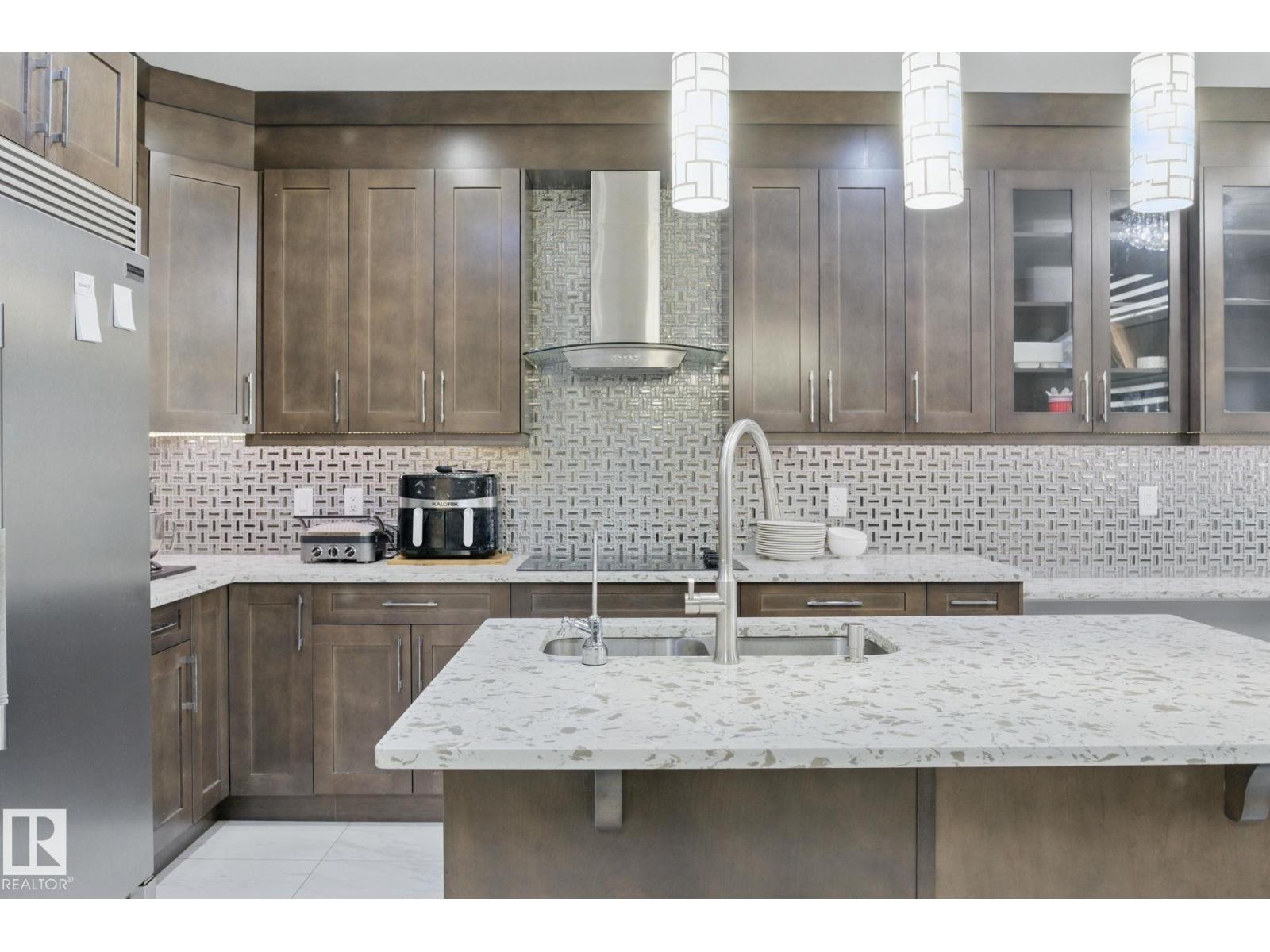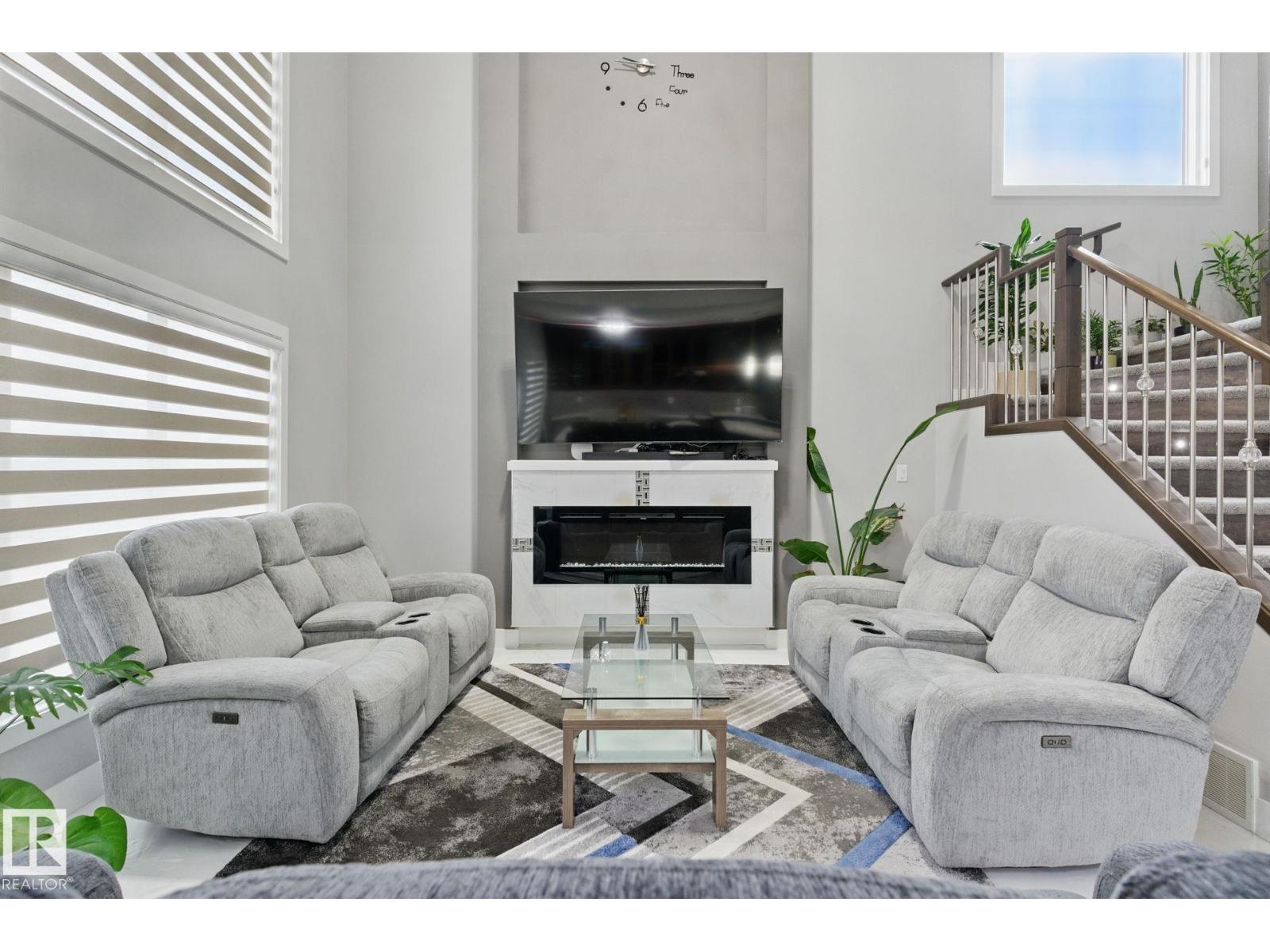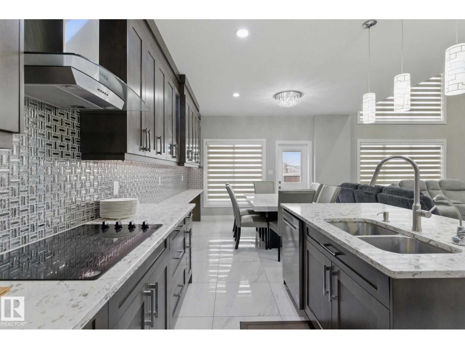 Northeast-facing 2334 SqFt home on a 38' pocket lot backing onto a park in Laurel! Features a 4-car heated tandem garage, solar panels, central A/C, water purifier & softener, plus a 2-bedroom legal basement suite with separate entrance. Main floor includes a bedroom with full ensuite (seat shower). Upgraded throughout with 19' open-to-above living room, spice kitchen with gas stove & built-ins, extended kitchen with all-fridge/all-freezer, quartz counters, soft-close cabinets to ceiling, and under-cabinet lighting. Enjoy 9' ceilings on all levels, 10' in primary BR, ceramic tile on main, luxury laminate upstairs, crystal LED lights, ceiling fans in all rooms, zebra blinds, illuminated stairs, and tile fireplace. Exterior offers 16x12 concrete patio, sidewalk, landscaping, privacy fence, and premium siding. Walking distance to Svend Hansen School. Flexible possession available! (id:63190)