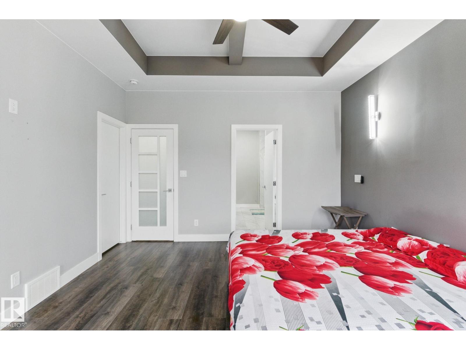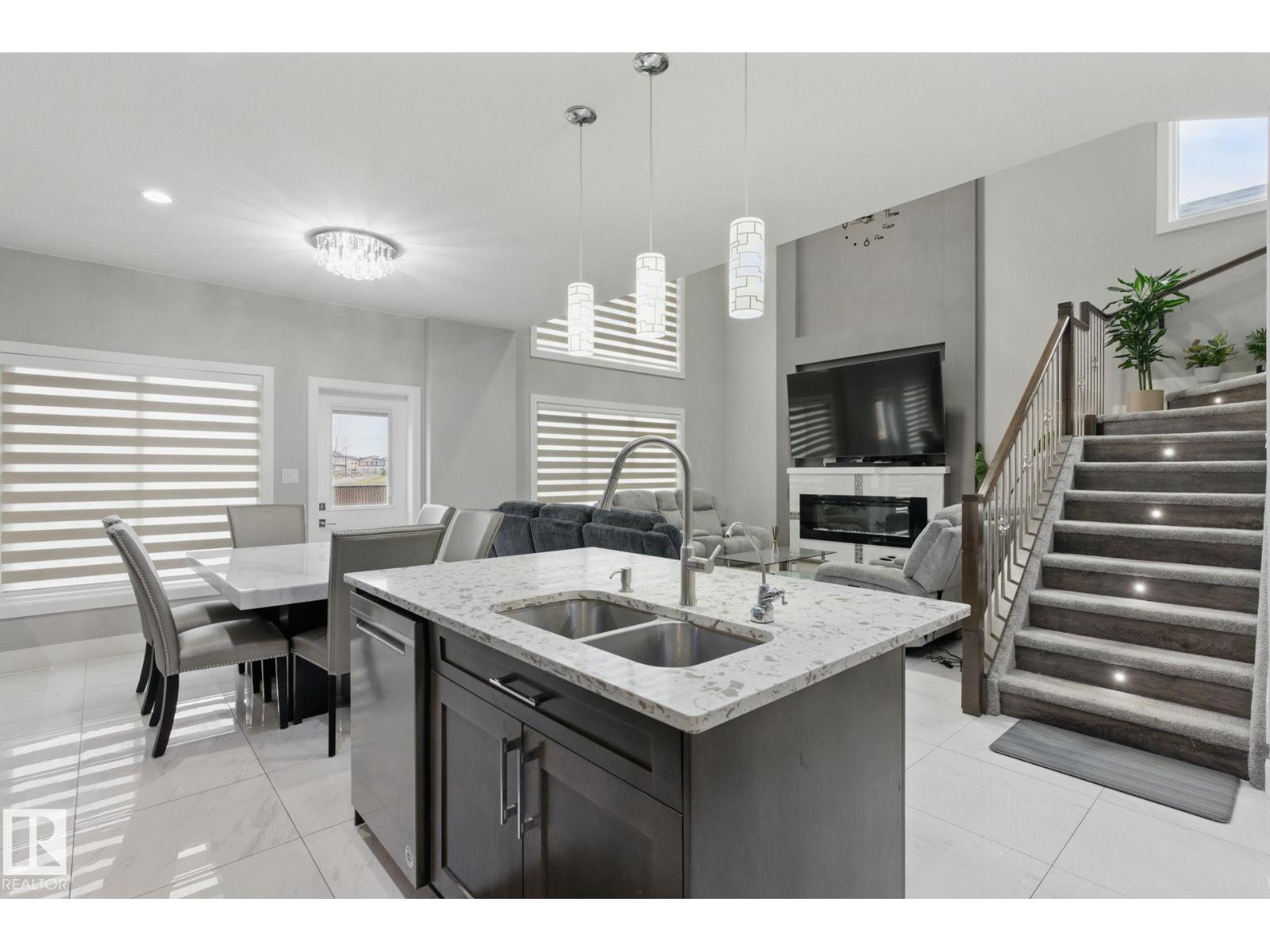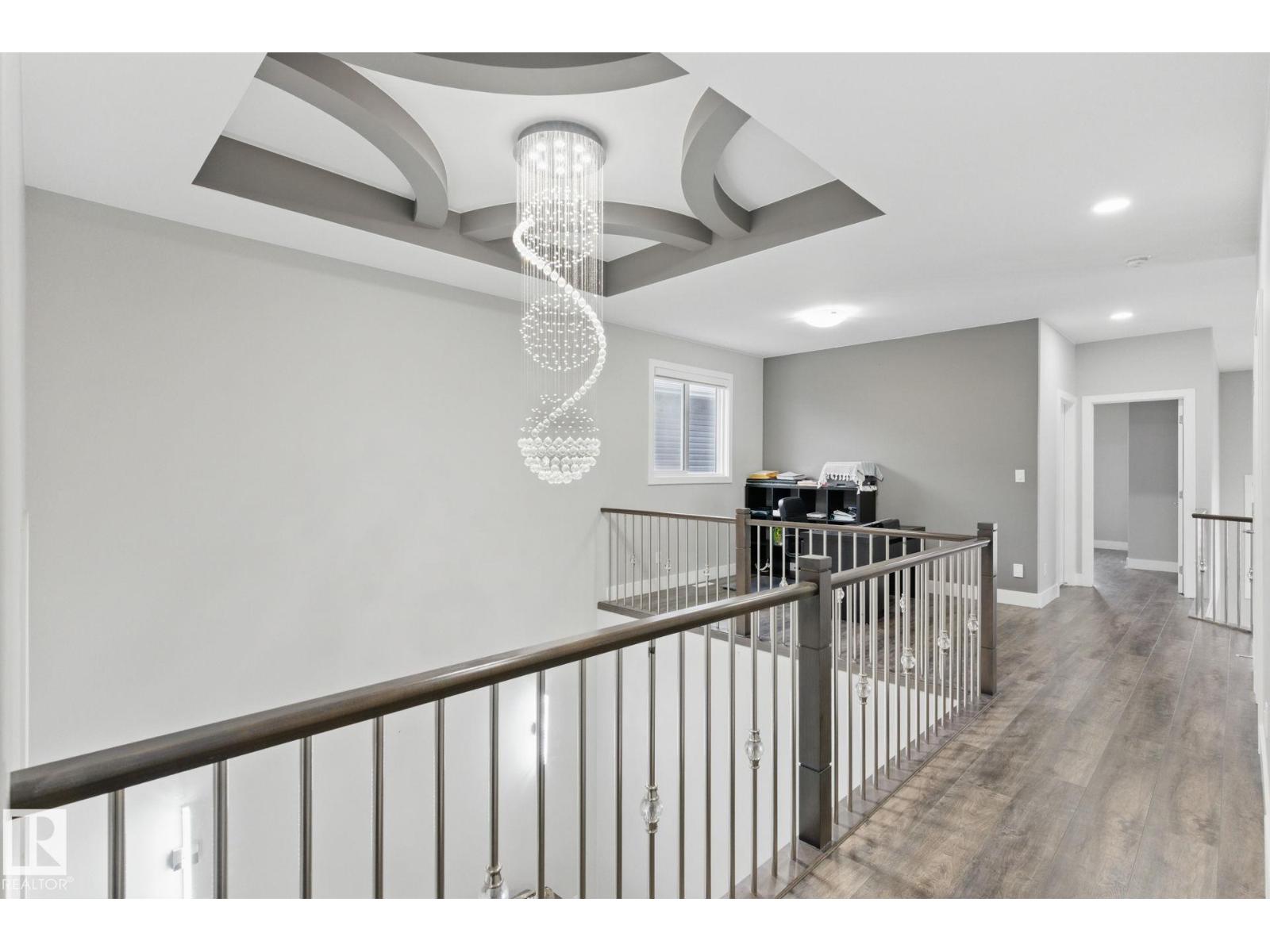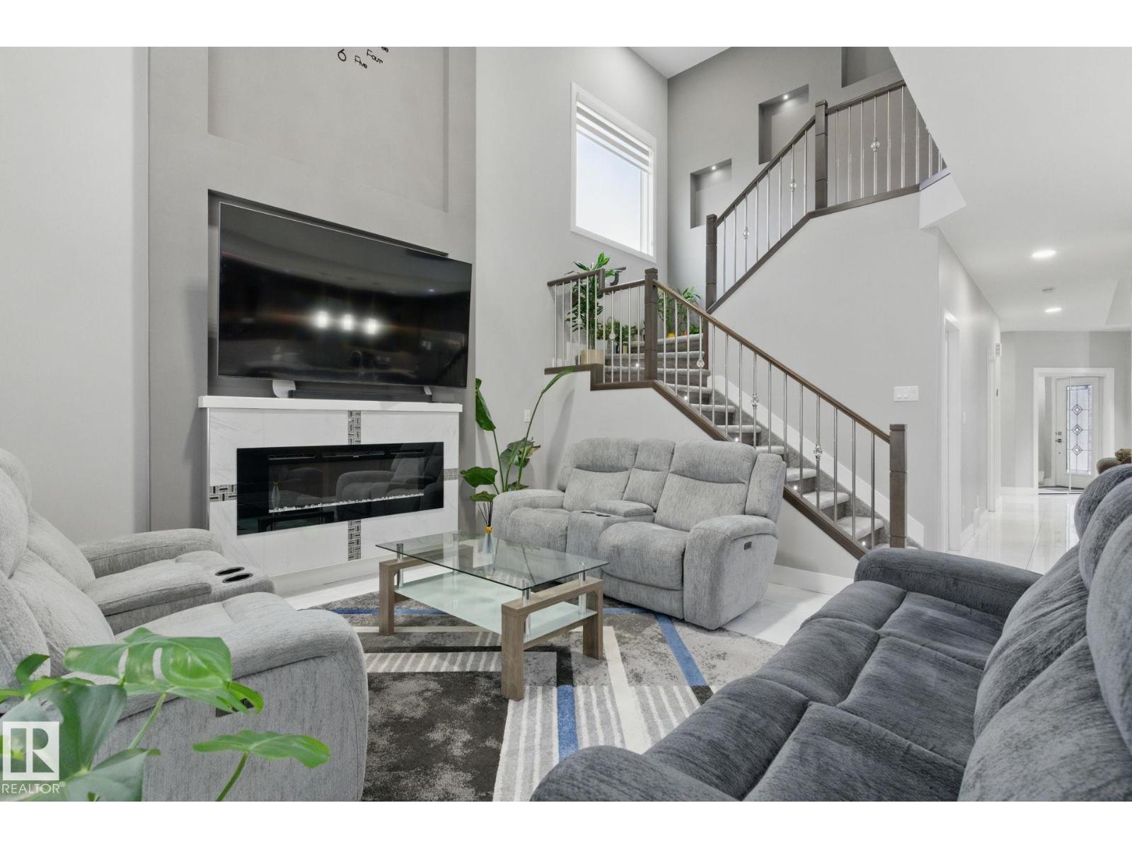 Northeast-facing 2334 SqFt home on a 38' pocket lot backing onto a park in Laurel! Features a 4-car heated tandem garage, solar panels, central A/C, water purifier & softener, plus a 2-bedroom legal basement suite with separate entrance. Main floor includes a bedroom with full ensuite (seat shower). Upgraded throughout with 19' open-to-above living room, spice kitchen with gas stove & built-ins, extended kitchen with all-fridge/all-freezer, quartz counters, soft-close cabinets to ceiling, and under-cabinet lighting. Enjoy 9' ceilings on all levels, 10' in primary BR, ceramic tile on main, luxury laminate upstairs, crystal LED lights, ceiling fans in all rooms, zebra blinds, illuminated stairs, and tile fireplace. Exterior offers 16x12 concrete patio, sidewalk, landscaping, privacy fence, and premium siding. Walking distance to Svend Hansen School. Flexible possession available! (id:63190)
