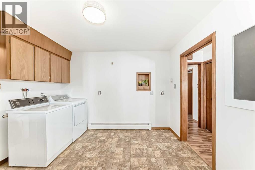 Welcome to this beautifully updated 4-bedroom 2-bathroom 2377 total sqft BUNGALOW situated on a desirable corner lot in the town of Three Hills Alberta. Offering a thoughtful blend of modern upgrades and comfortable family living, this property provides an excellent opportunity for buyers seeking a move-in-ready home in a highly convenient location. The main level features bright, open living spaces with updated finishings throughout, creating a warm and inviting atmosphere. Updated new bathrooms, new paint through-out, new flooring to the basement along with 3 large new egress vinyl windows added in 2025. The lower level is set up for a bar or KITCHENETTE area, and a home office close by. New electrical panel and thermostats are in place, and the home is all updated and ready to go. The well-designed floorplan offers ample room for both everyday living and entertaining. With 4 bedrooms, one being oversized in the basement, this home is ideally suited for families, guests, or those requiring additional space for a home office. The rear entrance is also conveniently set up for a future PRIVATE ENTRANCE for a lower-level future rental opportunity. Outside, the home offers exceptional functionality with a detached HEATED GARAGE, NEW VINYL WHITE 6 FOOT FENCING, and perfect for year-round parking, storage, dogs, or hobby use. The corner lot provides additional yard space and parking, beautiful mature trees, enhanced privacy, and excellent curb appeal! Standout features of this property are its proximity to local amenities—located directly next to the K- 12 Three Hills School, playground, and expansive green space with track and field set up, and a local community garden, offering unparalleled convenience for families and outdoor enthusiasts! This property offers outstanding value and functionality and is a must-see for buyers seeking comfort, practicality, and an exceptional location. (id:63190)
