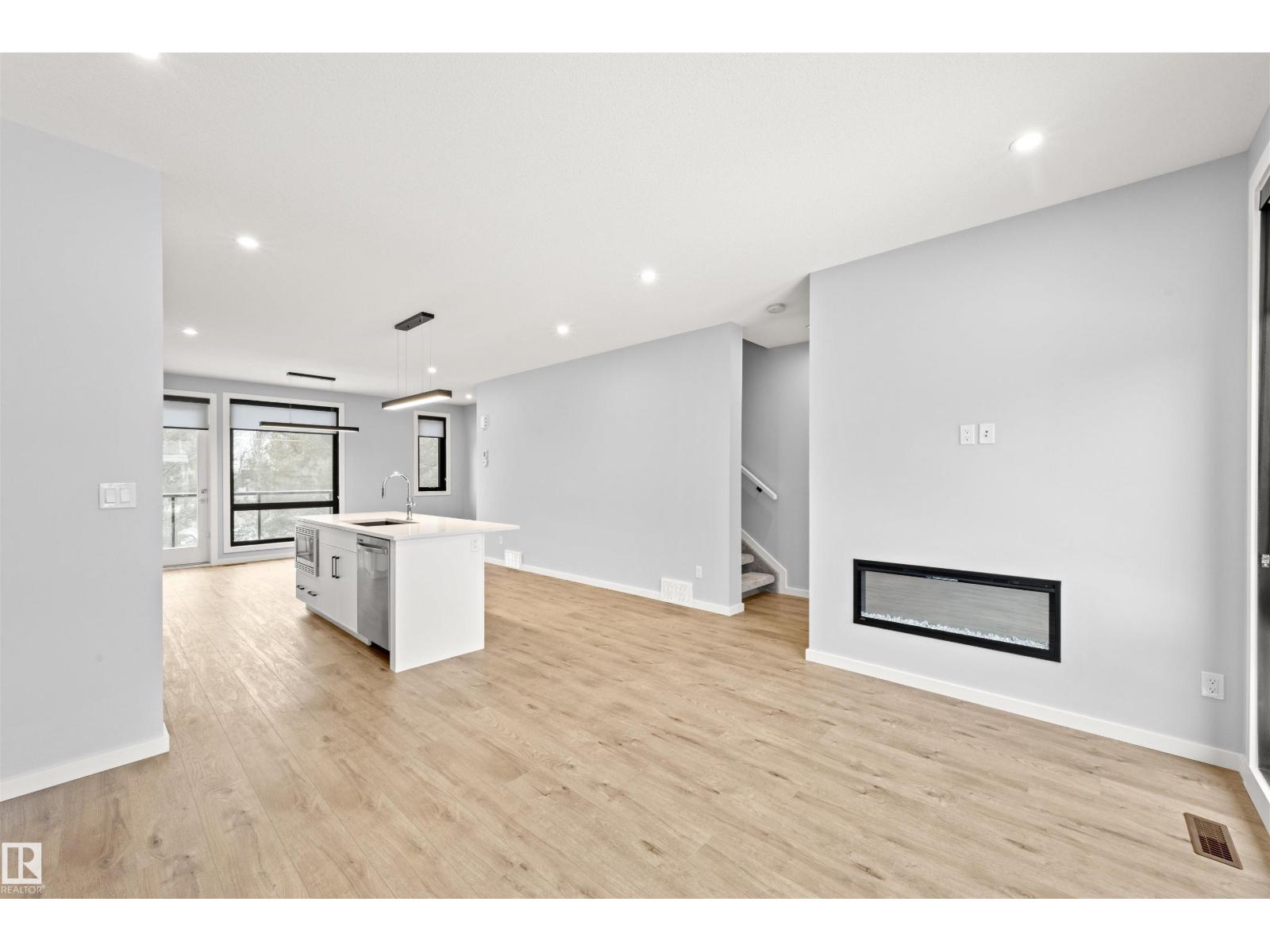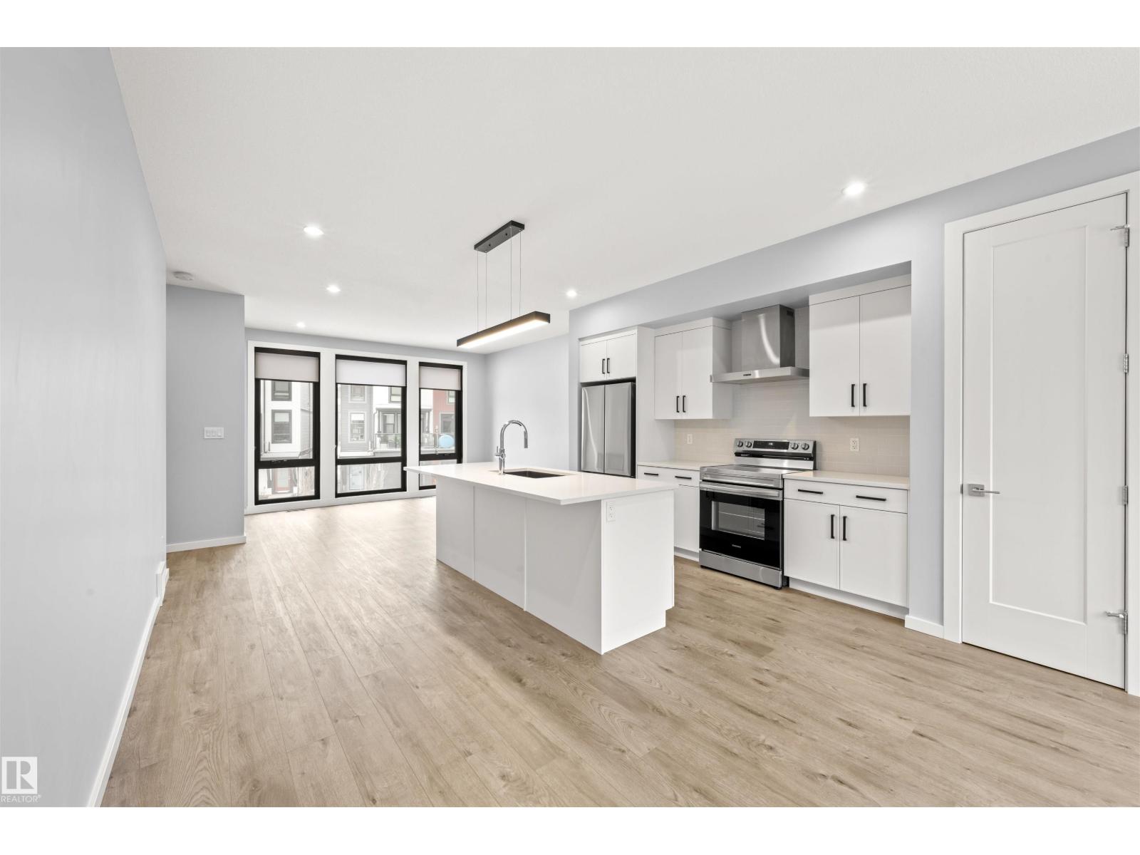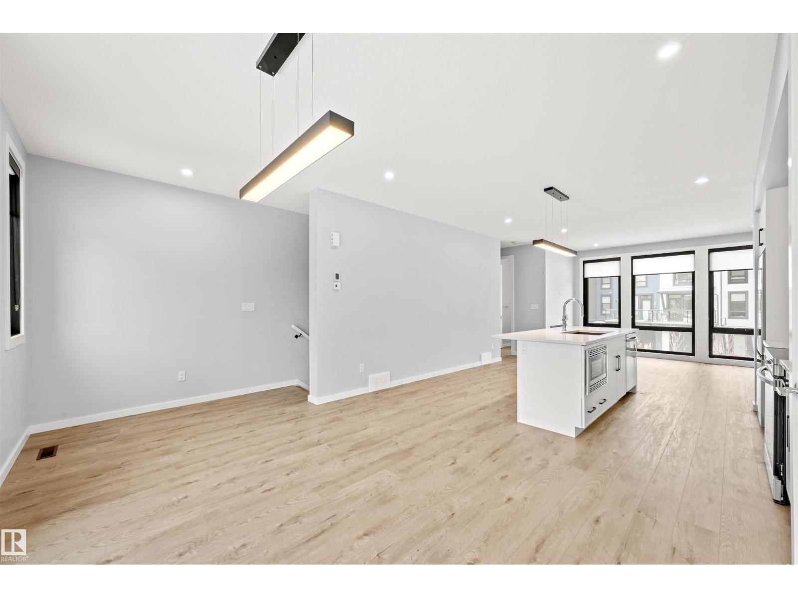 Welcome to Pivot, Averton’s award-winning townhouse community. This beautifully designed 2-bedroom, 1628 sq ft residence offers a seamless blend of style and function. The main floor features a spacious kitchen anchored by a large island with quartz countertops, a dedicated dining area, and an inviting living room framed by floor-to-ceiling windows that fill the space with natural light and a built in electric fireplace for cozy evenings in. Durable vinyl flooring runs throughout, adding both elegance and practicality. Upstairs, two generously sized bedrooms each offer their own private ensuite - perfect for elevated everyday living or hosting guests in comfort. This level also includes in-suite laundry and access to your private rooftop patio, an ideal setting for relaxing summer evenings. Central air conditioning provides comfort throughout the seasons. Completing the home is a tandem 2-car garage, offering ample room for parking, storage, or additional lifestyle space. (id:63190)