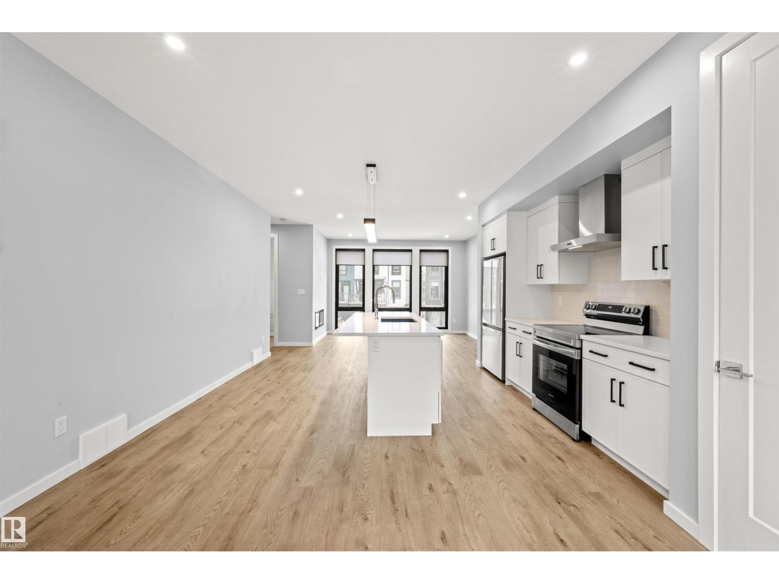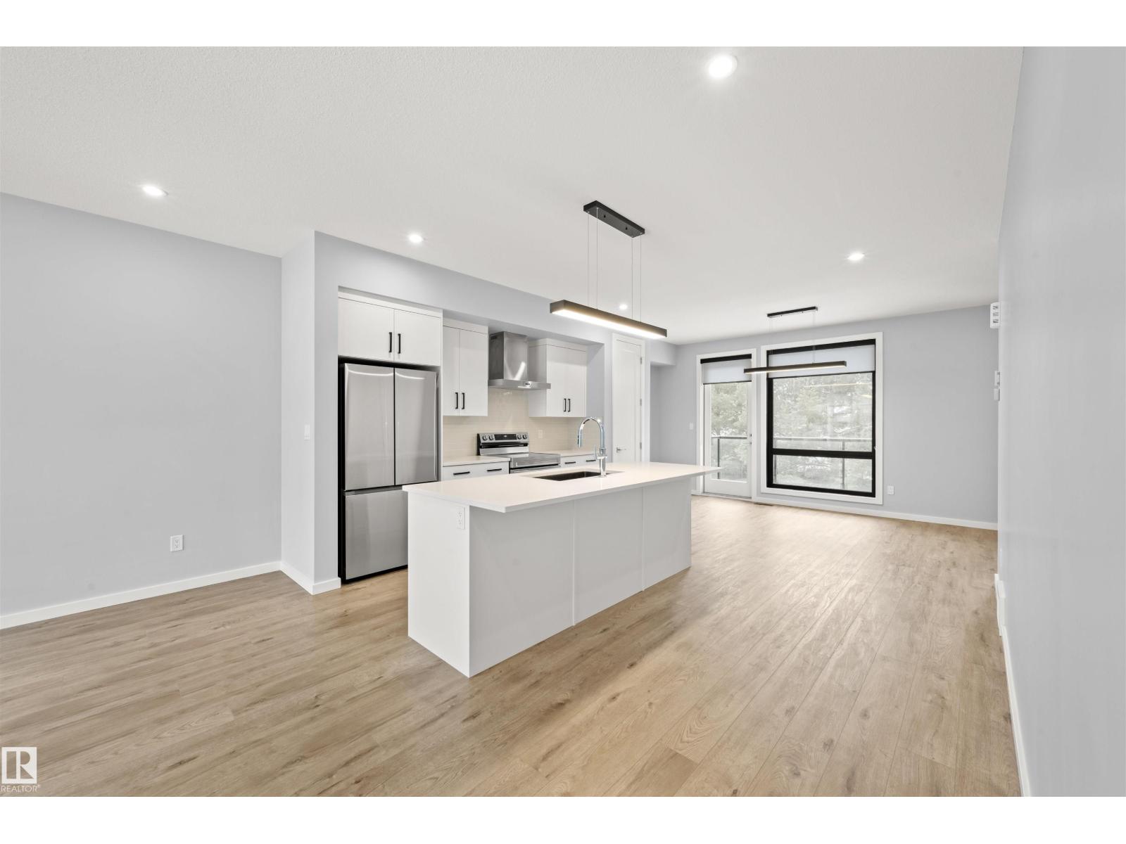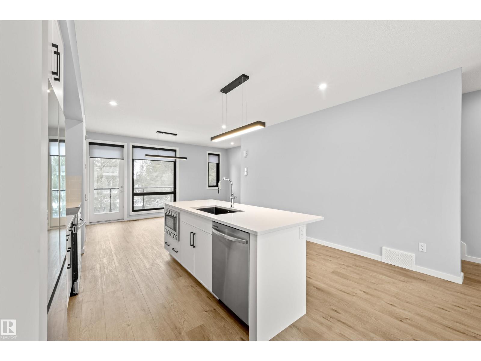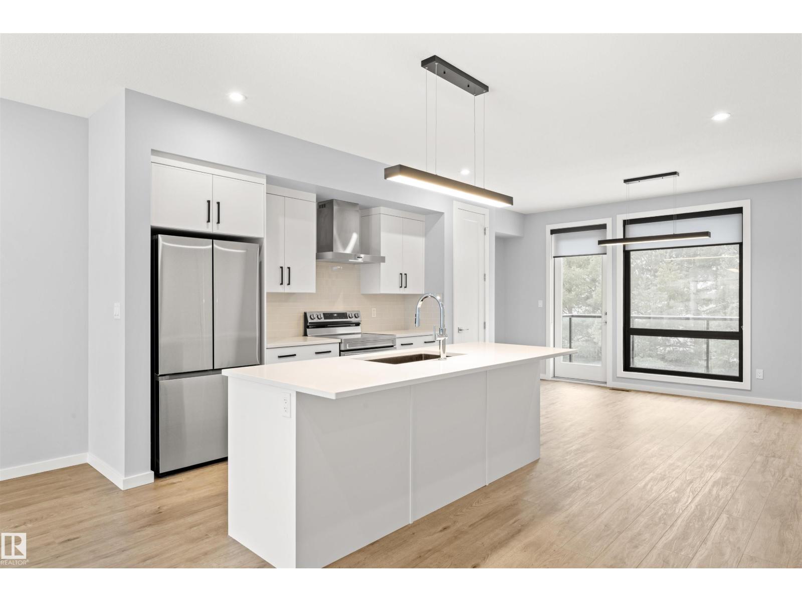 Welcome to Pivot, Averton’s award-winning townhouse community. This beautifully designed 2-bedroom, 1628 sq ft residence offers a seamless blend of style and function. The main floor features a spacious kitchen anchored by a large island with quartz countertops, a dedicated dining area, and an inviting living room framed by floor-to-ceiling windows that fill the space with natural light and a built in electric fireplace for cozy evenings in. Durable vinyl flooring runs throughout, adding both elegance and practicality. Upstairs, two generously sized bedrooms each offer their own private ensuite - perfect for elevated everyday living or hosting guests in comfort. This level also includes in-suite laundry and access to your private rooftop patio, an ideal setting for relaxing summer evenings. Central air conditioning provides comfort throughout the seasons. Completing the home is a tandem 2-car garage, offering ample room for parking, storage, or additional lifestyle space. (id:63190)