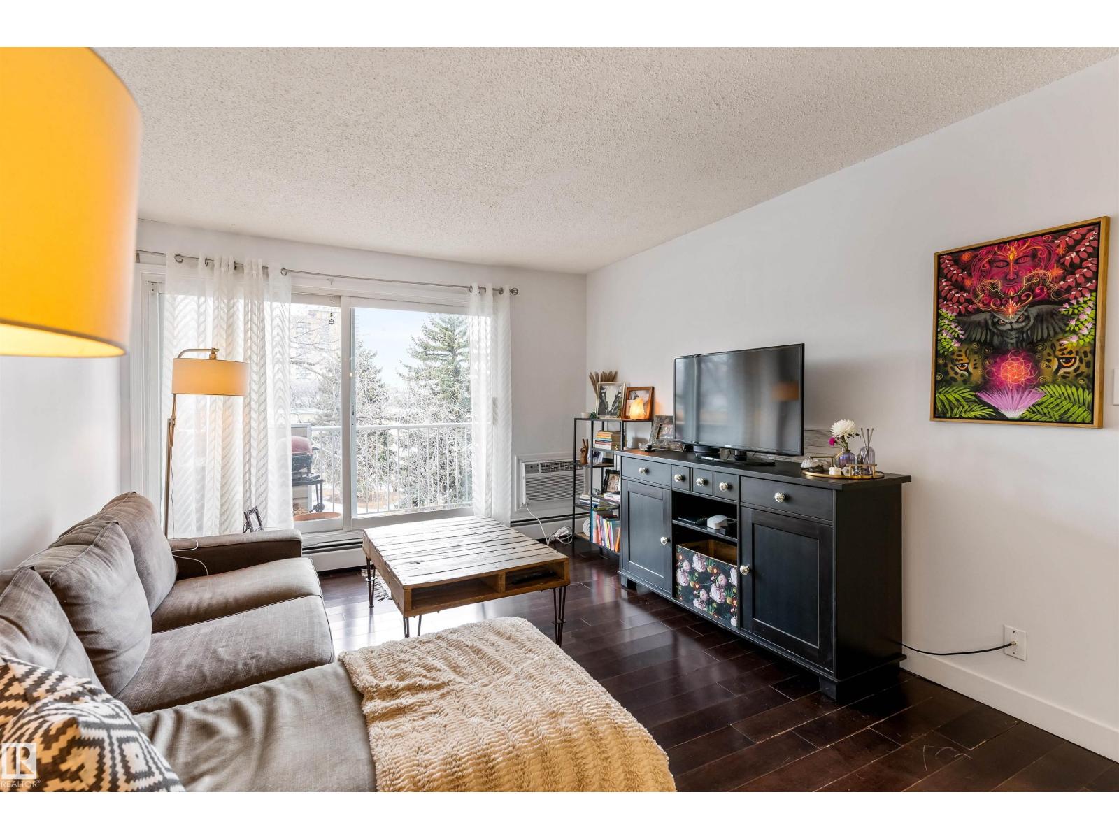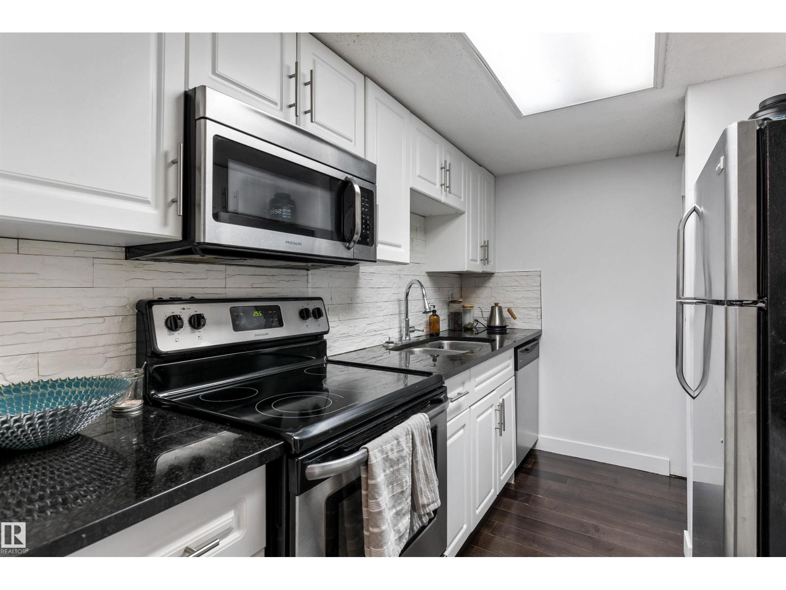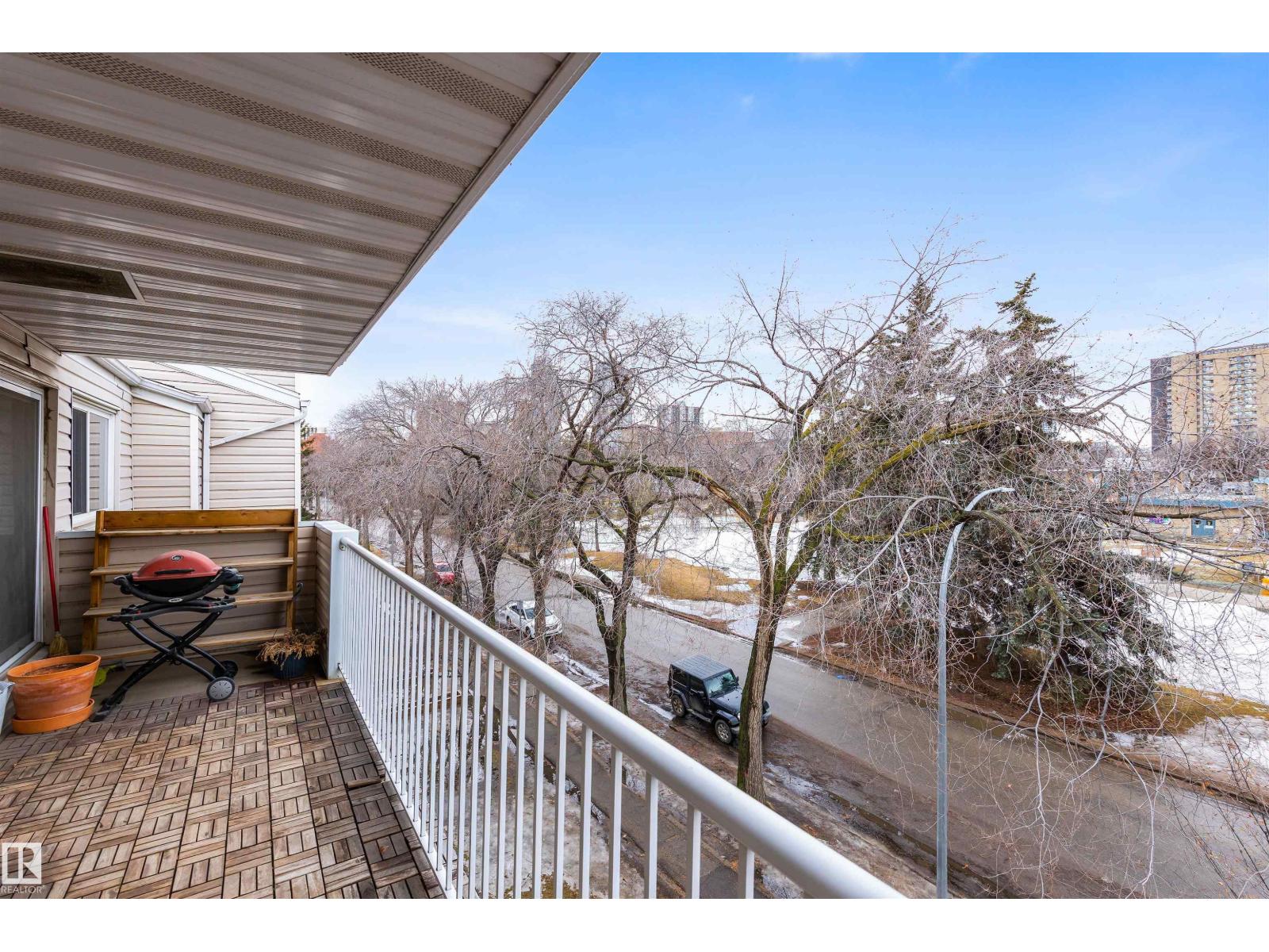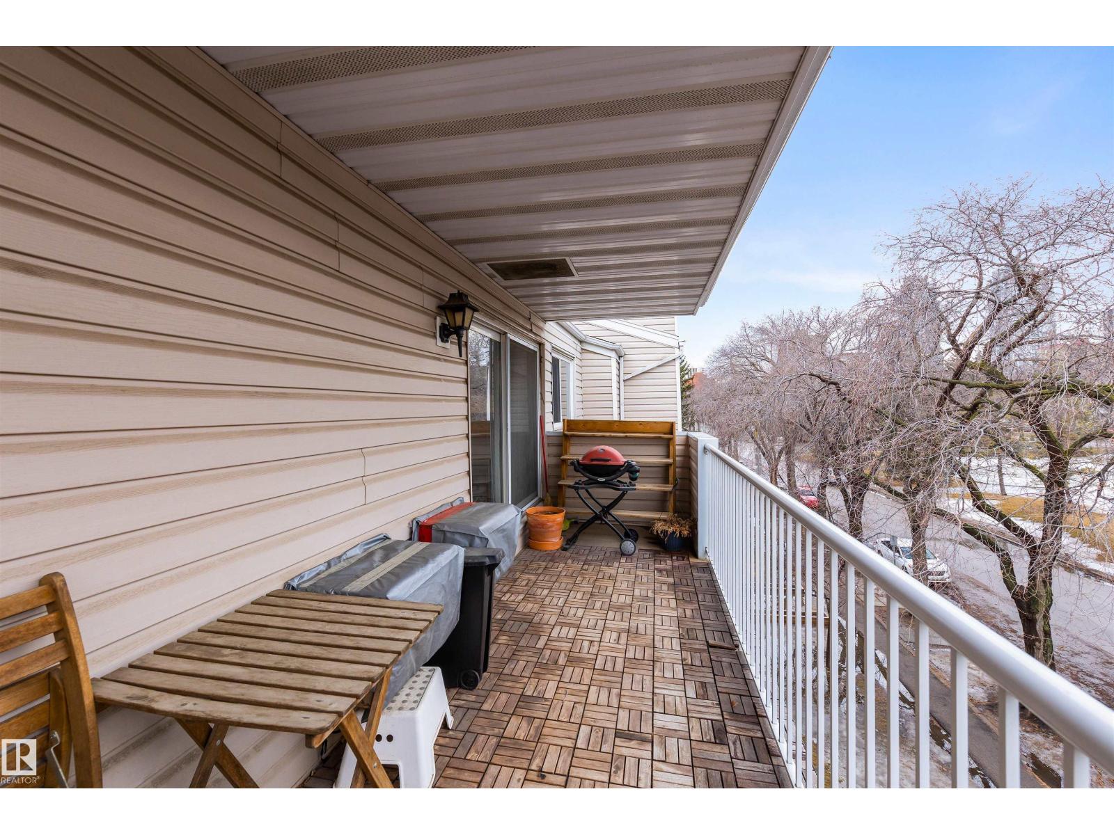 Discover this 1 bedroom, TOP FLOOR unit in a prime, central location. Nestled right ACROSS FROM THE PARK & just steps away from the vibrant Brewery District, this fantastic condo offers the perfect blend of comfort & convenience. This low-rise unit features an ELEVATOR, a west-facing balcony, a large primary bedroom w/ walk through closet & a spacious renovated 4-piece bathroom. The kitchen is an open concept w/ newer white cabinetry, GRANITE counters, s/s appliances & a breakfast bar. Convenient IN-SUITE LAUNDRY. There is an oversized living room + a dining/flex area, perfect for an at home office or additional entertaining area. Enjoy the outdoors on the impressive balcony & appreciate the security of a covered, titled parking stall. As a bonus, residents have access to the expansive 2nd floor sundeck. You’ll love being within walking distance to trendy restaurants, shopping, Rogers Place, public transit, the River Valley & more—all surrounded by charming tree-lined streets. (id:63190)