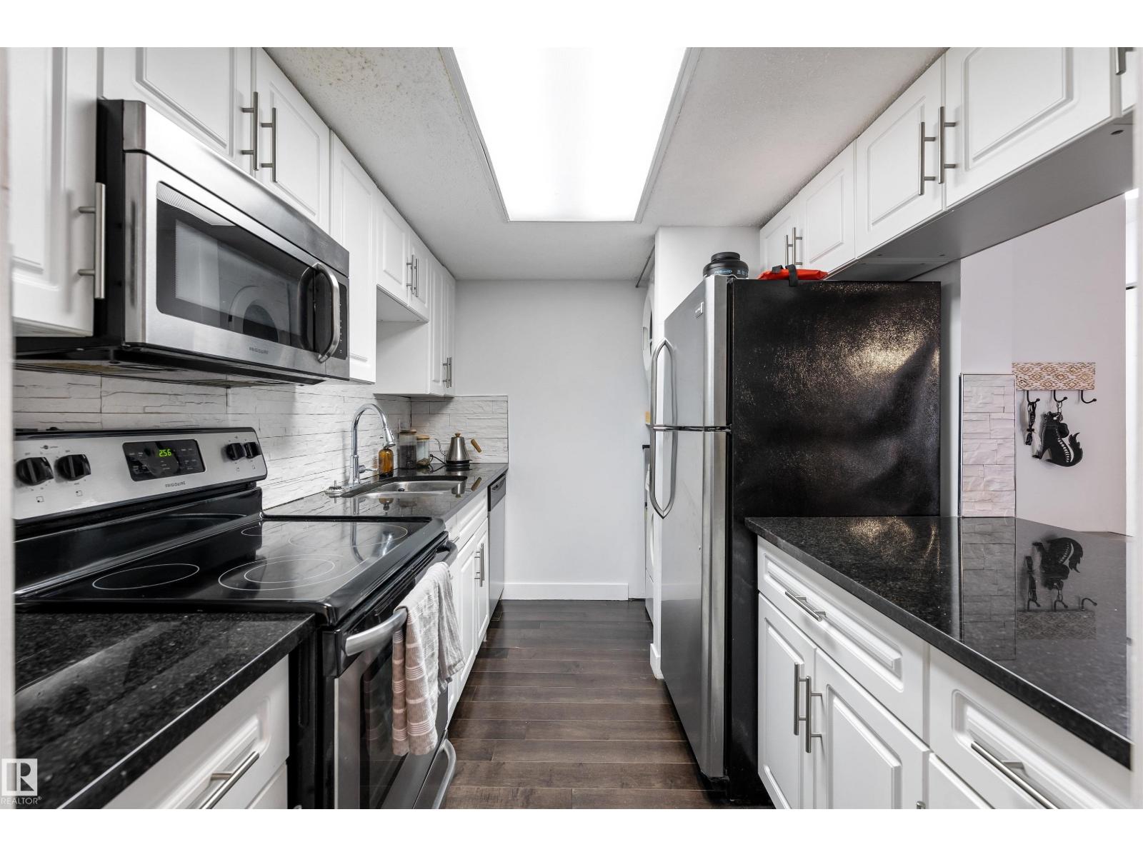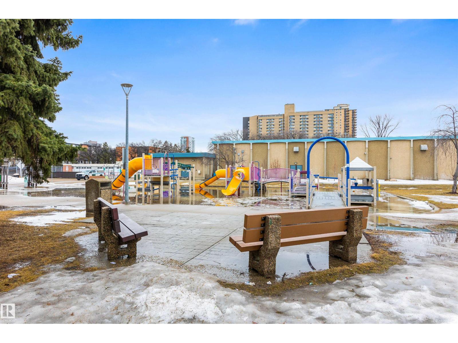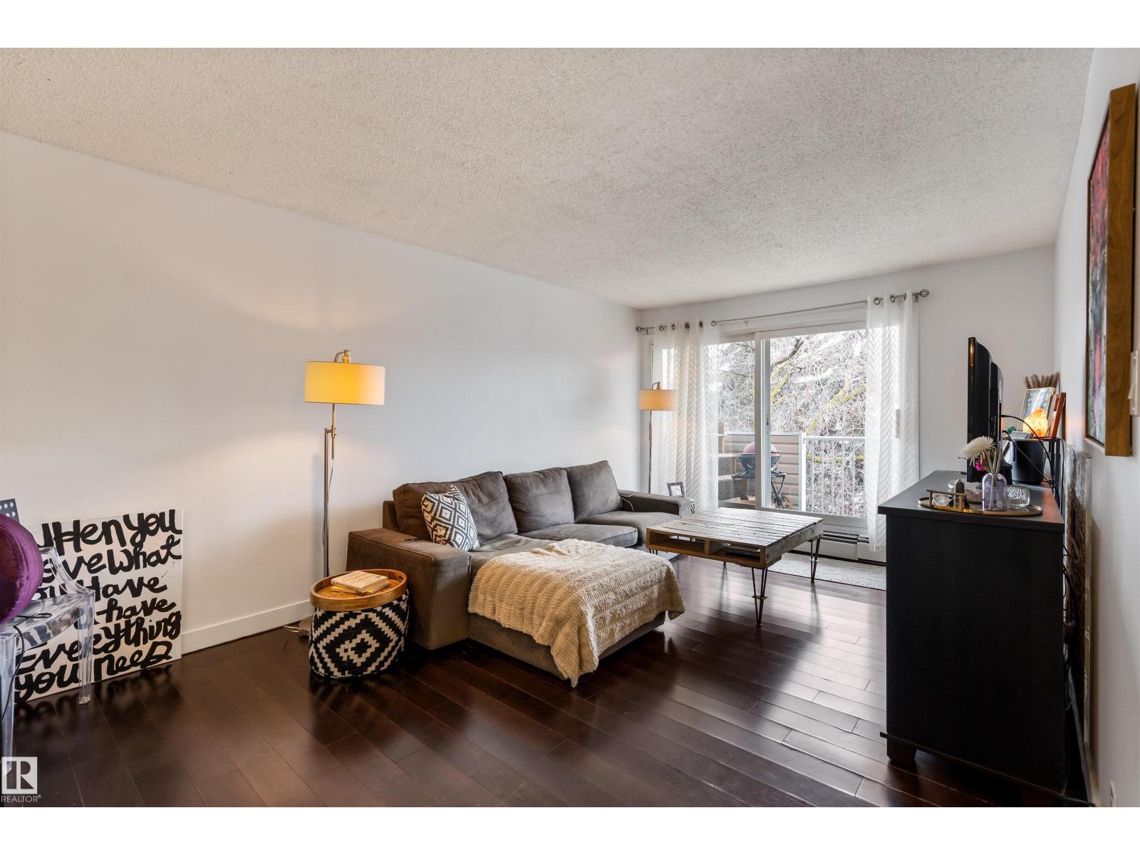 Discover this 1 bedroom, TOP FLOOR unit in a prime, central location. Nestled right ACROSS FROM THE PARK & just steps away from the vibrant Brewery District, this fantastic condo offers the perfect blend of comfort & convenience. This low-rise unit features an ELEVATOR, a west-facing balcony, a large primary bedroom w/ walk through closet & a spacious renovated 4-piece bathroom. The kitchen is an open concept w/ newer white cabinetry, GRANITE counters, s/s appliances & a breakfast bar. Convenient IN-SUITE LAUNDRY. There is an oversized living room + a dining/flex area, perfect for an at home office or additional entertaining area. Enjoy the outdoors on the impressive balcony & appreciate the security of a covered, titled parking stall. As a bonus, residents have access to the expansive 2nd floor sundeck. You’ll love being within walking distance to trendy restaurants, shopping, Rogers Place, public transit, the River Valley & more—all surrounded by charming tree-lined streets. (id:63190)