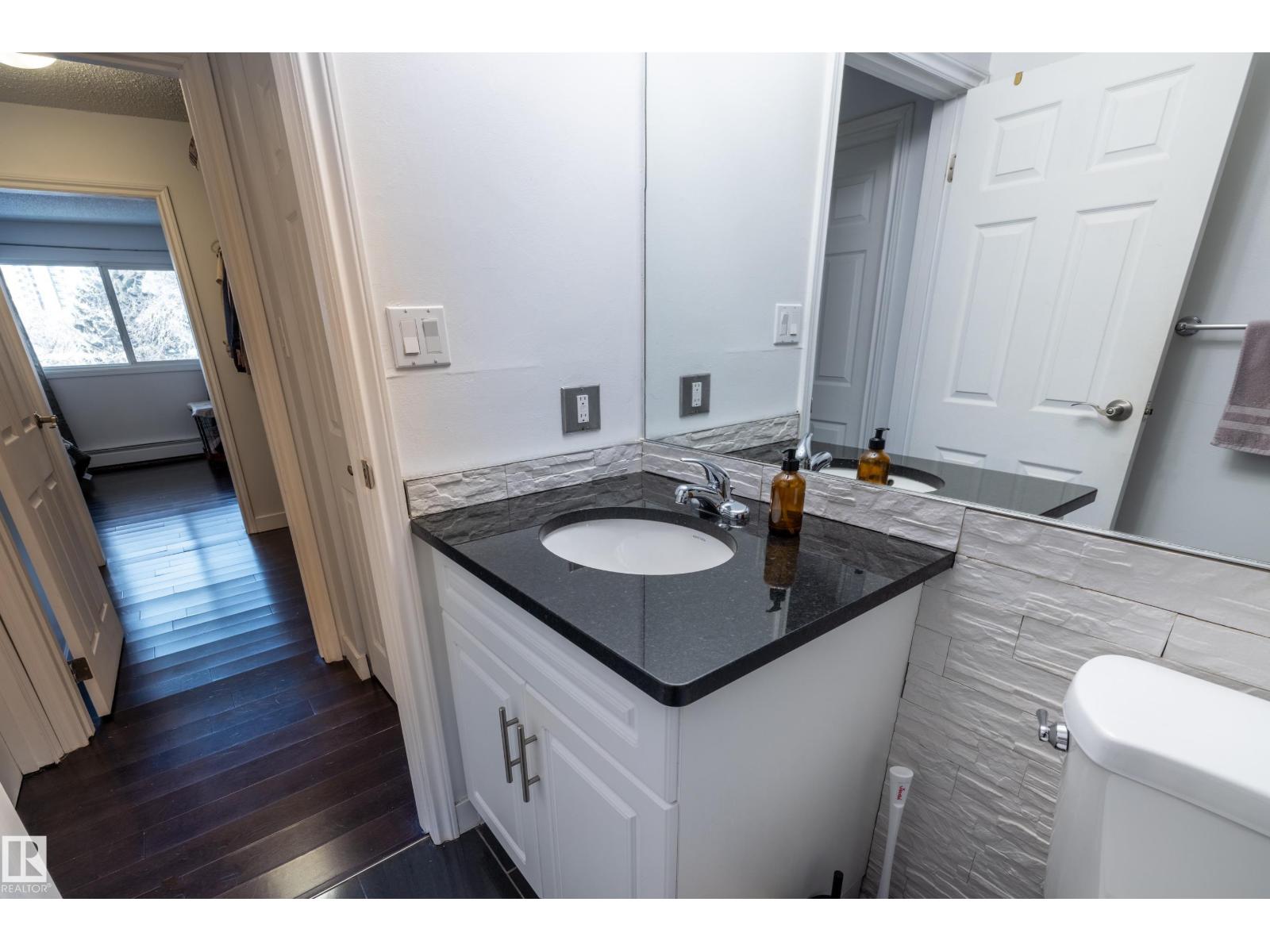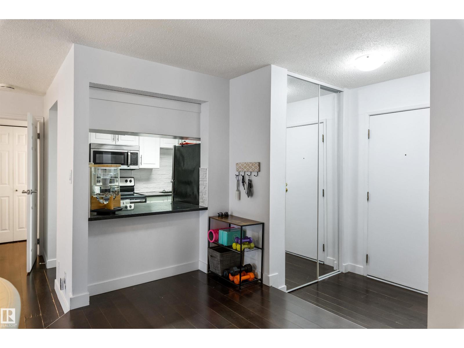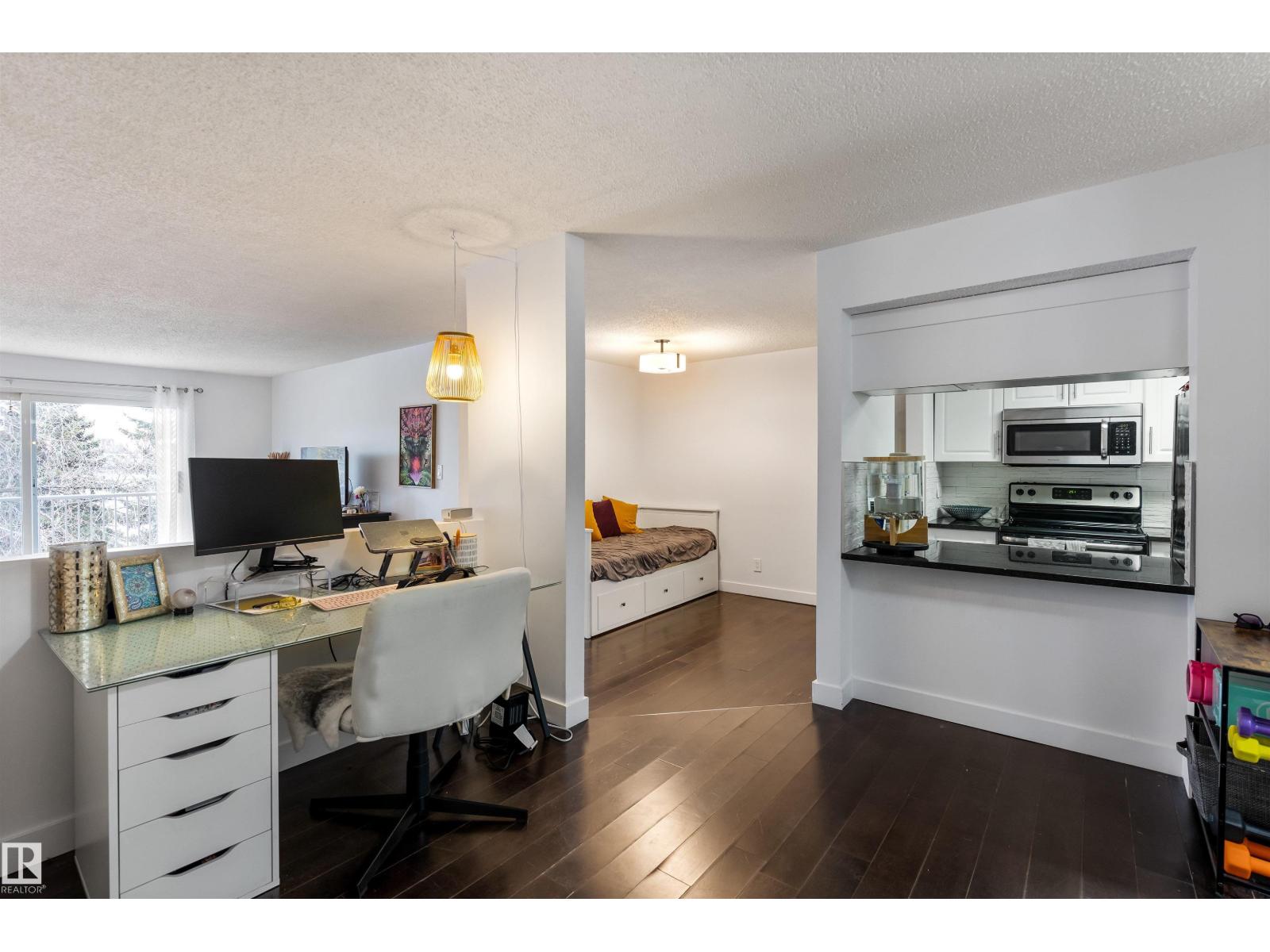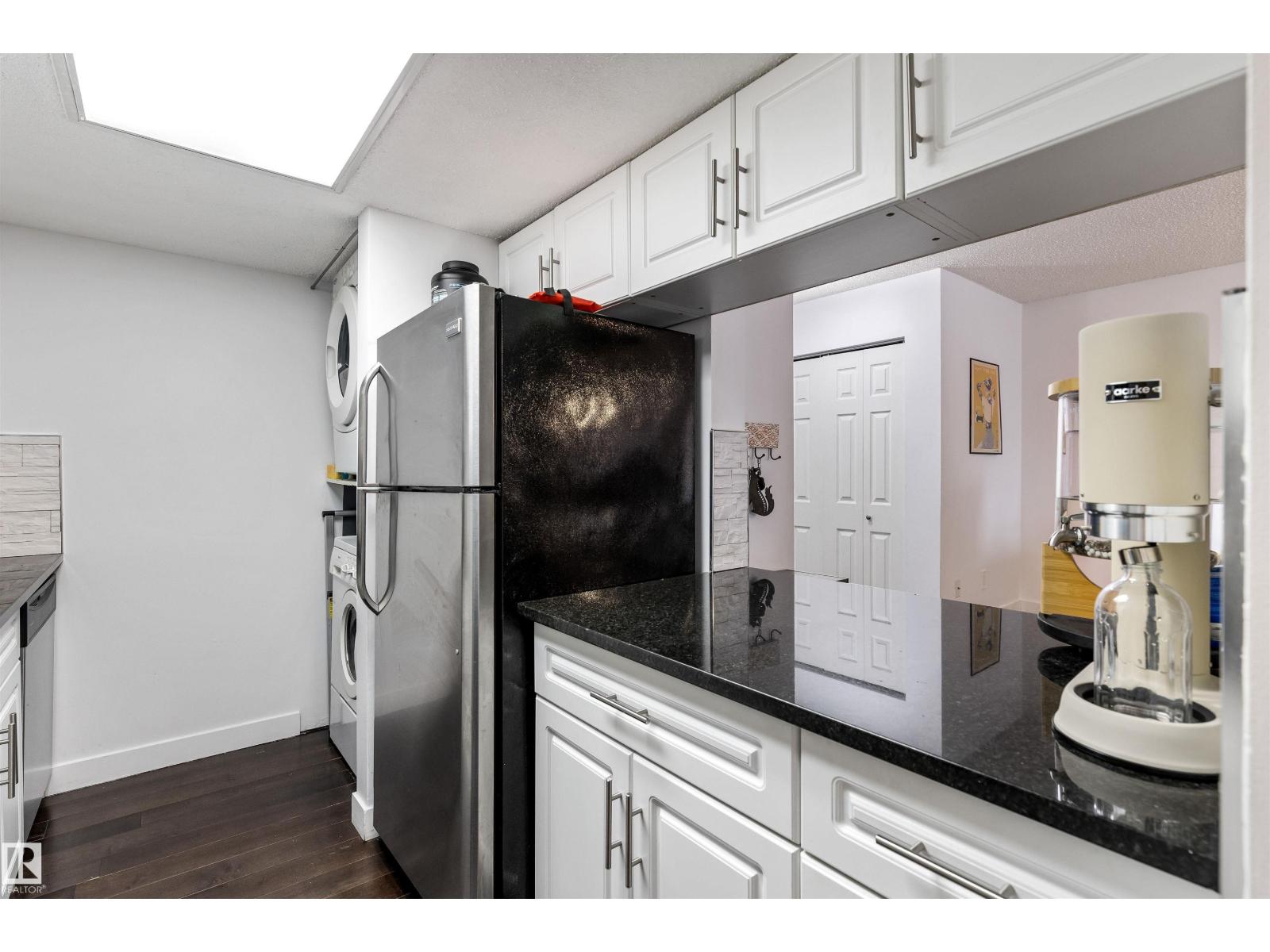 Discover this 1 bedroom, TOP FLOOR unit in a prime, central location. Nestled right ACROSS FROM THE PARK & just steps away from the vibrant Brewery District, this fantastic condo offers the perfect blend of comfort & convenience. This low-rise unit features an ELEVATOR, a west-facing balcony, a large primary bedroom w/ walk through closet & a spacious renovated 4-piece bathroom. The kitchen is an open concept w/ newer white cabinetry, GRANITE counters, s/s appliances & a breakfast bar. Convenient IN-SUITE LAUNDRY. There is an oversized living room + a dining/flex area, perfect for an at home office or additional entertaining area. Enjoy the outdoors on the impressive balcony & appreciate the security of a covered, titled parking stall. As a bonus, residents have access to the expansive 2nd floor sundeck. You’ll love being within walking distance to trendy restaurants, shopping, Rogers Place, public transit, the River Valley & more—all surrounded by charming tree-lined streets. (id:63190)