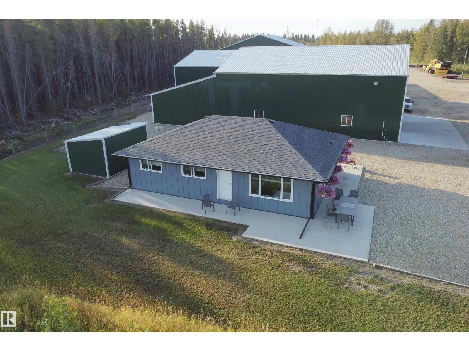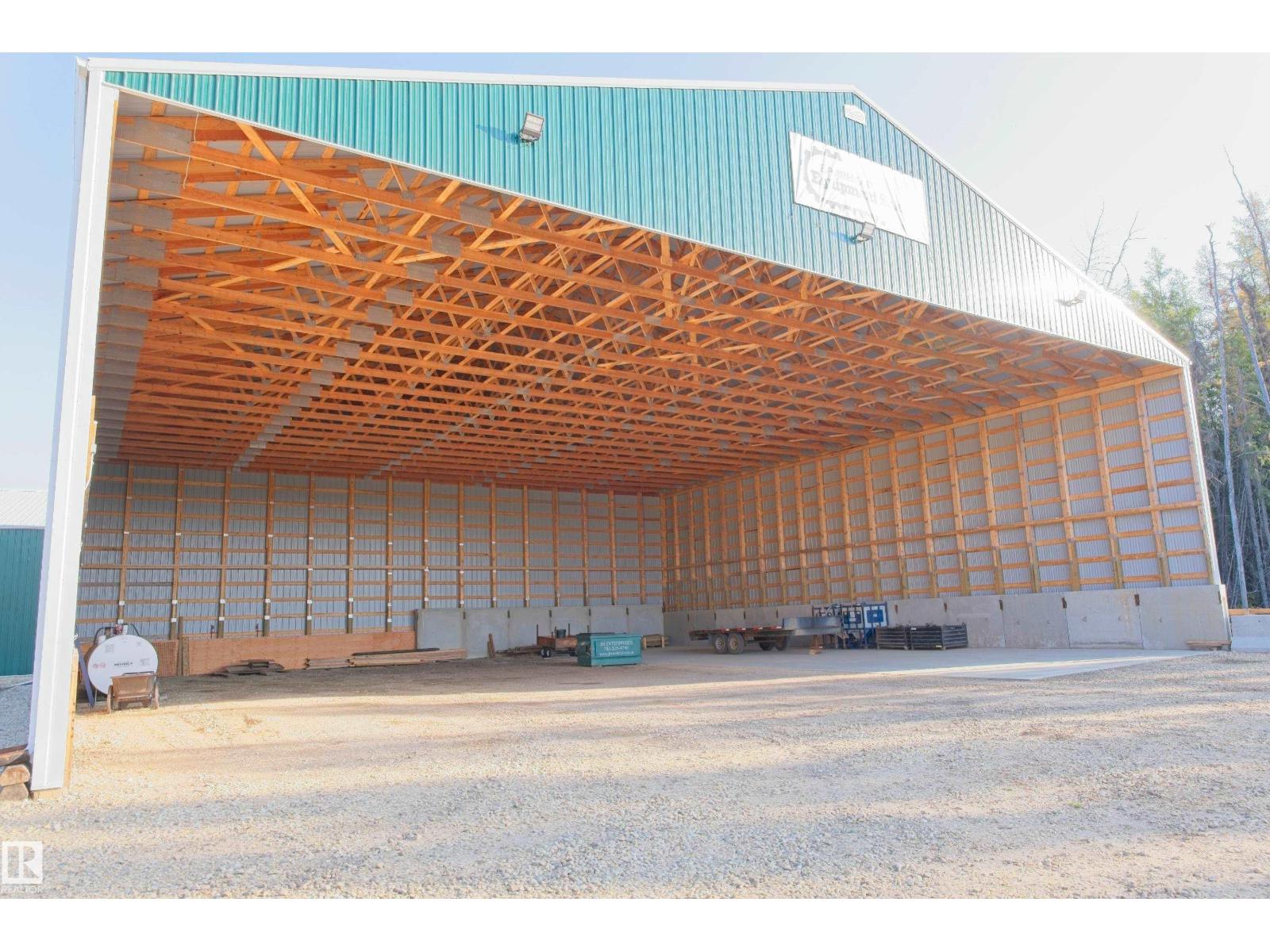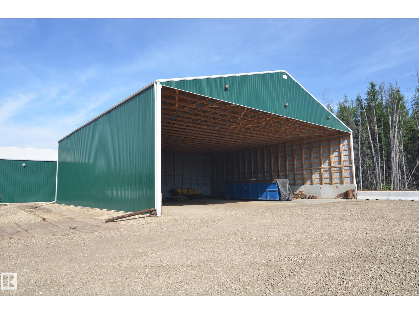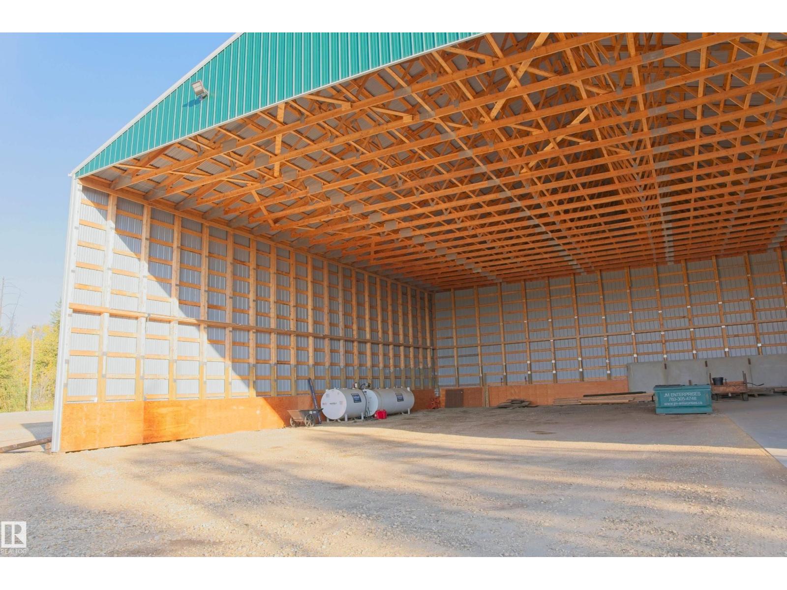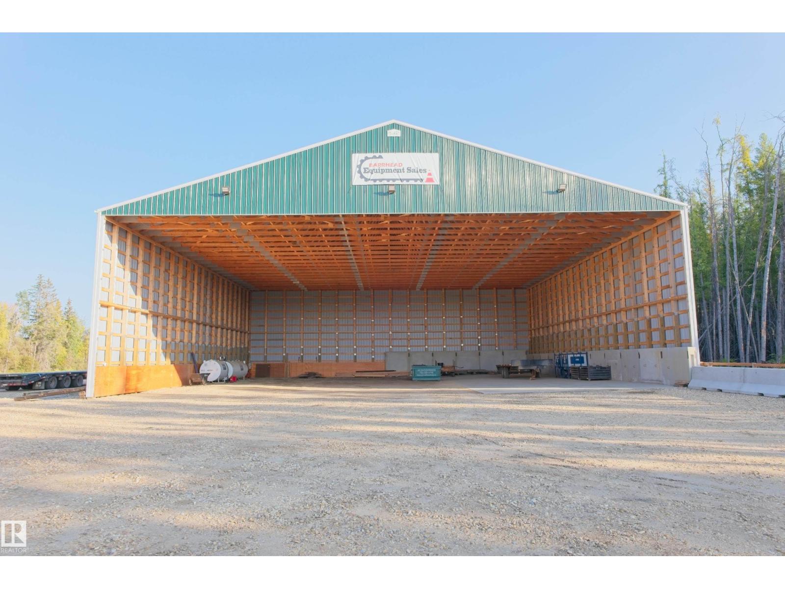 Exceptional Buildings & Structure capable of high capacity commercial applications & exposure on 80 acres along high exposure paved Highway 33 only 12 mi NW of Barrhead w/ quality Living Residence which could easily be converted to an office or base of operations as well. Modern Heated Shops include 54'x95' & 54'x96' plus 24' high wall 80'x80' Machine Shed (Seller Enclosing 4th Wall w/ OH Doors in 2026). Shops are high quality w/ excellent concrete, lined interior's, extensive power & electrical work along w/ bright lighting & flexible usage potential. 2 bedroom home features easy access, bright airy space & complete upgrades. 2.5 acres of heavily gravelled yard space features close to 100 truck loads of gravel, sloped drainage & underground water capture creating a yard capable of extra heavy equipment traffic & uninhibited usage. The 77 acres has been livestock fenced w/ pasturable lands freshly cleared, drained & seeded. Balance featuring mature old growth trees. Current Revenue Return. Must see!! (id:63190)