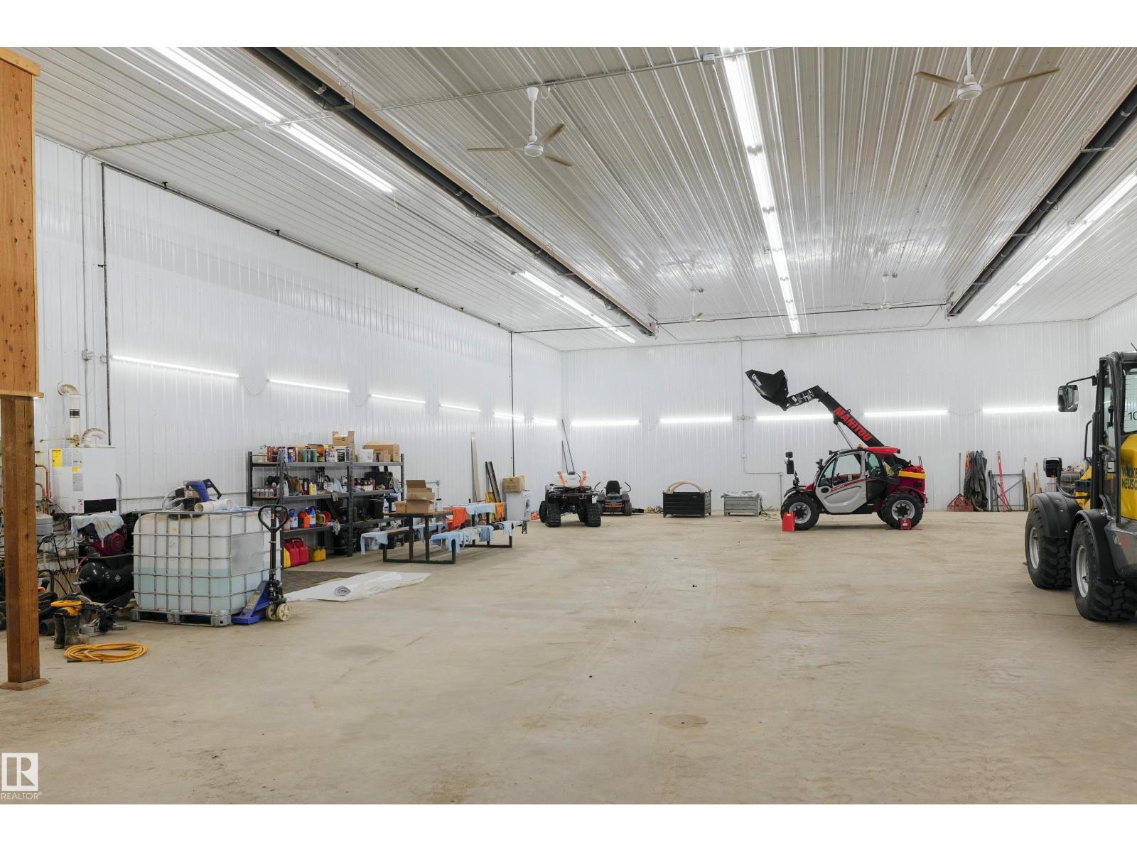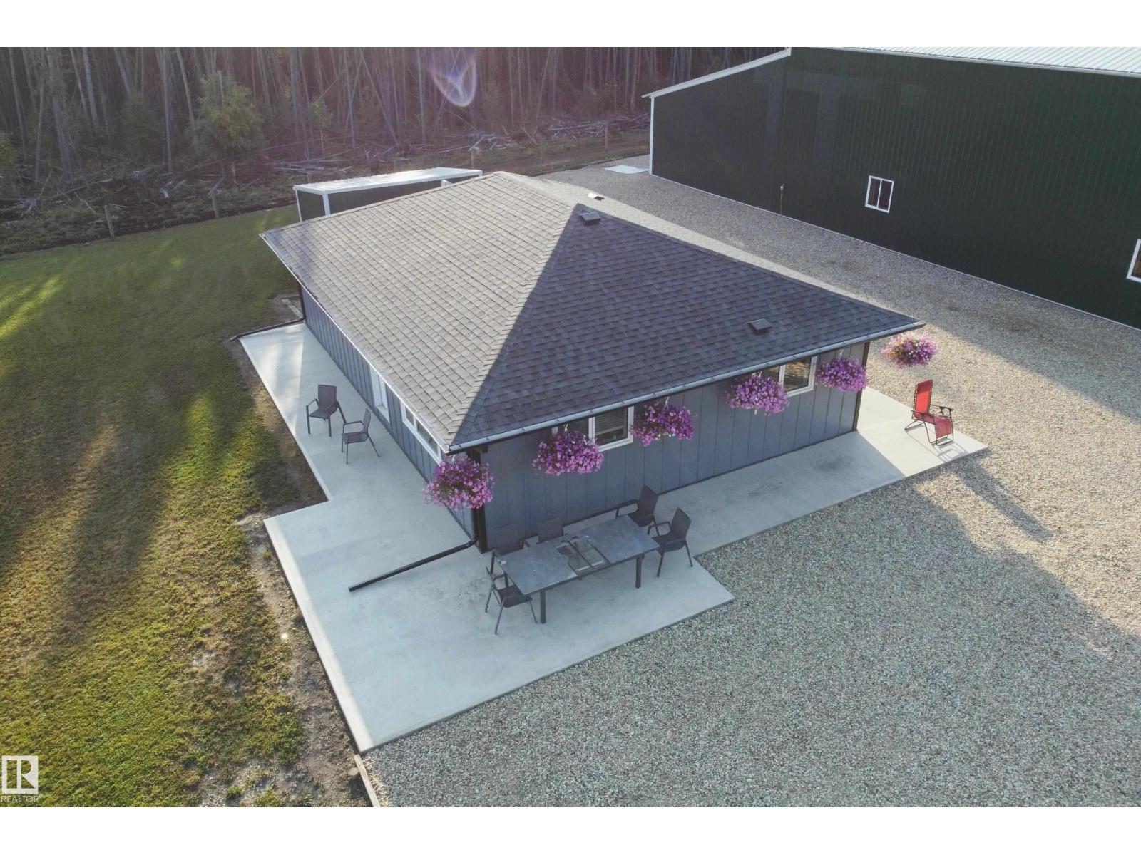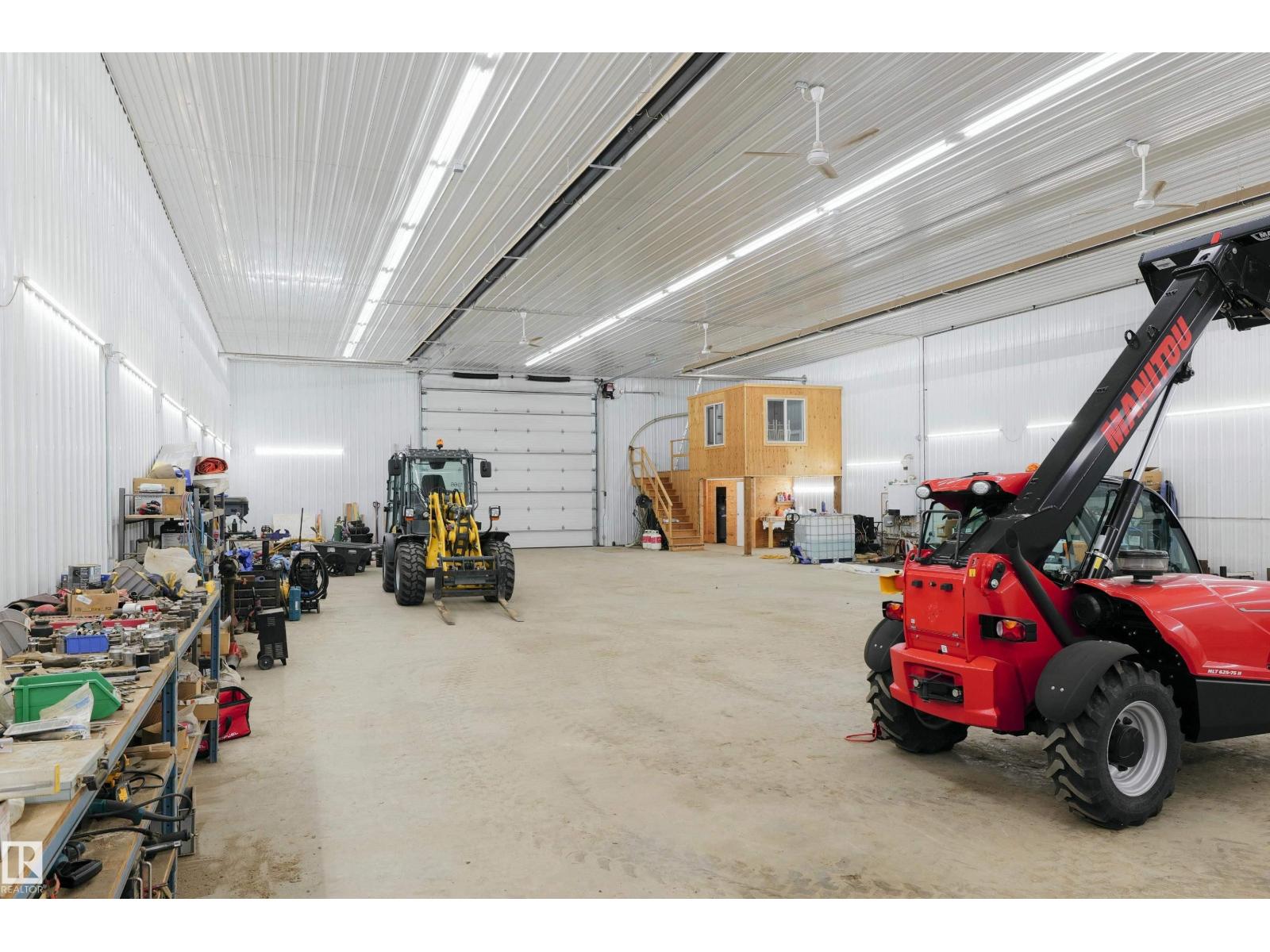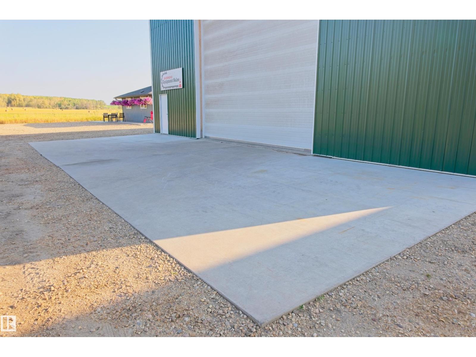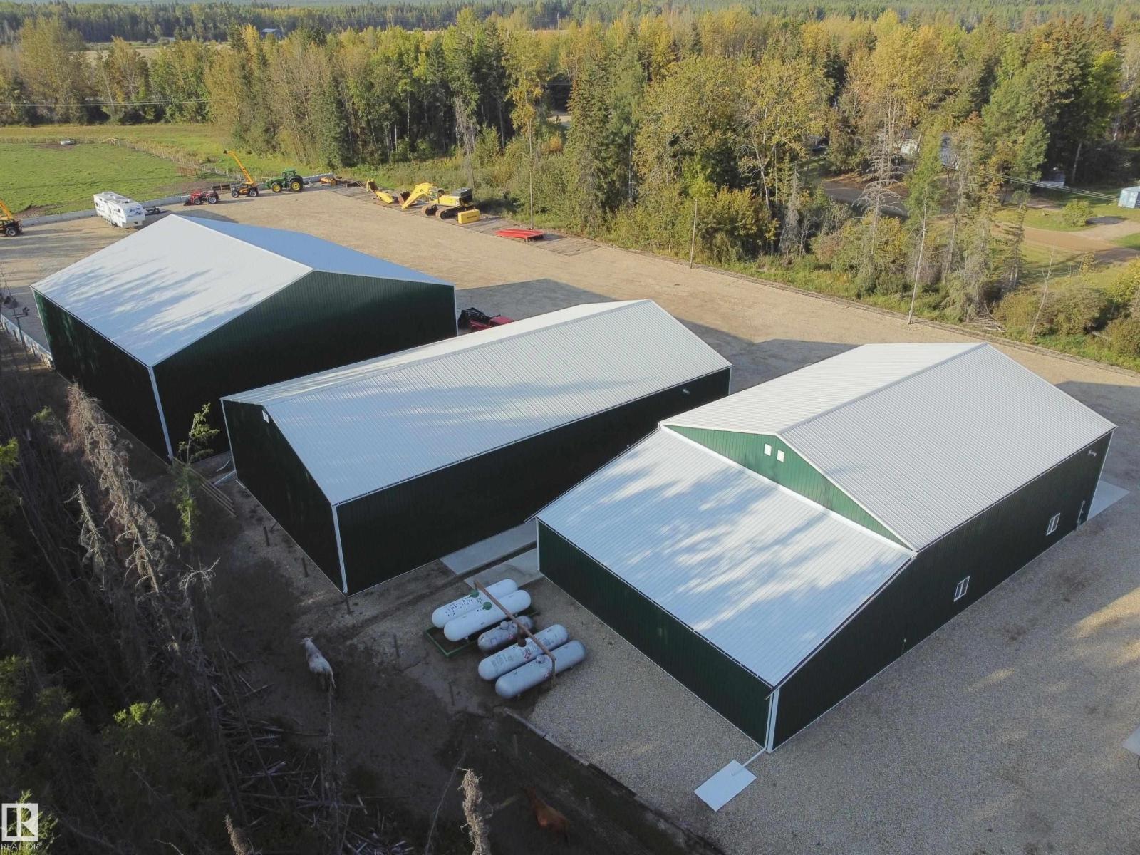 Exceptional Buildings & Structure capable of high capacity commercial applications & exposure on 80 acres along high exposure paved Highway 33 only 12 mi NW of Barrhead w/ quality Living Residence which could easily be converted to an office or base of operations as well. Modern Heated Shops include 54'x95' & 54'x96' plus 24' high wall 80'x80' Machine Shed (Seller Enclosing 4th Wall w/ OH Doors in 2026). Shops are high quality w/ excellent concrete, lined interior's, extensive power & electrical work along w/ bright lighting & flexible usage potential. 2 bedroom home features easy access, bright airy space & complete upgrades. 2.5 acres of heavily gravelled yard space features close to 100 truck loads of gravel, sloped drainage & underground water capture creating a yard capable of extra heavy equipment traffic & uninhibited usage. The 77 acres has been livestock fenced w/ pasturable lands freshly cleared, drained & seeded. Balance featuring mature old growth trees. Current Revenue Return. Must see!! (id:63190)