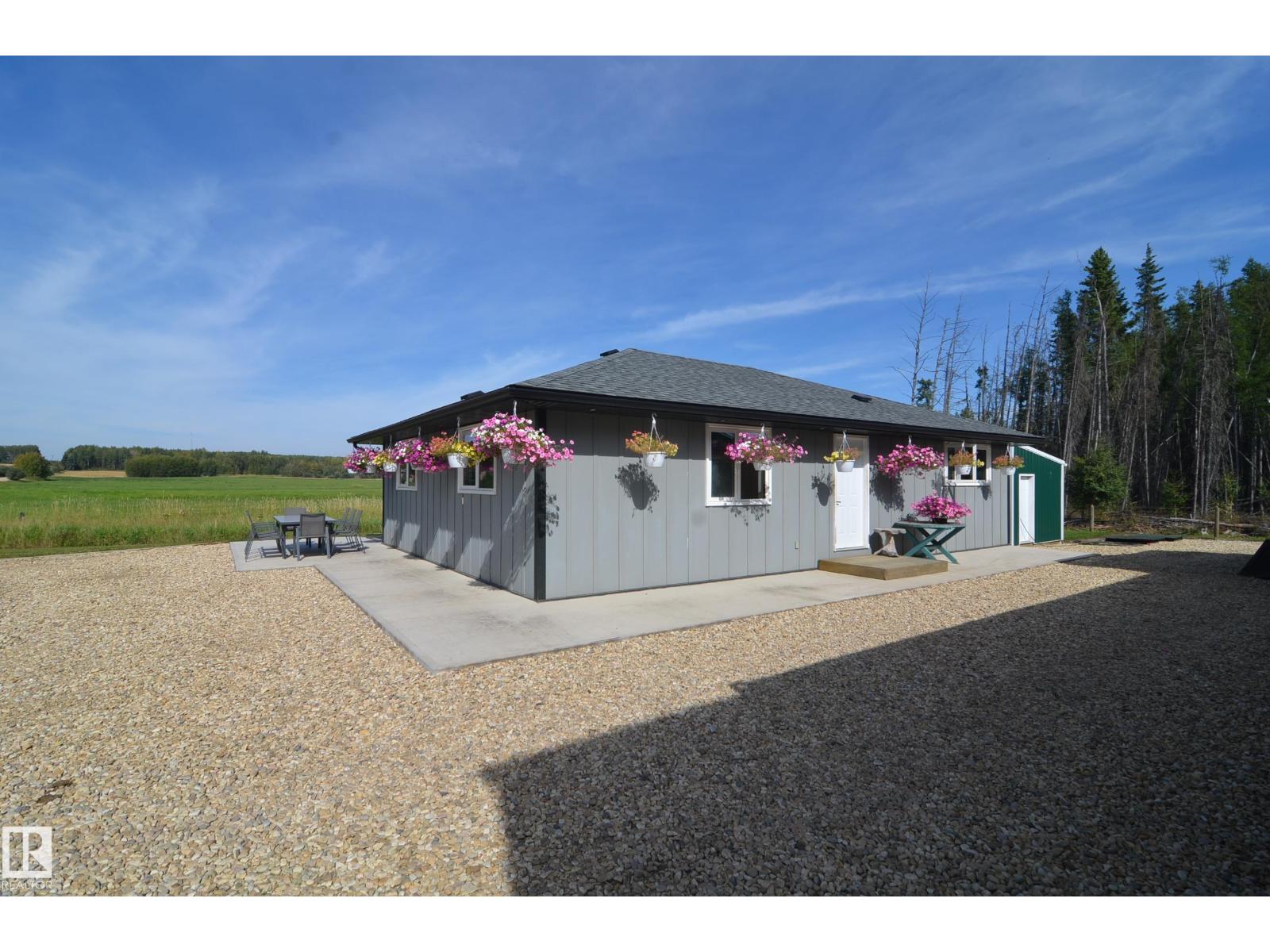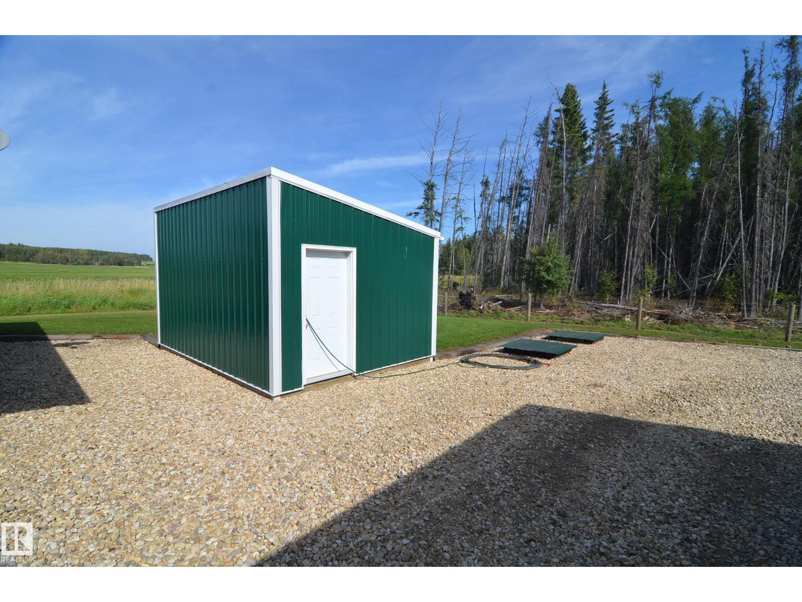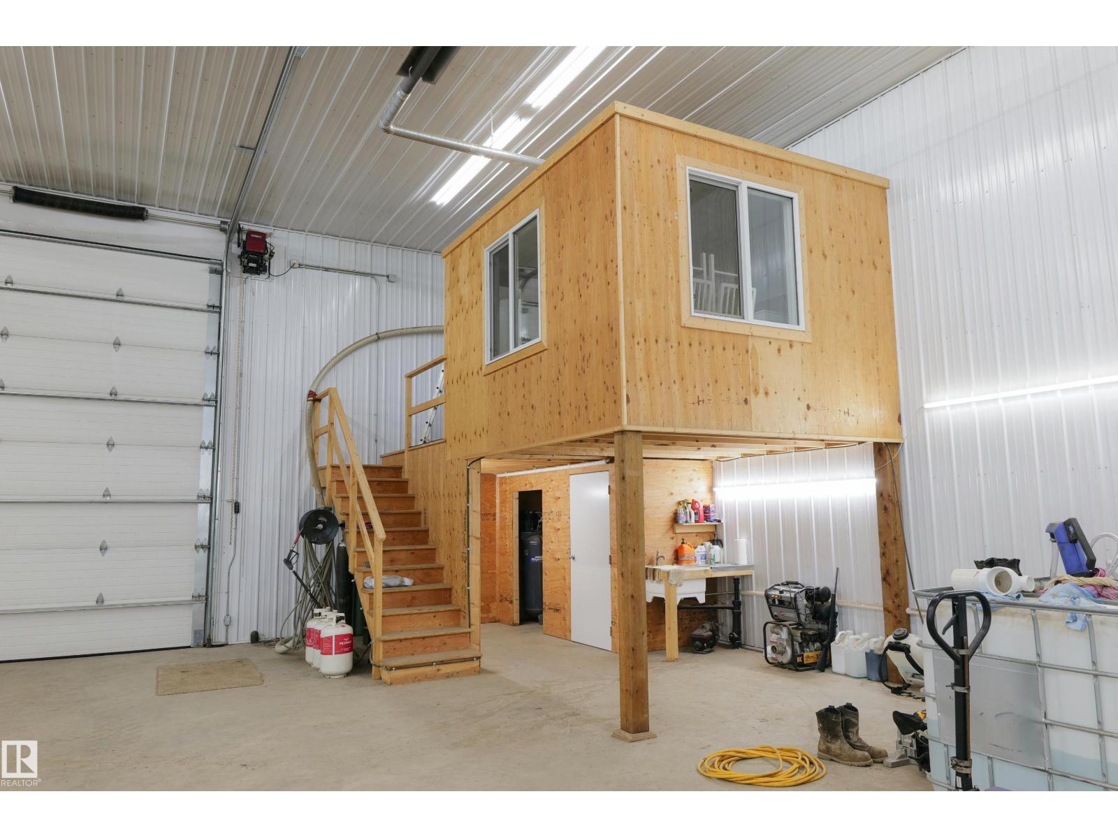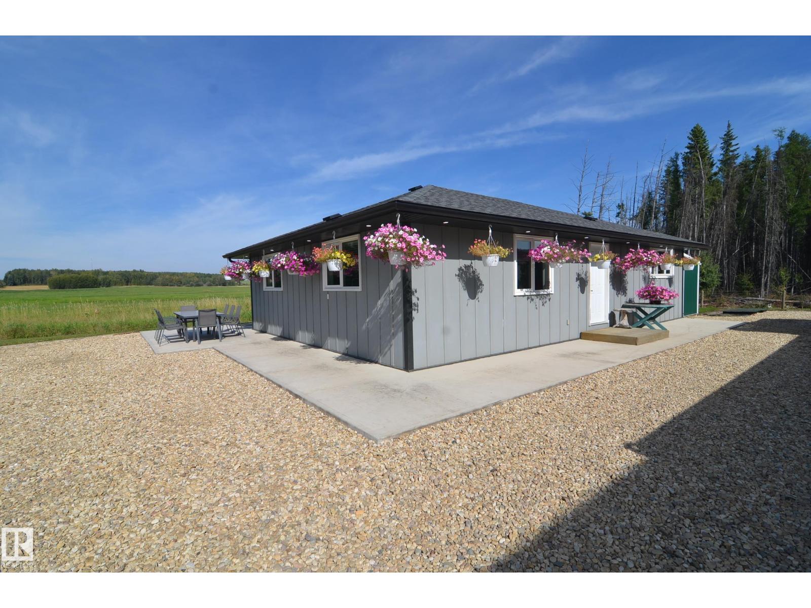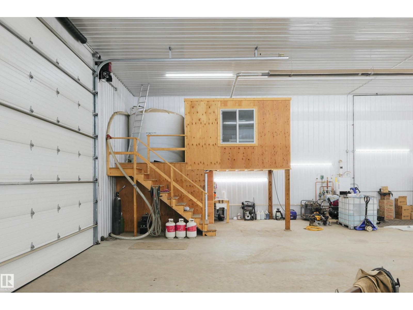Exceptional Buildings & Structure capable of high capacity commercial applications & exposure on 80 acres along high exposure paved Highway 33 only 12 mi NW of Barrhead w/ quality Living Residence which could easily be converted to an office or base of operations as well. Modern Heated Shops include 54'x95' & 54'x96' plus 24' high wall 80'x80' Machine Shed (Seller Enclosing 4th Wall w/ OH Doors in 2026). Shops are high quality w/ excellent concrete, lined interior's, extensive power & electrical work along w/ bright lighting & flexible usage potential. 2 bedroom home features easy access, bright airy space & complete upgrades. 2.5 acres of heavily gravelled yard space features close to 100 truck loads of gravel, sloped drainage & underground water capture creating a yard capable of extra heavy equipment traffic & uninhibited usage. The 77 acres has been livestock fenced w/ pasturable lands freshly cleared, drained & seeded. Balance featuring mature old growth trees. Current Revenue Return. Must see!! (id:63190)