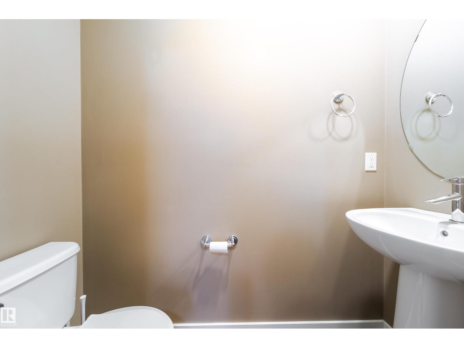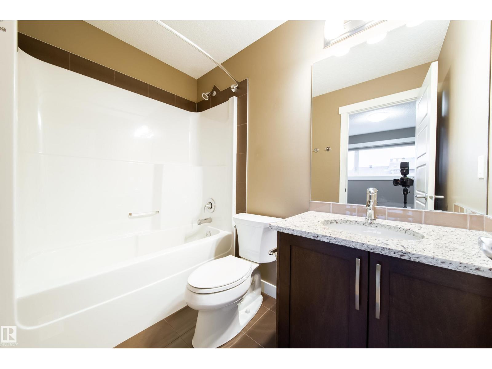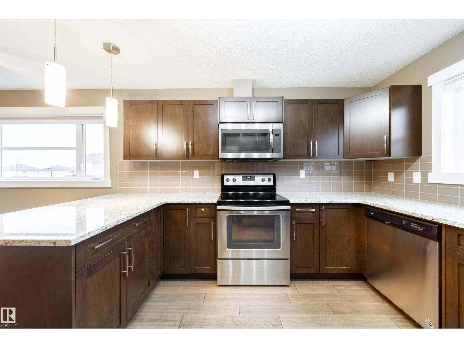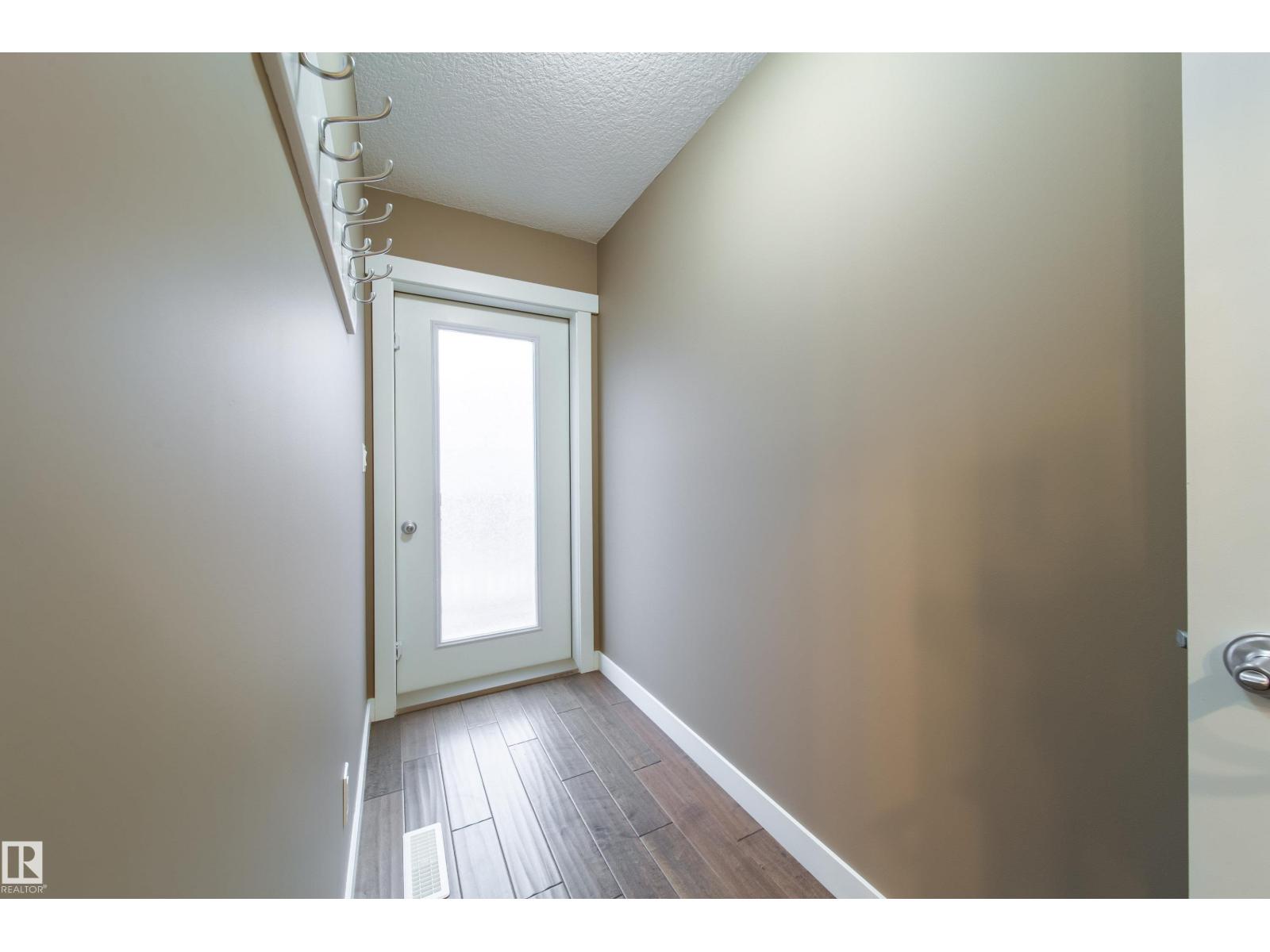 Perfect move in ready townhome in pristine condition. This 2 bed/3 bath END UNIT home is sure to impress! One of the best locations within the complex; in the center away from the busy roads and backing on to the courtyard. Freshly painted, with beautiful engineered hardwood floor on the main floor. Kitchen boasts dark cabinets, granite countertops (including an oversized eating area with room for stools) tiled backsplash and stainless steel appliances. BONUS half bath on main floor which many dont have. Upstairs features 2 large bedrooms, each with their own 4 pc ensuite and walk in closet. Laundry is also upstairs next to the bedrooms. Nice private deck out the back perfect for relaxing and enjoying the tranquility of the courtyard behind. OVERSIZED garage includes extra storage area in the furnace room as well as a little flex space for an extra work area. Plenty of visitor parking. Great location close to transit, highway 2 & 2A and the Edmonton International Airport. Immediate possession available. (id:63190)
