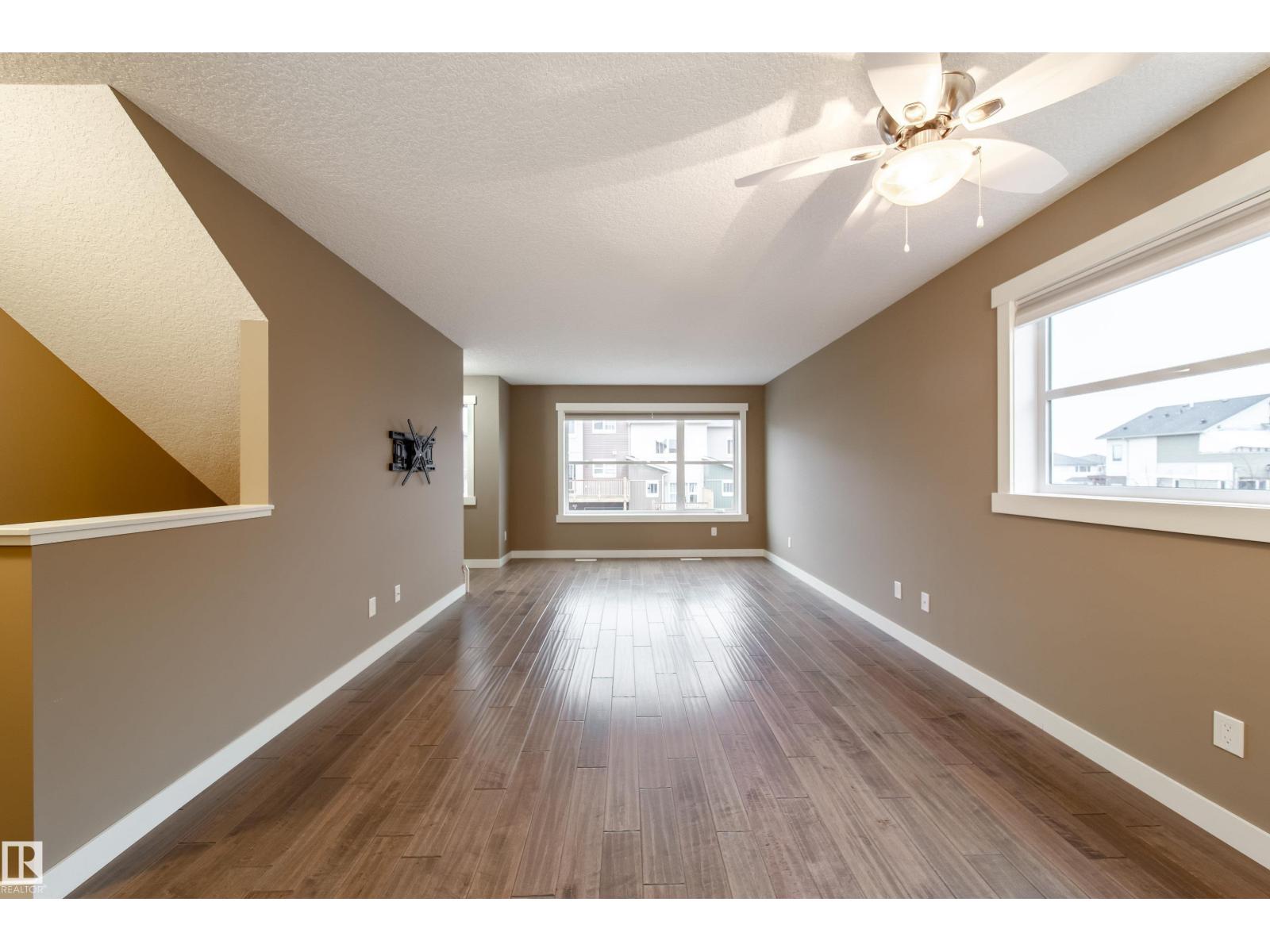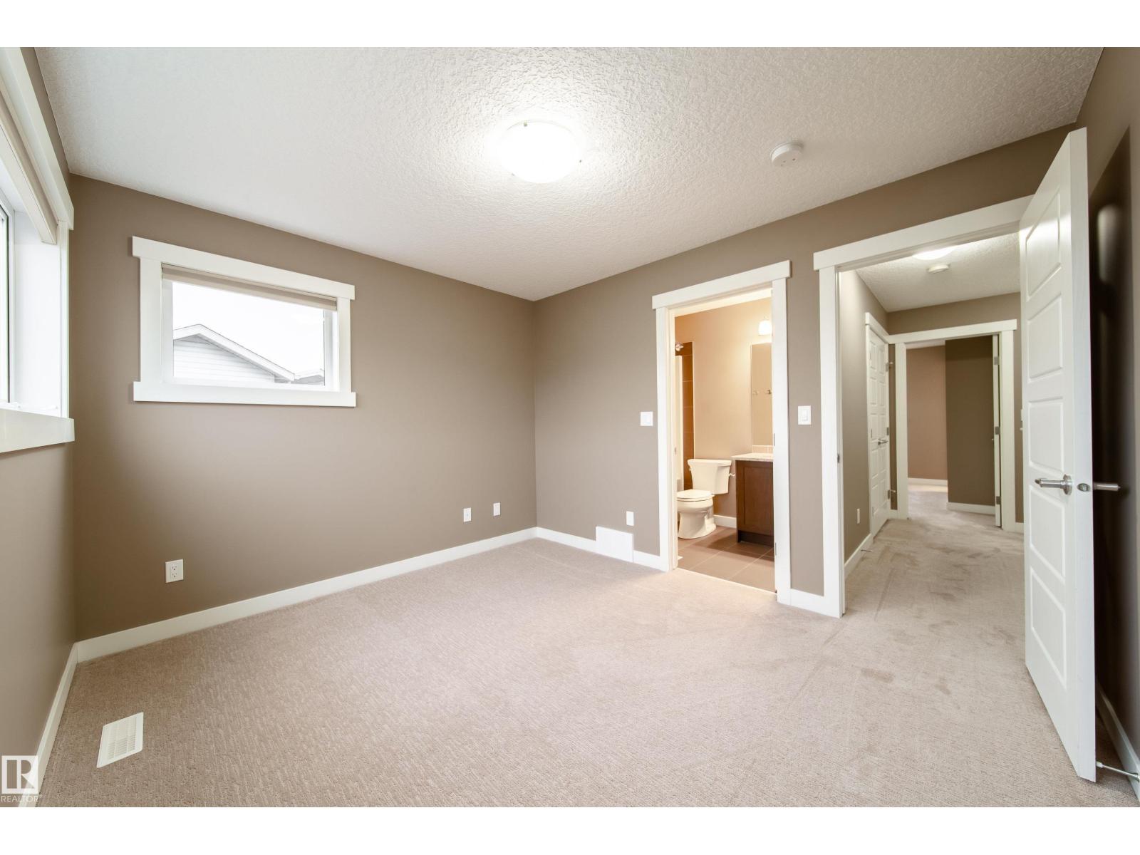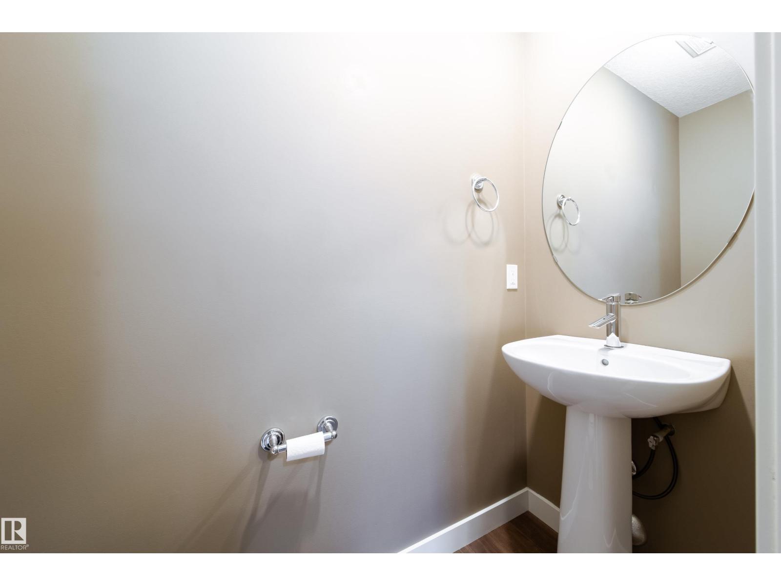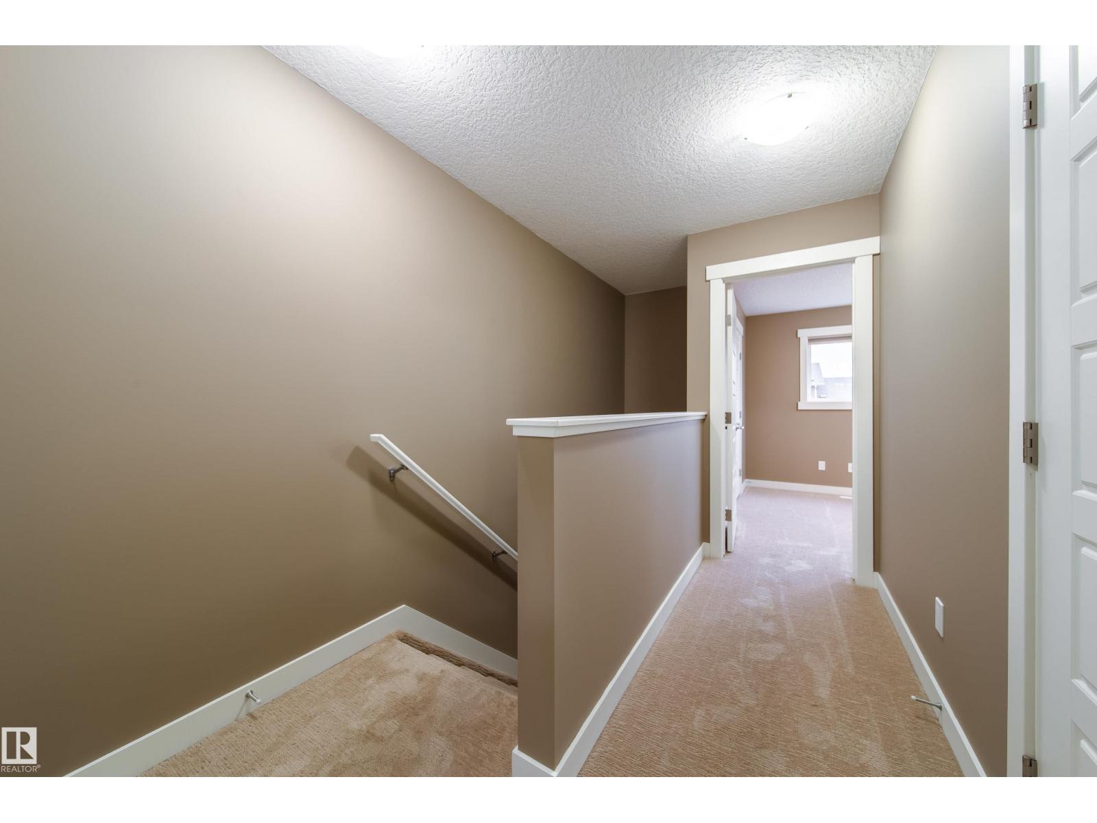 Perfect move in ready townhome in pristine condition. This 2 bed/3 bath END UNIT home is sure to impress! One of the best locations within the complex; in the center away from the busy roads and backing on to the courtyard. Freshly painted, with beautiful engineered hardwood floor on the main floor. Kitchen boasts dark cabinets, granite countertops (including an oversized eating area with room for stools) tiled backsplash and stainless steel appliances. BONUS half bath on main floor which many dont have. Upstairs features 2 large bedrooms, each with their own 4 pc ensuite and walk in closet. Laundry is also upstairs next to the bedrooms. Nice private deck out the back perfect for relaxing and enjoying the tranquility of the courtyard behind. OVERSIZED garage includes extra storage area in the furnace room as well as a little flex space for an extra work area. Plenty of visitor parking. Great location close to transit, highway 2 & 2A and the Edmonton International Airport. Immediate possession available. (id:63190)