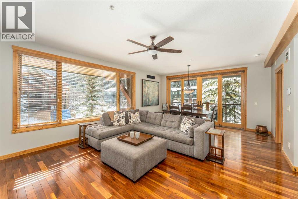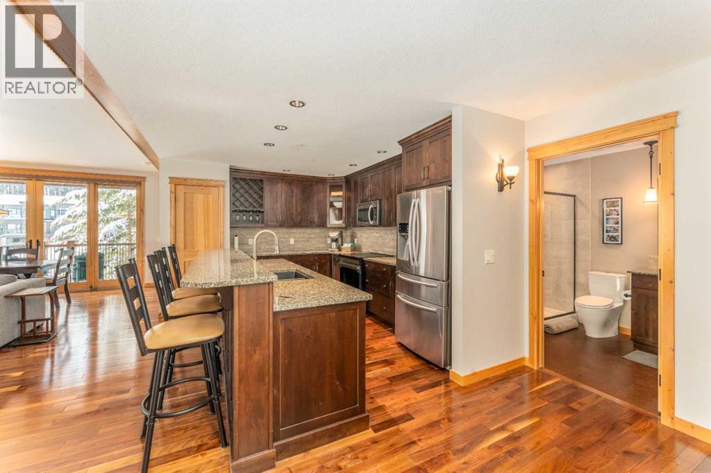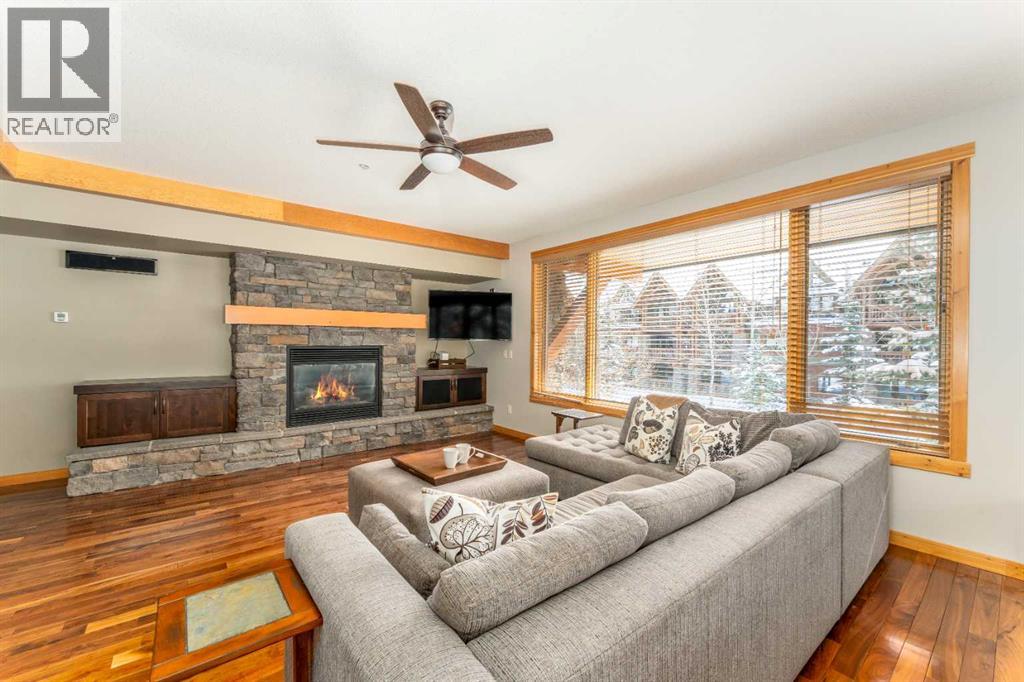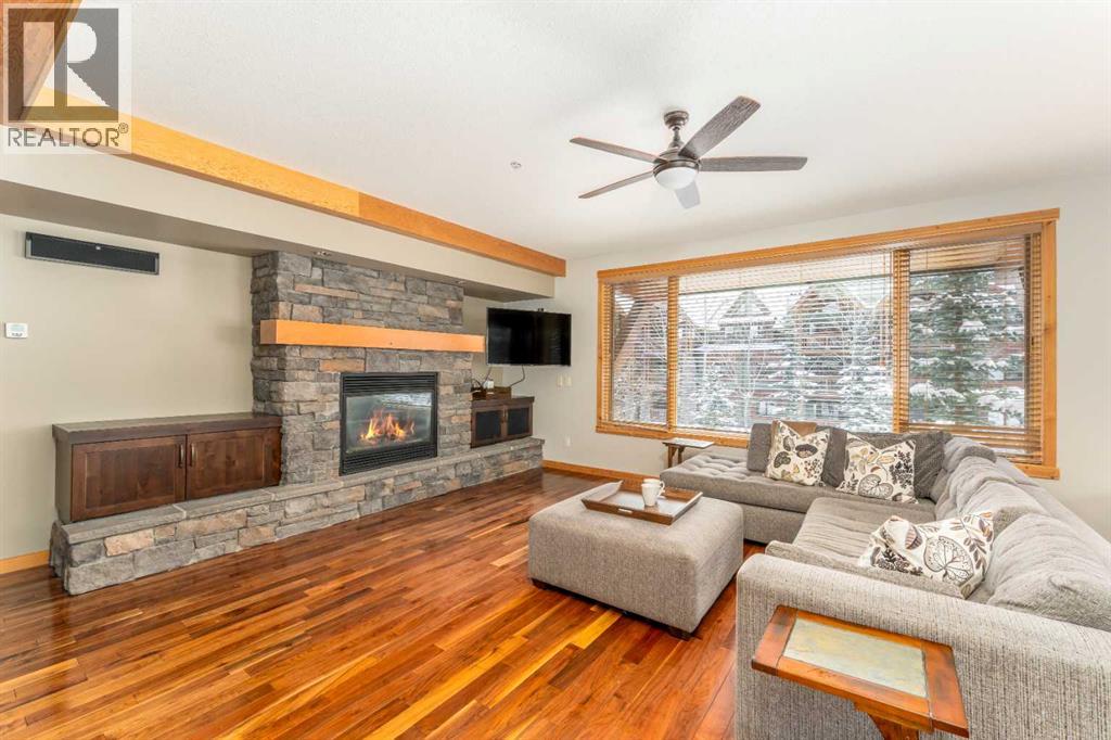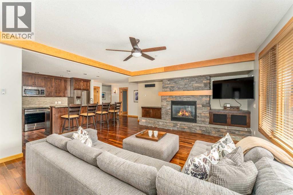 Discover elevated mountain living at Timberline Lodges in this beautifully finished 2-bedroom plus den corner suite. Designed with both comfort and style in mind, the bright open-concept layout creates a seamless flow throughout the home. The thoughtfully designed chef’s kitchen features sleek granite countertops, quality stainless steel appliances, and ample prep space, opening effortlessly into the spacious living area. Here, a dramatic Rundle stone gas fireplace sets a warm and inviting tone, offering an ideal setting to unwind or host in style.Enjoy meals in the dining area framed by a wall of sliding glass doors that lead to your oversized covered balcony, a private outdoor retreat positioned to capture snow-capped views while offering a tranquil sense of seclusion. The generous primary bedroom serves as a peaceful escape, complete with a walk-in closet and a spa-inspired five-piece ensuite with double vanity. Situated on the opposite side of the suite, the second bedroom provides excellent privacy for family or visitors. A versatile den adds flexibility as a home office, reading space, or potential third sleeping area.Additional highlights include in-suite laundry, heated underground parking, and a separate storage locker. Timberline Lodges residents enjoy exceptional amenities such as an indoor pool, hot tubs, fitness centre, theatre room, and a beautifully appointed Great Room ideal for social gatherings. Surrounded by landscaped pathways, scenic trails, and the acclaimed Stewart Creek Golf Course, this home offers the perfect balance of adventure and serenity. The nearby Three Sisters Village Gateway commercial district, with planned shops, restaurants, a liquor store, and grocery options, will further enhance the convenience of this already exceptional mountain lifestyle. (id:63190)