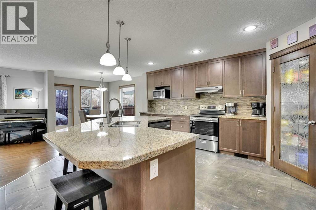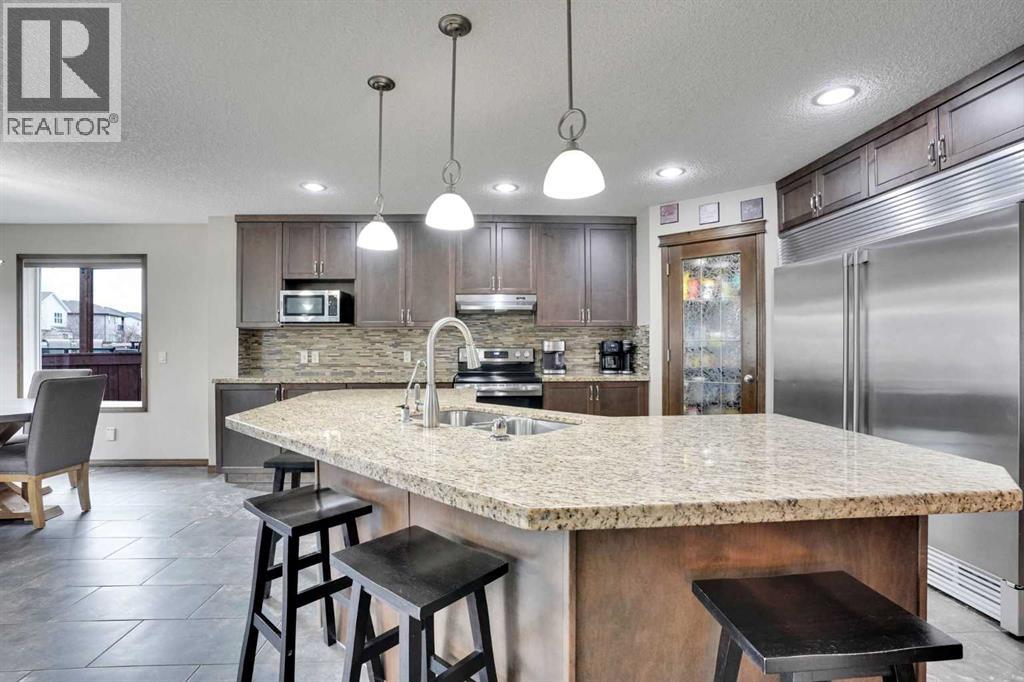 Exceptional 6 bedroom family estate in the highly sought-after community of Coopers Crossing in Airdrie, offering over 3,600 sq ft of beautifully developed living space on a private pie-shaped lot with a sunny southeast facing backyard. This home is loaded with premium upgrades and thoughtful features including solid maple doors throughout, soundproofed and insulated interior walls and floors, central A/C (2023), commercial-grade hot water tank (2024), 2 furnaces and humidifiers (cleaned Feb 2026), new carpet (Oct 2025), SMART home with centralized media/network hub, and wired security system. Designed for both everyday comfort and upscale entertaining, the main floor showcases a formal dining room behind elegant double French doors, a warm and inviting living space with a fireplace, and an abundance of windows that flood the home with natural light. The thoughtfully designed layout includes a walk-through pantry connecting the spacious mudroom/laundry area to the kitchen, making daily living seamless and functional. The chef-inspired kitchen is a true highlight, showcasing extended height cabinetry, a large centre island, and granite countertops, along with premium appliances including a commercial-grade double fridge/freezer and Kinetico water softener & mini Mac drinking system. Upstairs, you’ll find 4 generously sized bedrooms including a stunning primary retreat with vaulted ceilings, walk-in closet, and a luxurious 5 piece ensuite. A spacious bonus room completes the upper level, perfect for family movie nights or a kids’ retreat. The fully finished basement is an entertainer’s dream, featuring a large recreation room, wet bar with fridge and wine cooler, 2 additional bedrooms, and a full bathroom, ideal for guests, teens, or multi-generational living. Low maintenance front and backyard, sunny, equipped with underground sprinklers and a double deck with natural gas BBQ hookup, tall trees line three sides for extra privacy. Front attached garage is heated, whil e the extra-wide triple driveway offers additional parking. Brick paver pathways add to the home’s impressive curb appeal. Located in one of Airdrie’s most prestigious communities, you are just minutes from Cooper’s Crossing School (K-4), St. Veronica School, and nearby access to W.H. Croxford High School. Enjoy convenient shopping at Cooper’s Town Promenade, with easy access to grocery stores, restaurants, and everyday amenities. Commuters will appreciate quick connections to Yankee Valley Boulevard, 8 Street SW, and Highway 2, making travel to Calgary effortless. This is a rare opportunity to own a meticulously maintained, feature-rich home in a prime location delivering space, privacy, and luxury for the modern family. (id:63190)