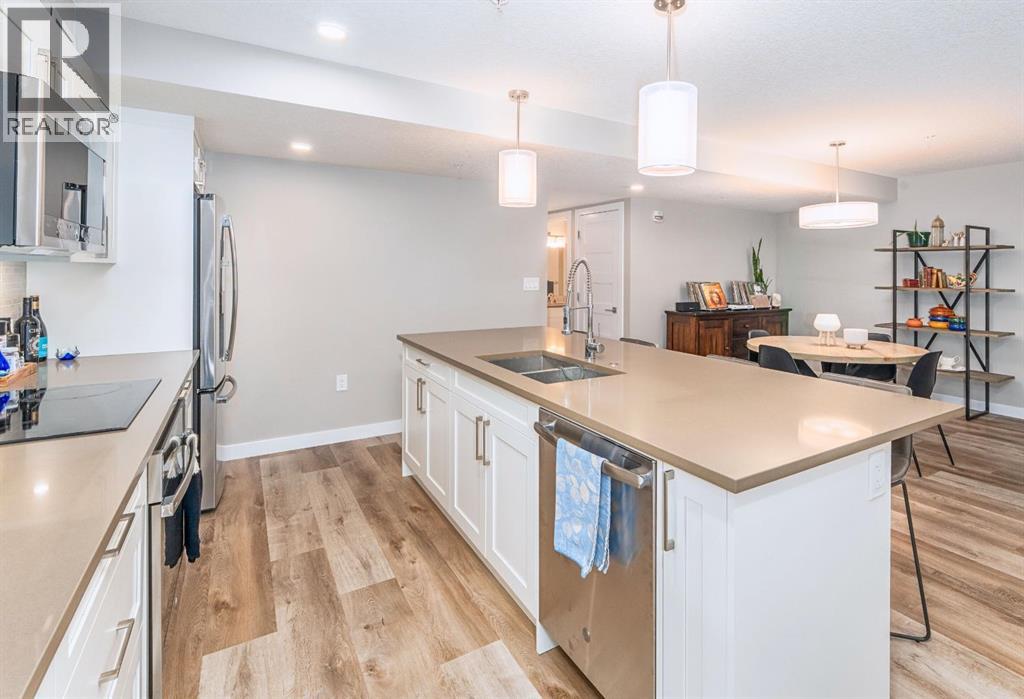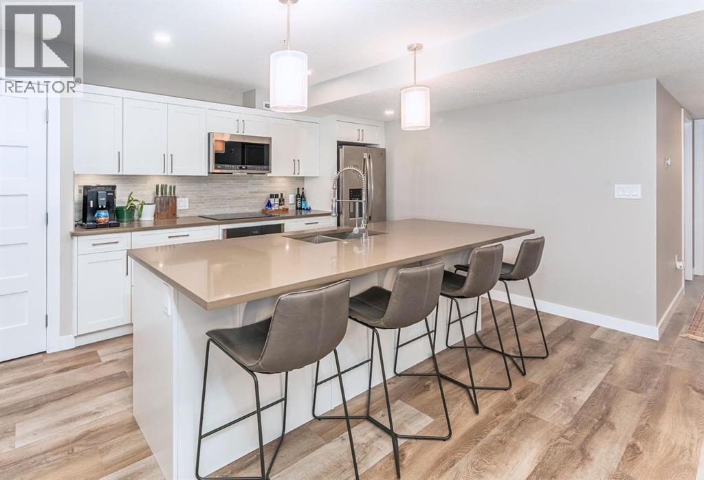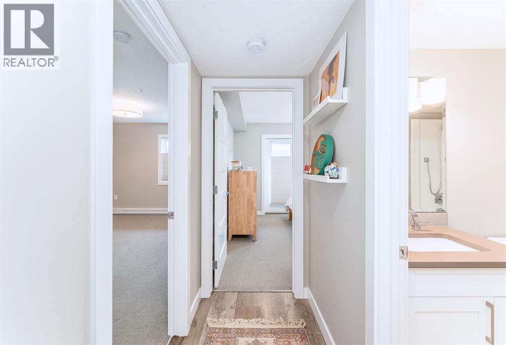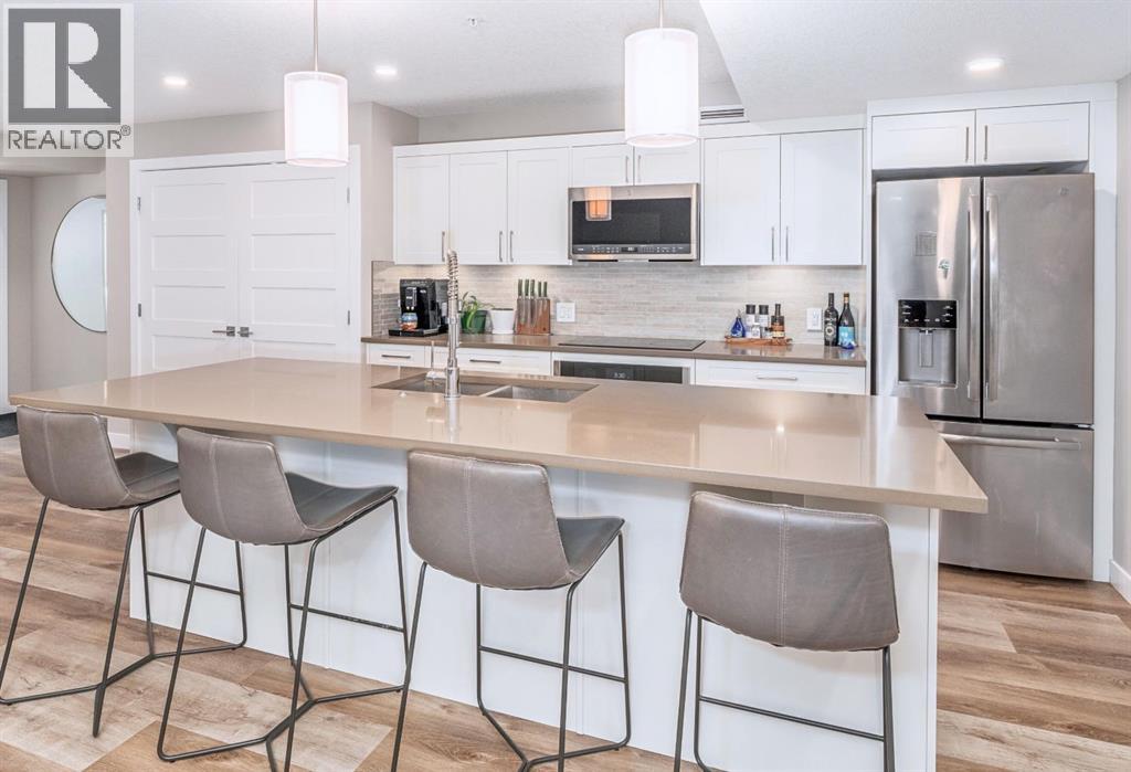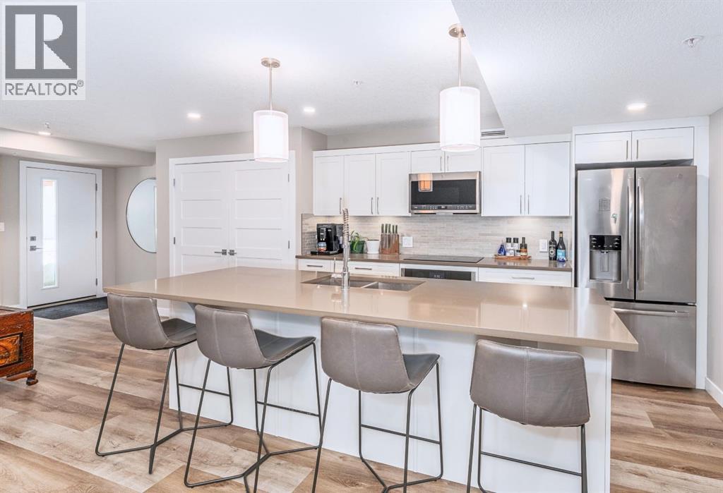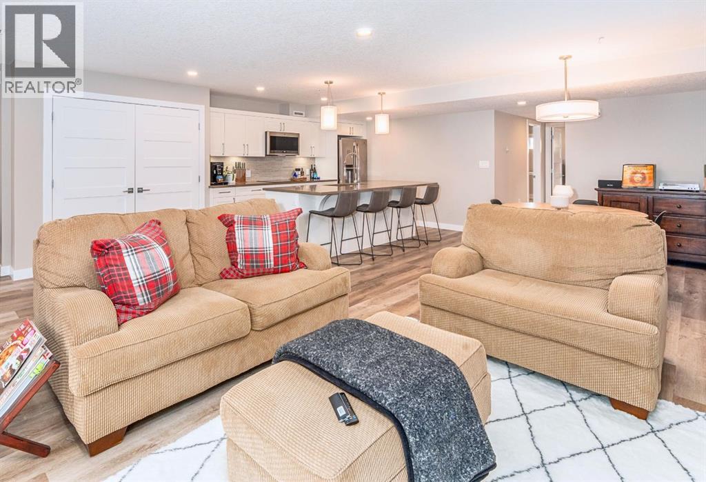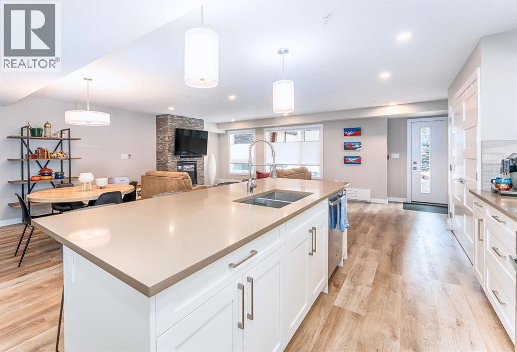 In the heart of Canmore, surrounded by the breathtaking peaks of the Canadian Rocky Mountains, this beautifully appointed two-bedroom, two-bathroom home offers an exceptional blend of modern serenity and vibrant mountain town living. Ideally situated just half a block from downtown, this home invites you to embrace a lifestyle where every convenience is only a short stroll away. Just steps outside your door you can immerse yourself in Canmore’s dynamic and welcoming community—where charming art galleries, boutique yoga studios, the Canmore Public Library, and the renowned artsPlace Canmore create a rich cultural backdrop. Indulge in locally roasted coffee, explore artisan shops, or unwind in nearby parks before wandering along the scenic trails that trace the famous Bow River. Tucked safely in off the street, amongst a charmingly landscaped courtyard, you come upon your own private entrance. No elevator or lobby to navigate when leaving your car at home. Once inside, the home exudes warmth and modern comfort. The open-concept living space is thoughtfully designed for both relaxation and entertaining, anchored by a cozy gas fireplace that invites quiet evenings after a day in the mountains. A sleek, contemporary kitchen flows effortlessly into the living and dining areas, creating a welcoming atmosphere for gathering with family and friends. The spacious primary suite features a private ensuite, offering a peaceful retreat at day’s end, while in-suite laundry and secure titled underground parking ensure everyday ease and practicality. Leave your car behind and enjoy the freedom of walkable living in one of Alberta’s most sought-after mountain towns. This is more than a home—it’s a lifestyle defined by natural beauty, community connection, and effortless convenience, all woven seamlessly into the fabric of everyday living. Call to view today! (id:63190)
